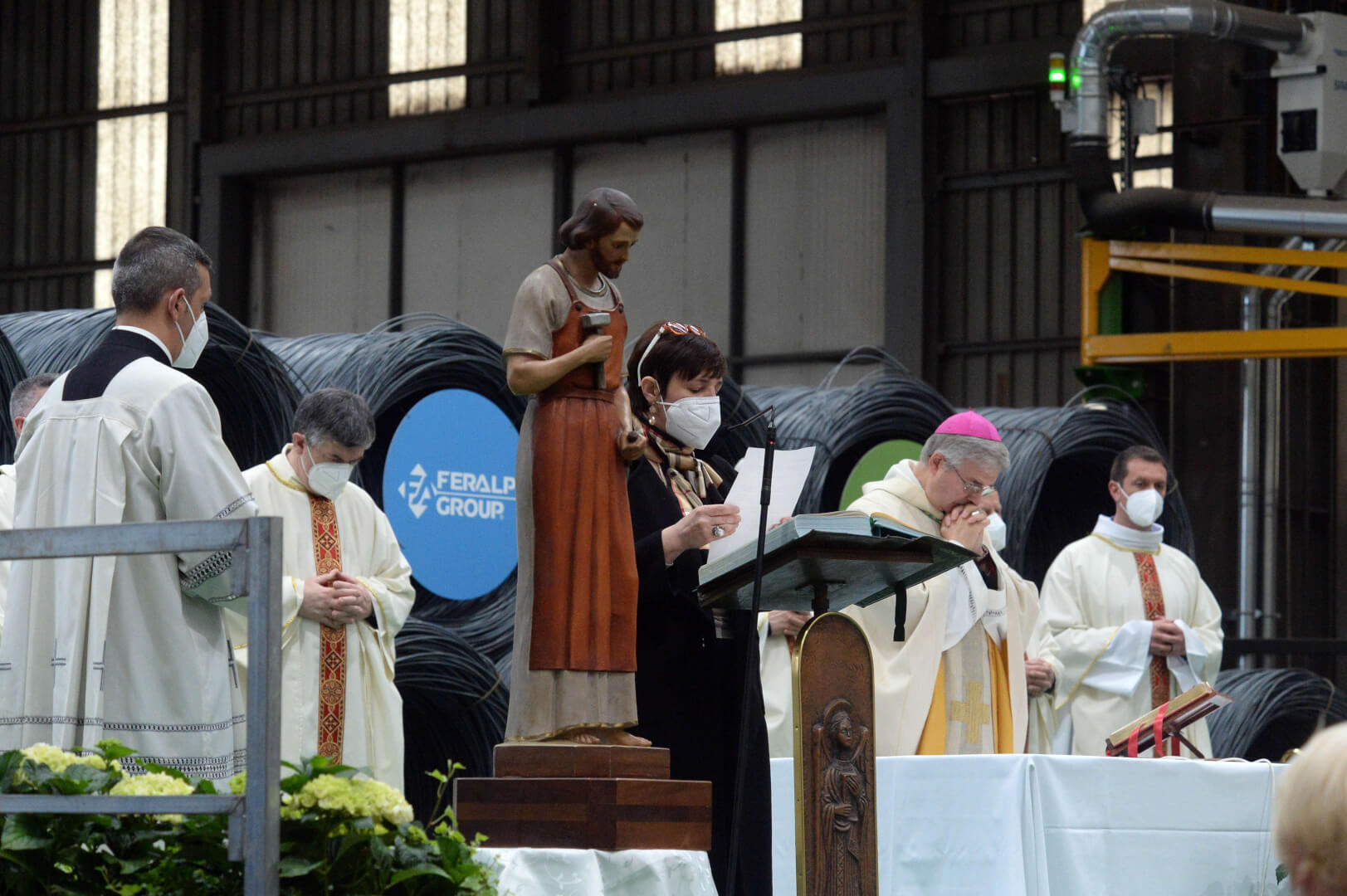 Nella giornata diocesana del lavoro, festa di San Giuseppe lavoratore, il Vescovo Tremolada ha presieduto la Santa Messa alla Feralpi di Lonato