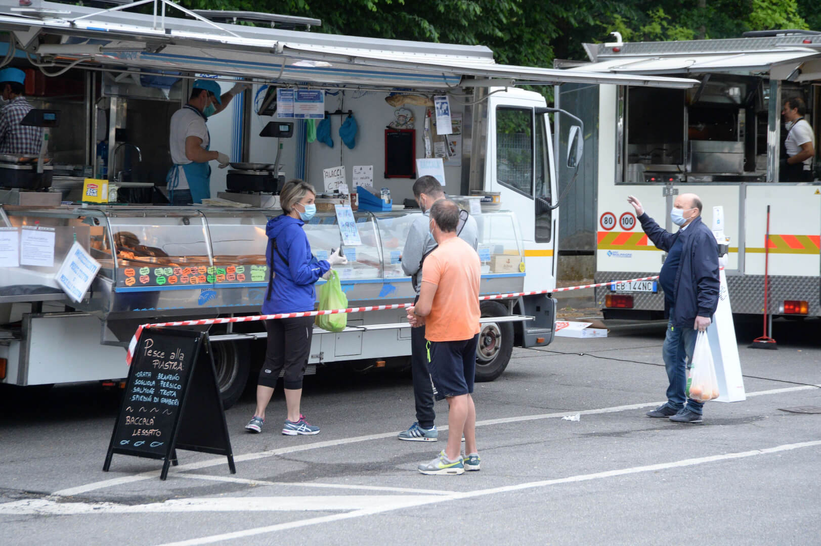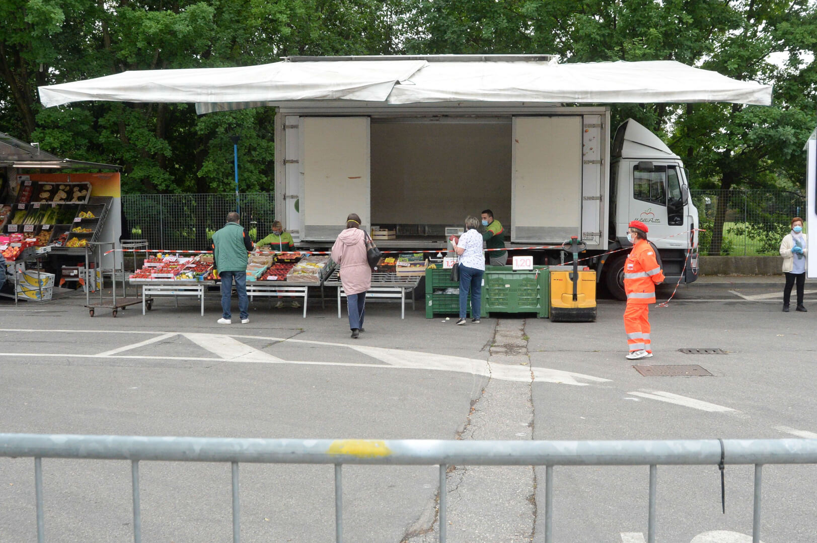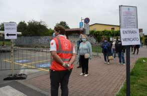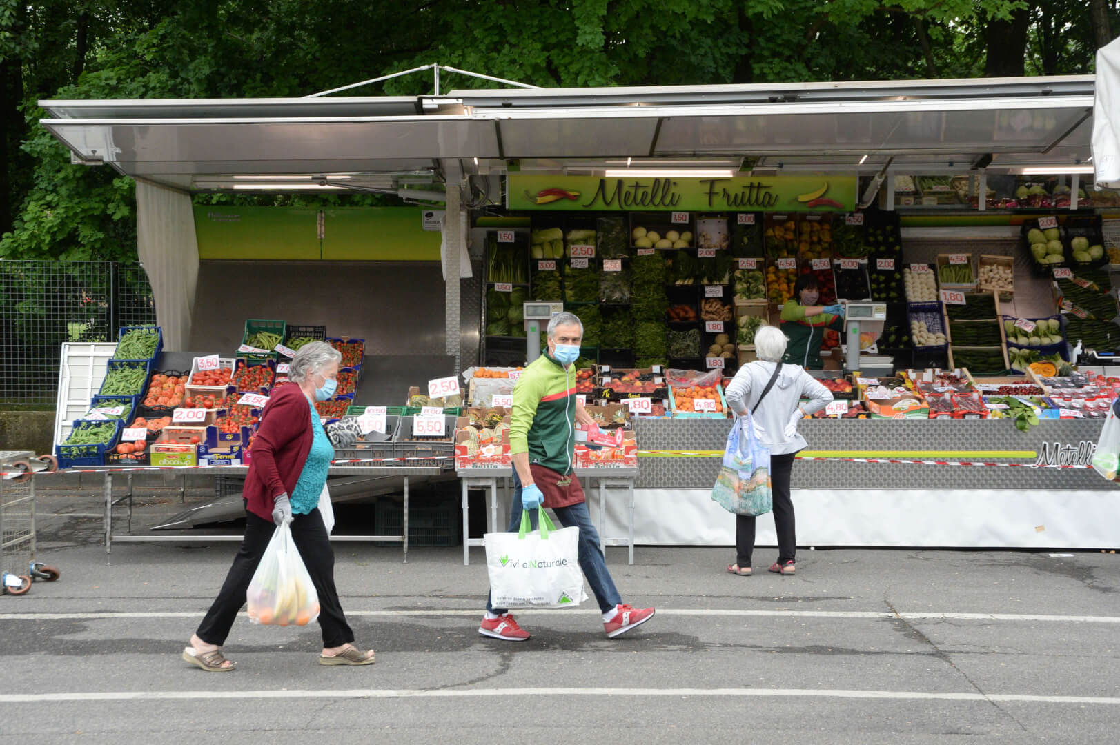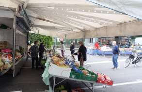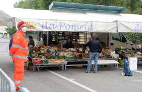 Alcune immagini del Mercato del Villaggio Badia che ha riaperto oggi dopo la chiusura per il Covid 19