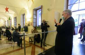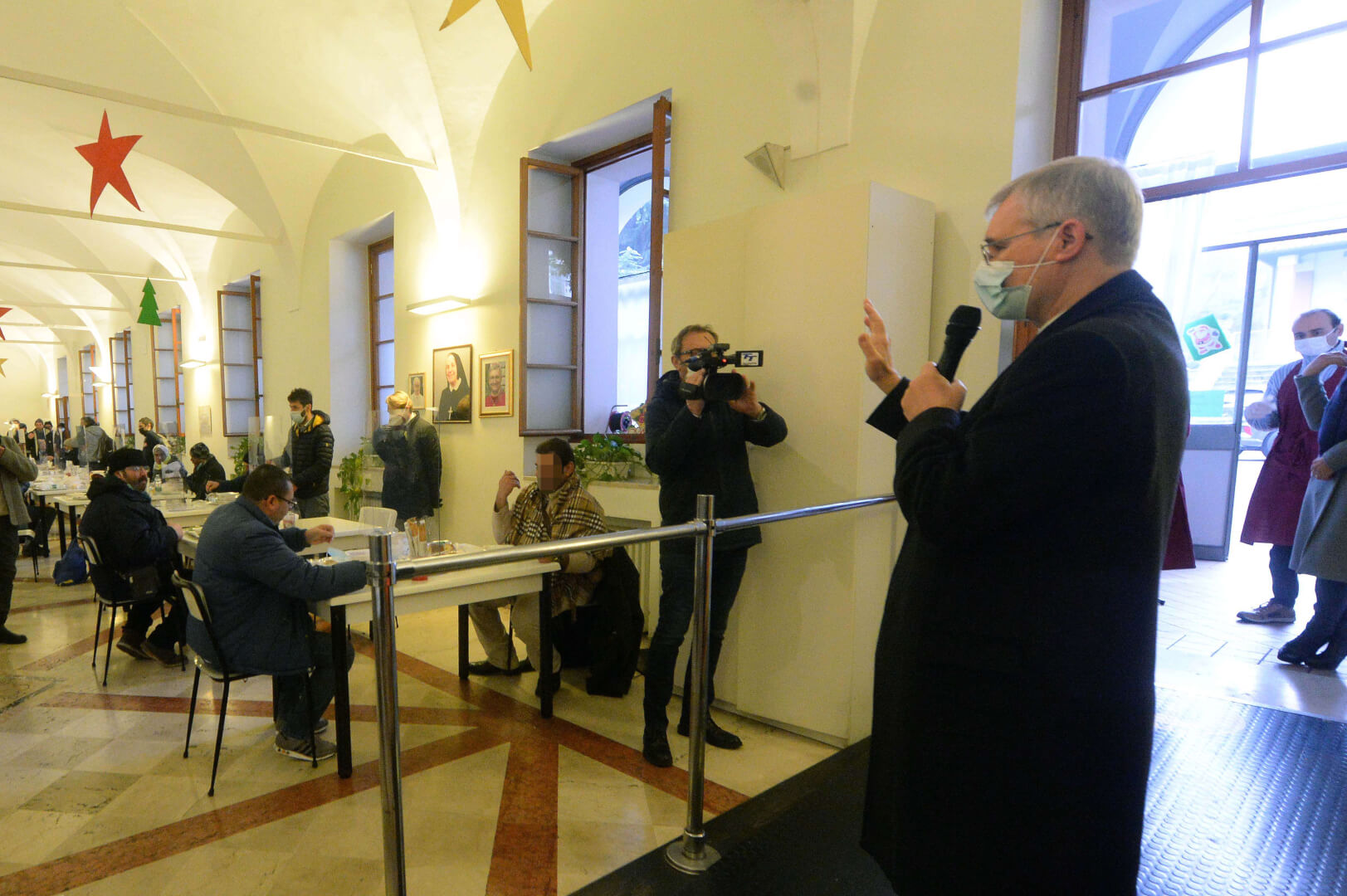 Il vescovo Pierantonio ha portato il suo saluto alla Mensa Menni per il pranzo di Natale