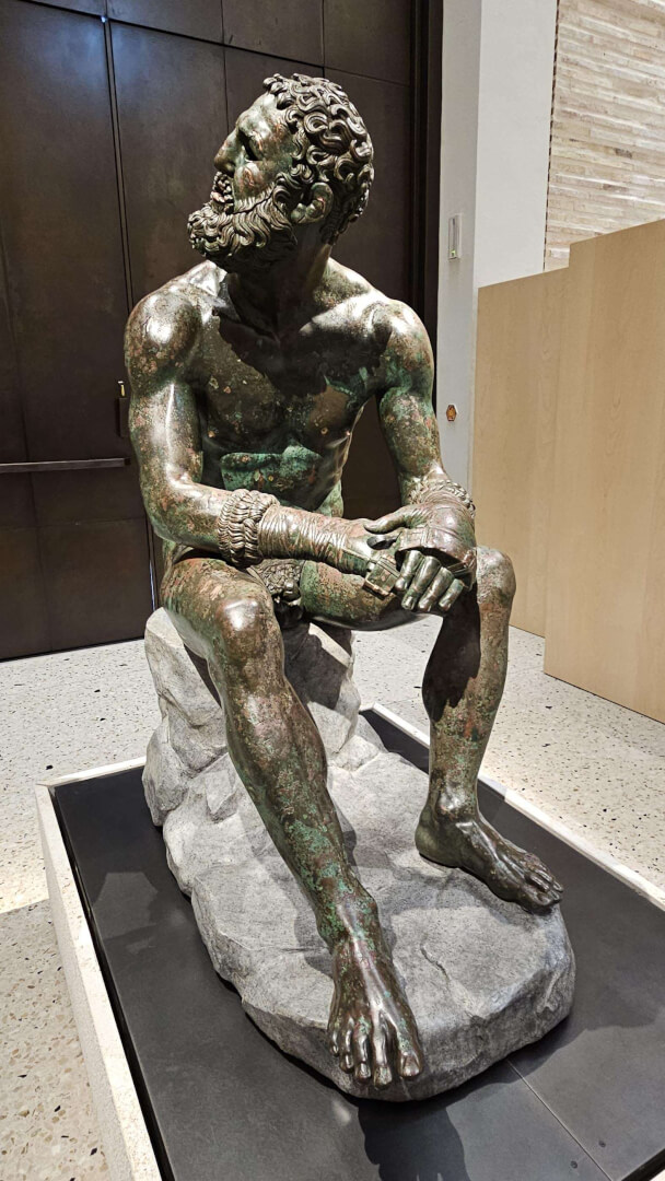 Fino al 26 novembre 2023 al Parco Archeologico di Brescia romana sono esposti due capolavori senza tempo: il Pugilatore in riposo, proveniente dal Museo Nazionale Romano, e la Vittoria Alata, già presente nell’area archeologica dal 2021. I due bronzi di età ellenistica e romana sono esposti nell’aula del Capitolium, con un nuovo allestimento curato dall’architetto Juan Navarro Baldeweg, già autore della collocazione della Vittoria Alata. "Il pugilatore in riposo", rivenuto nel 1885 alle pendici del Quirinale e esposto al Museo Nazionale Romano, crea un dialogo culturale e storico con la Vittoria, simbolo della città, e celebra, insieme a questa, l’anno di Bergamo Brescia Capitale Italiana della Cultura 2023