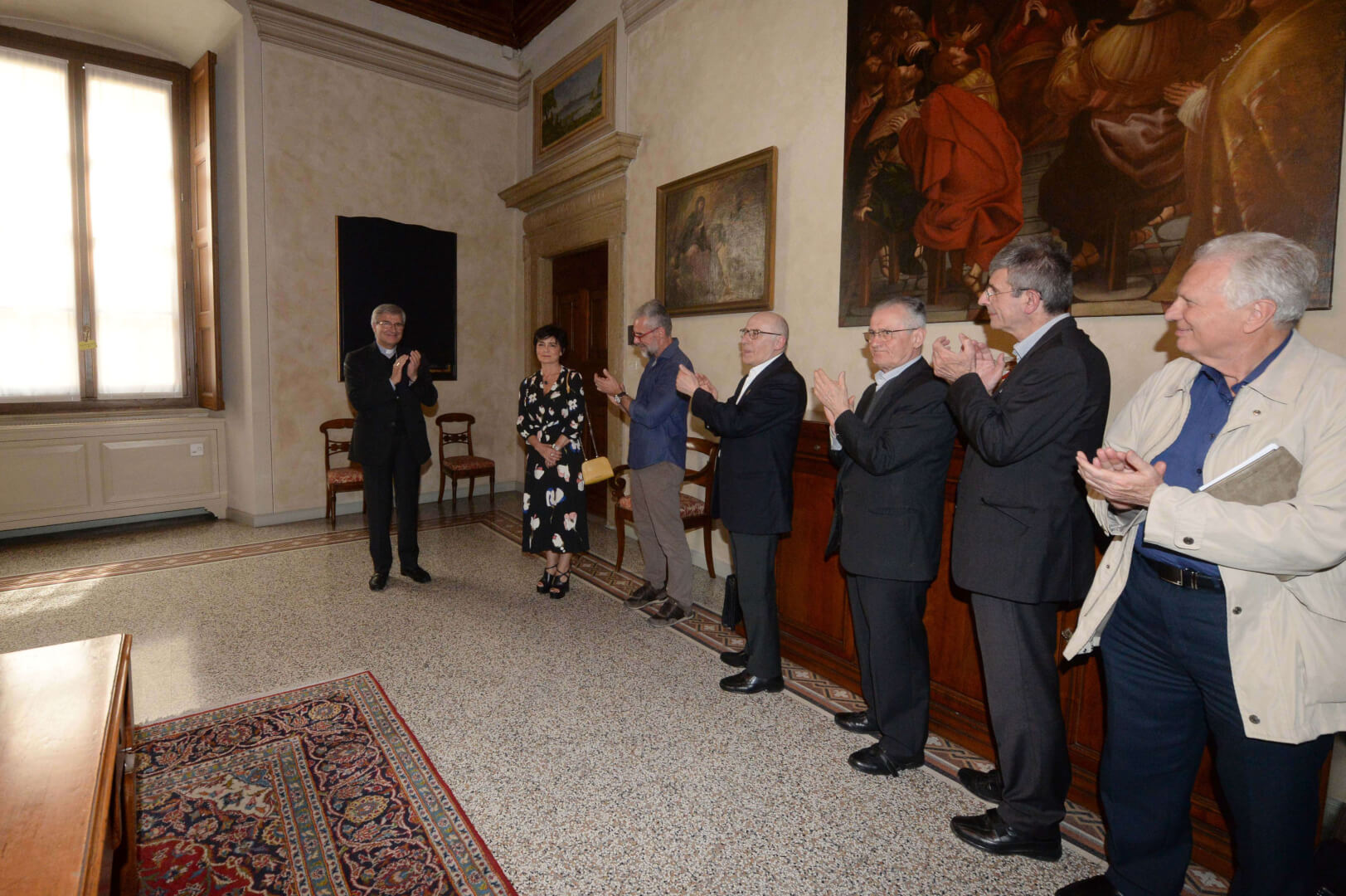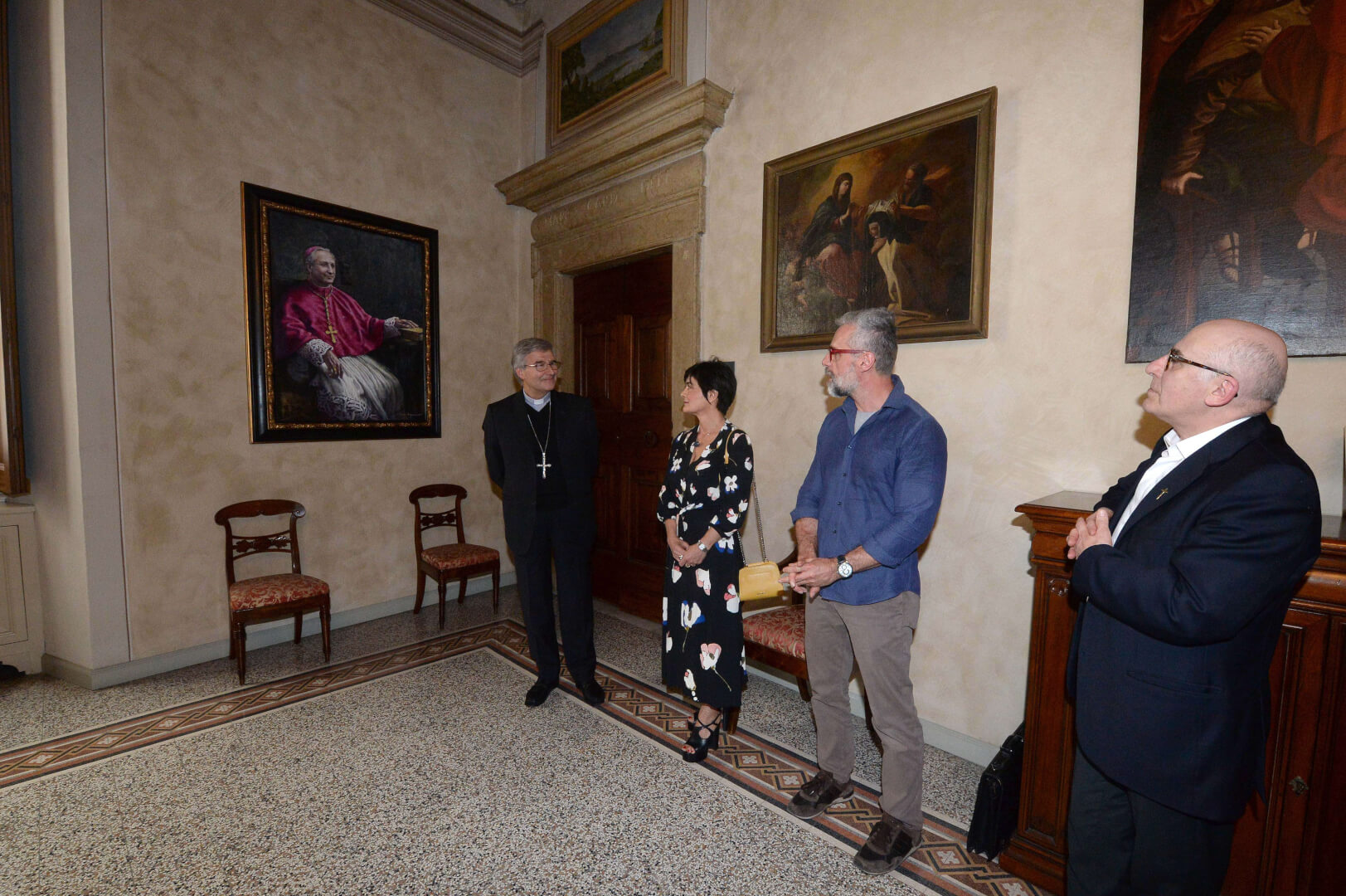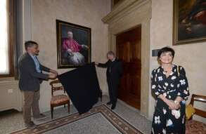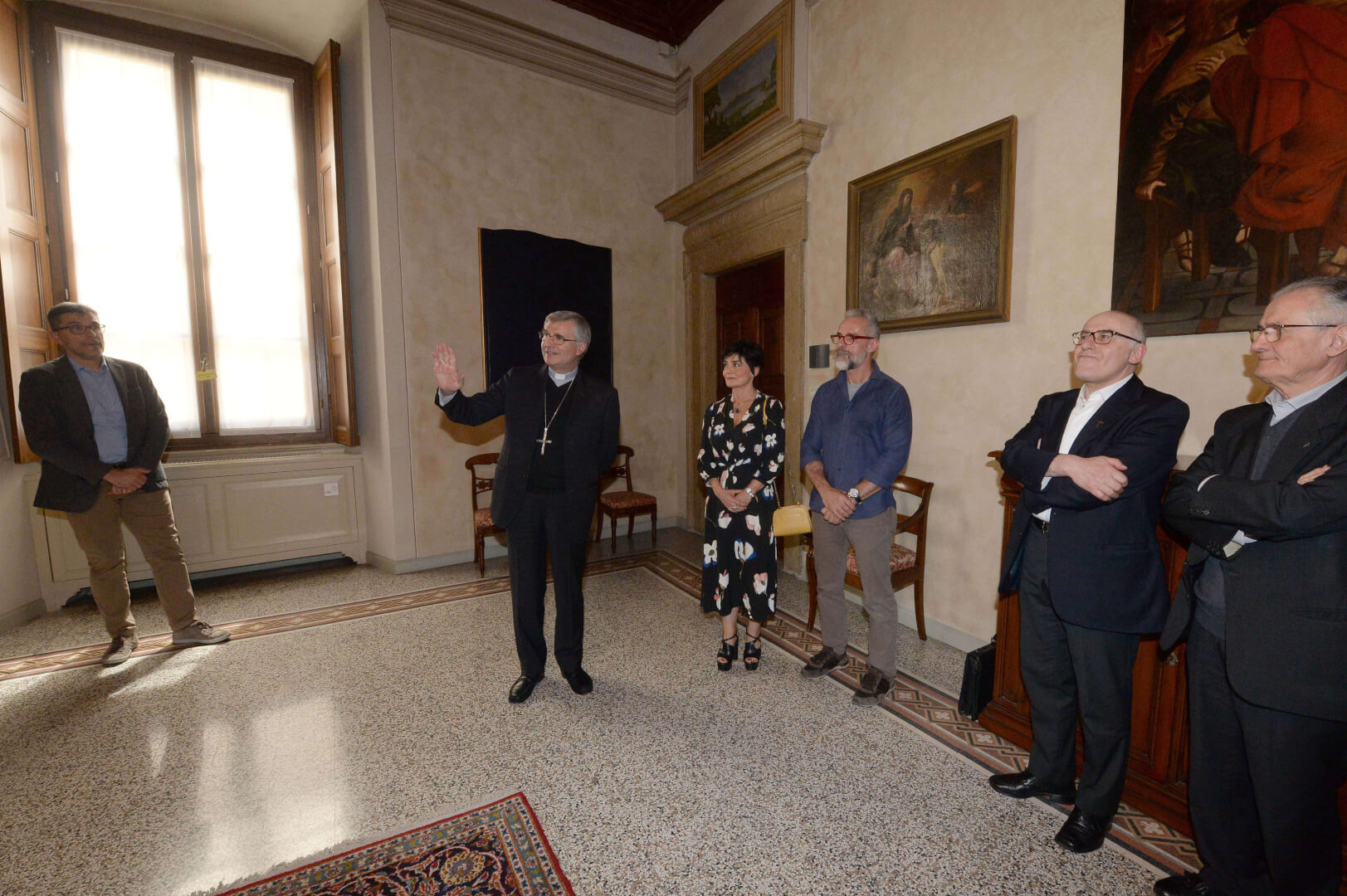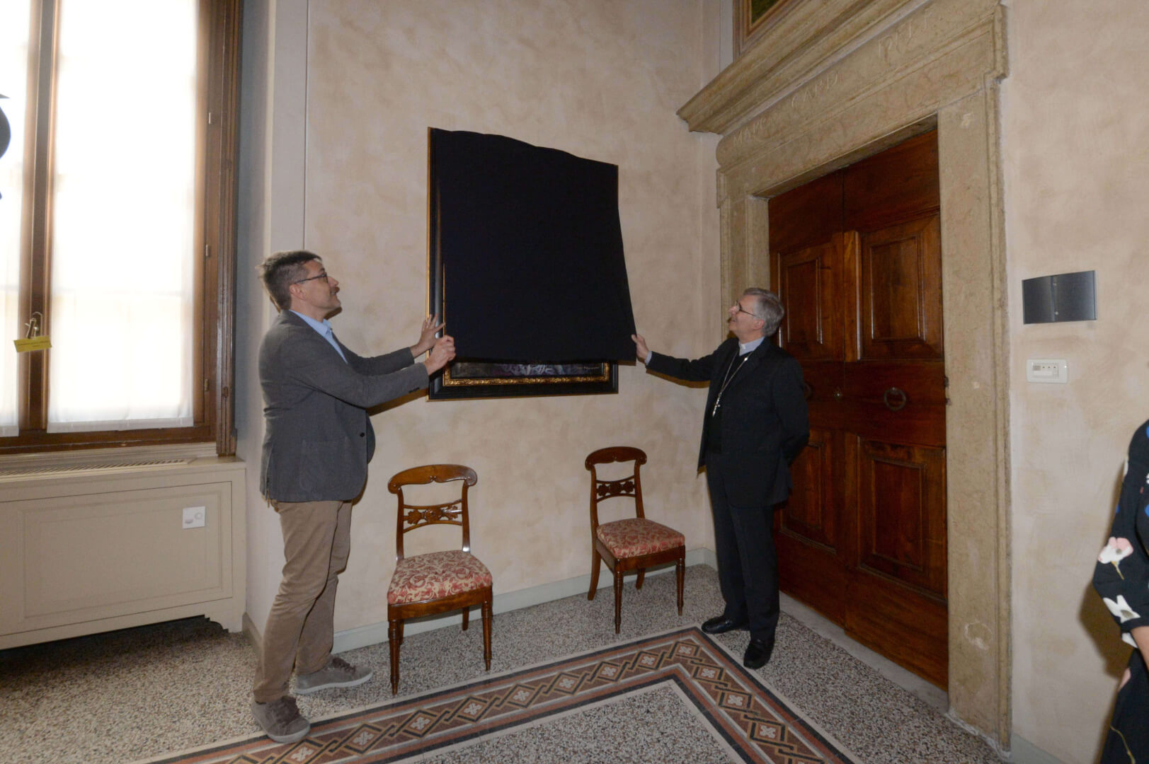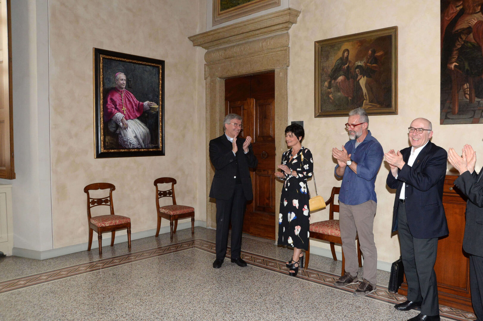 Il ritratto di mons. Luciano Monari, realizzato da Cinzia Bevilacqua, è stato scoperto in Episcopio