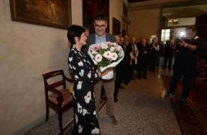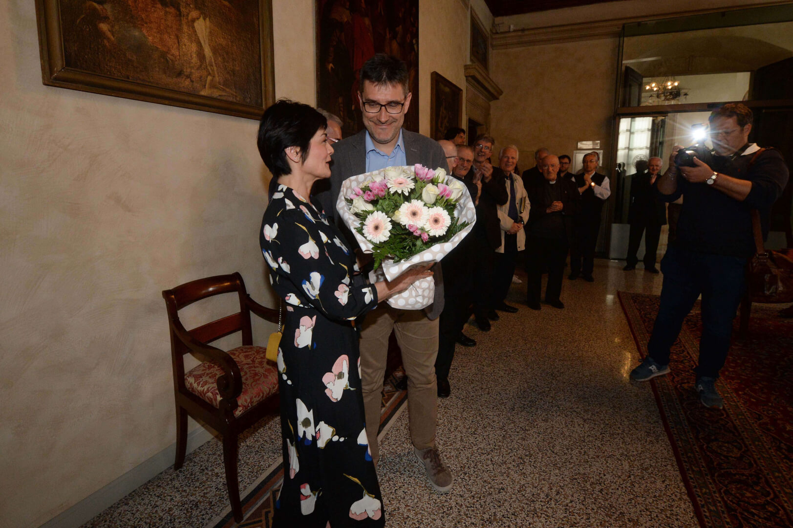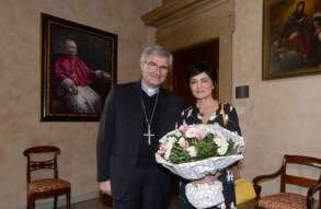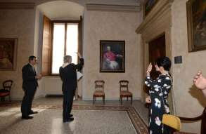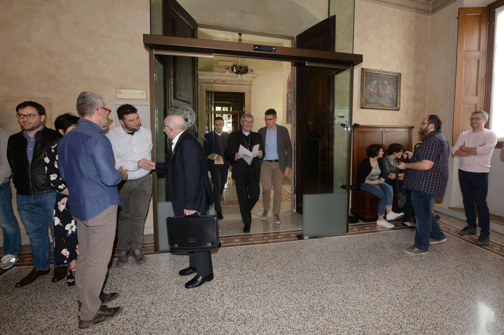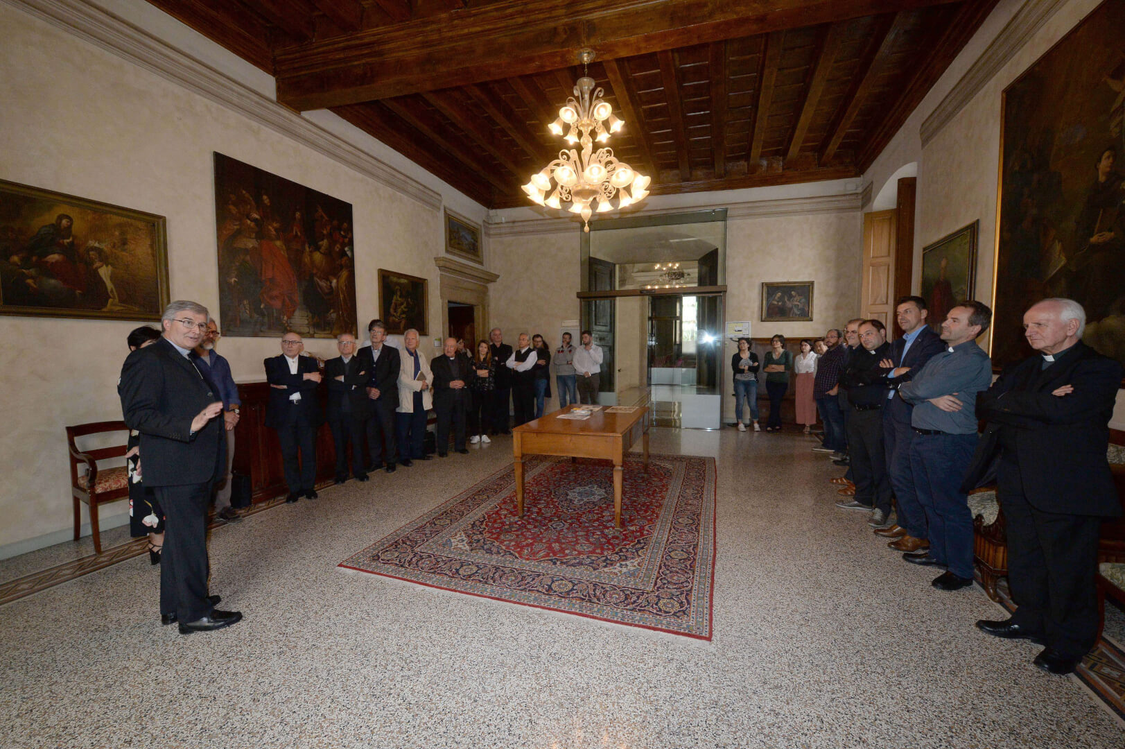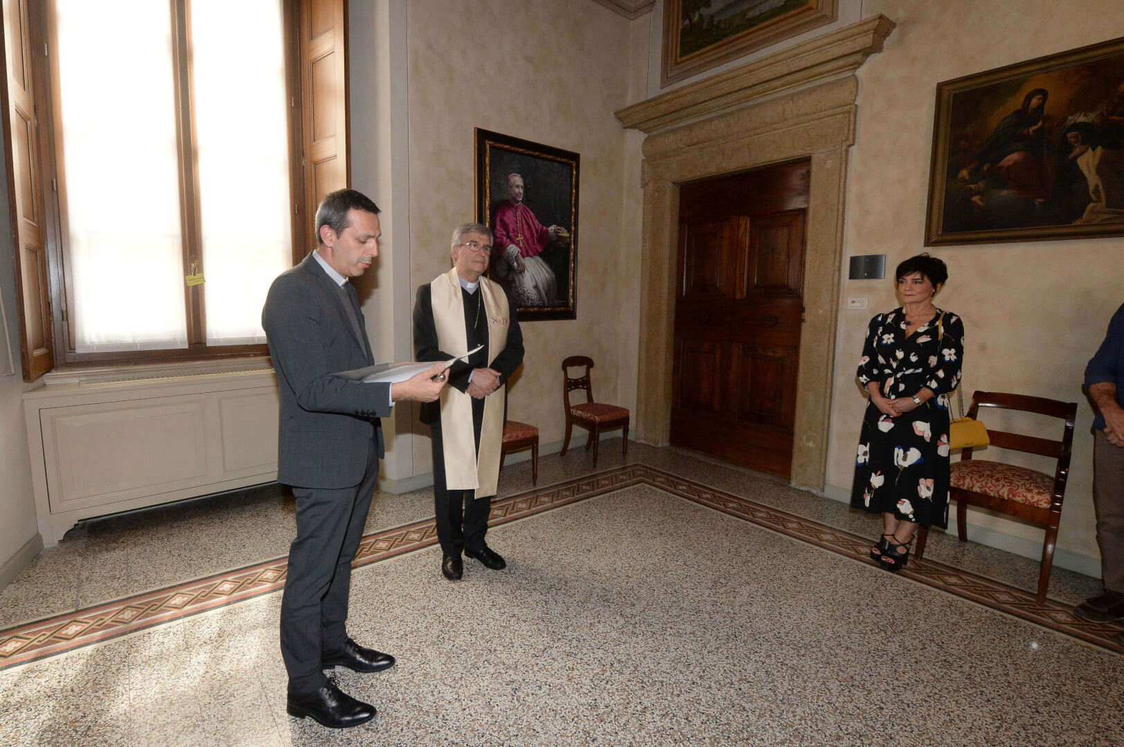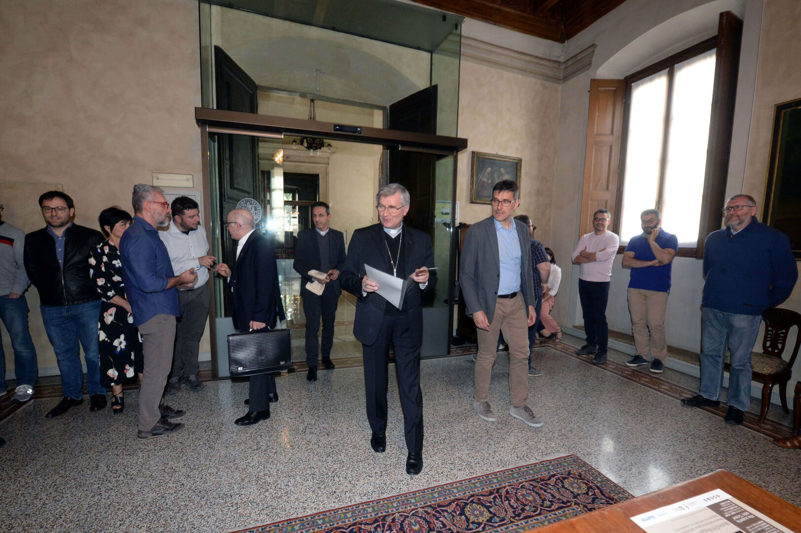 Il ritratto di mons. Luciano Monari, realizzato da Cinzia Bevilacqua, è stato scoperto in Episcopio