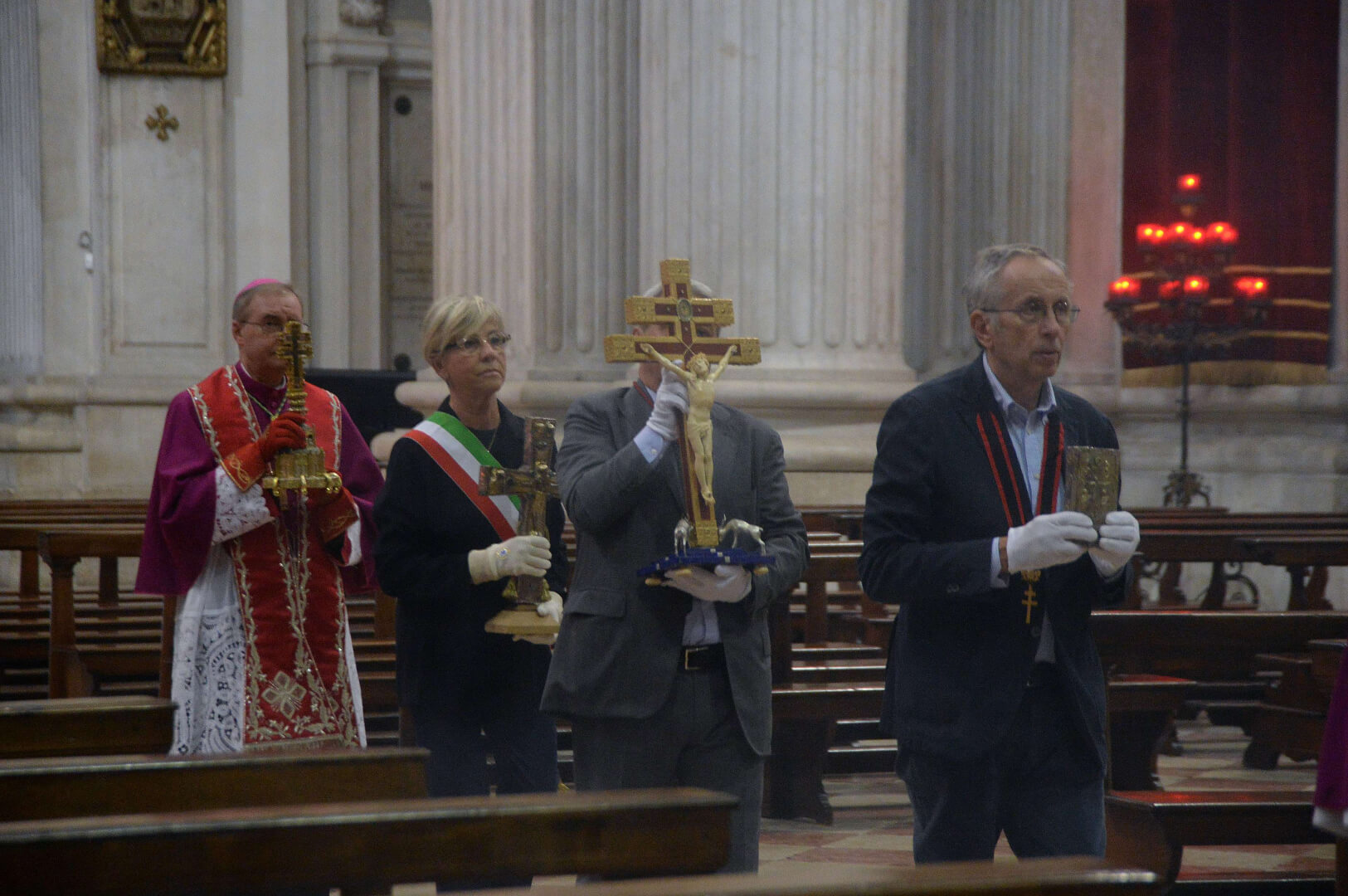 Nella Festa dell'Esaltazione della Santa Croce in Cattedrale viene esposto il Tesoro custodito dalla Compagnia dei Custodi delle Sante Croci. Questa mattina l'apertura del Tesoro con le tre chiavi: una la tiene la Sindaca, una il Vescovo e una il Presidente della Compagnia. Durante la giornata sono previste le visite guidate