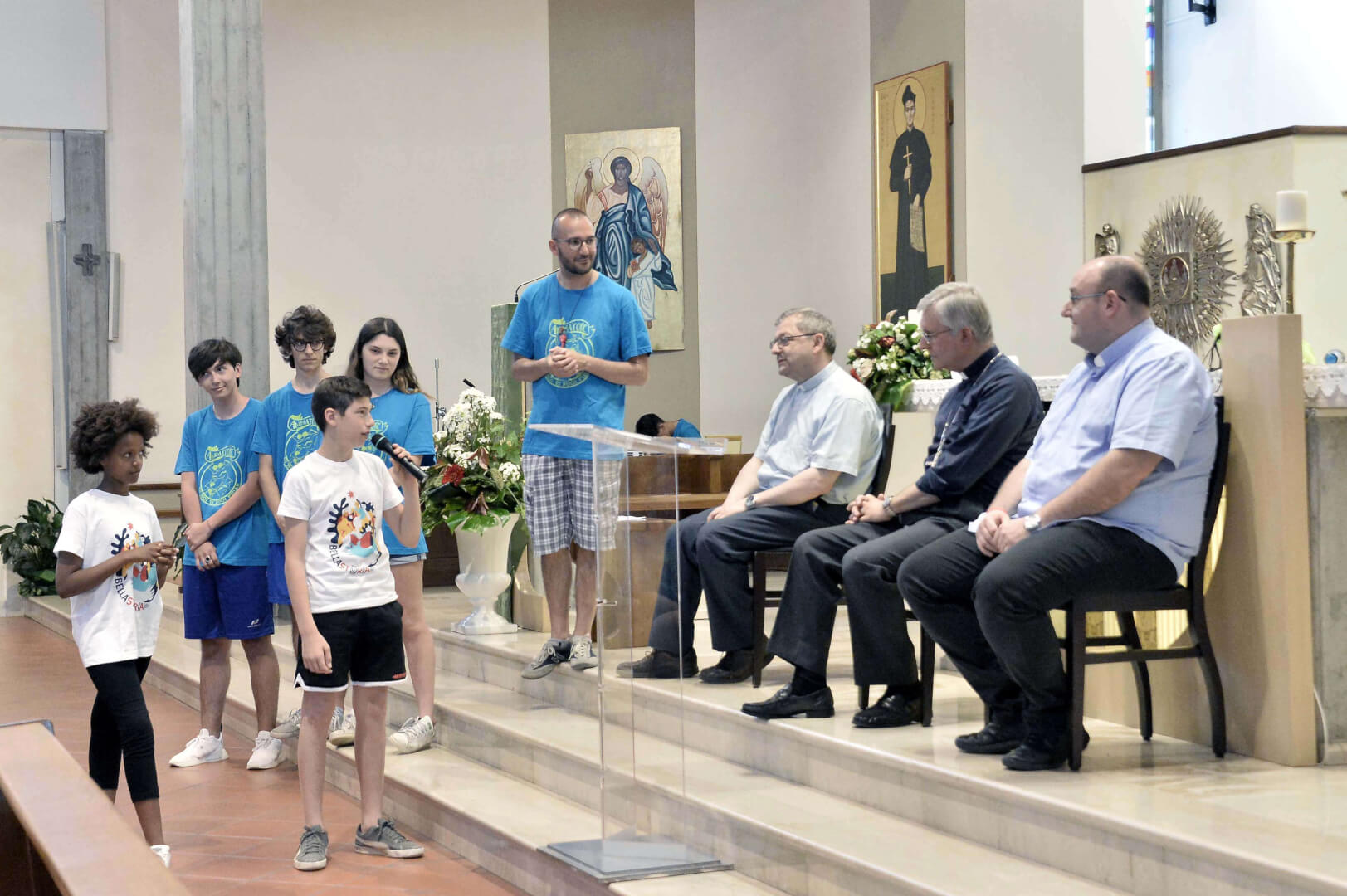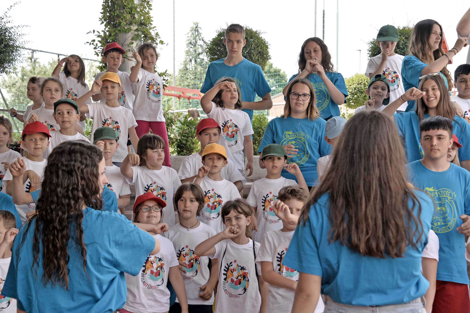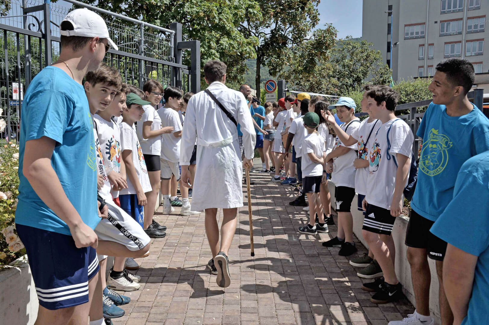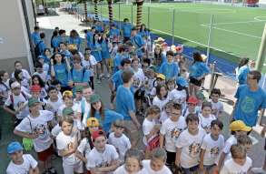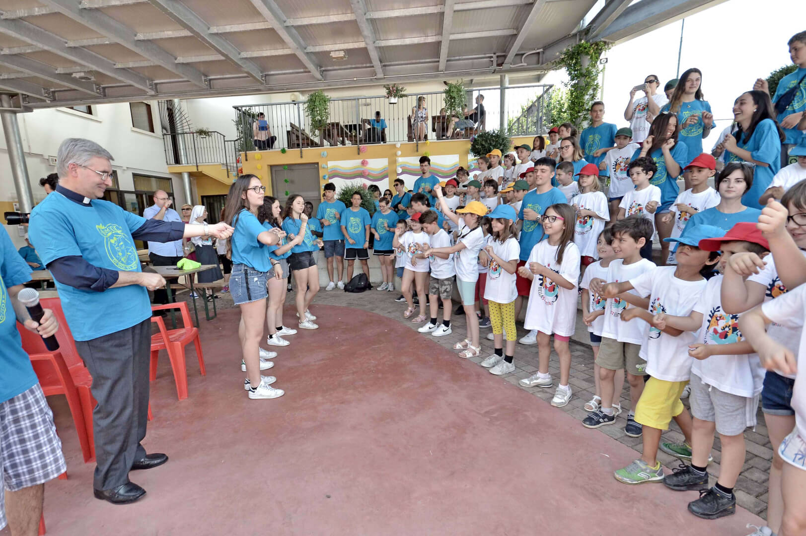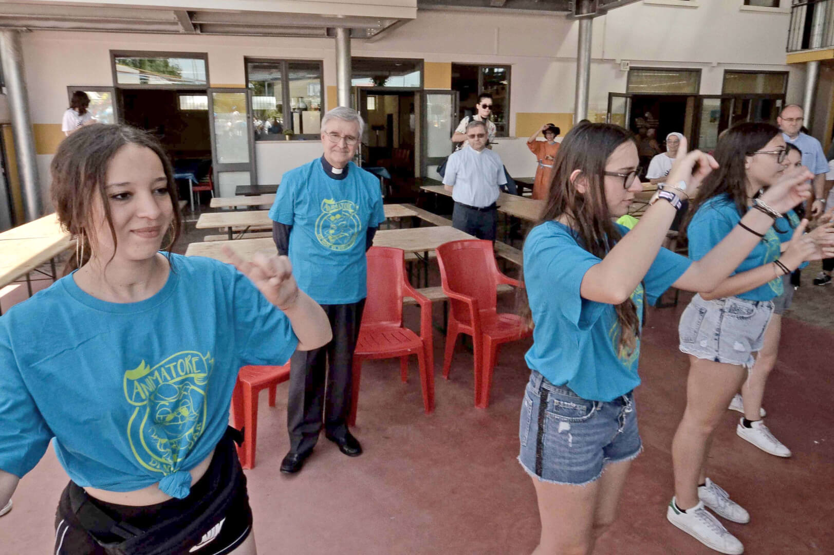 Tutta la grinta dei giovani dell'oratorio de "Le due Sante" per la visita del vescovo Pierantonio in occasione del grest