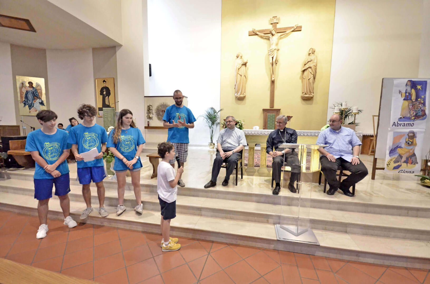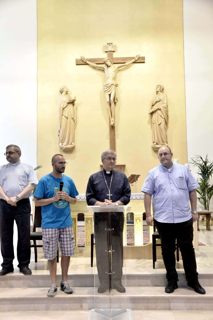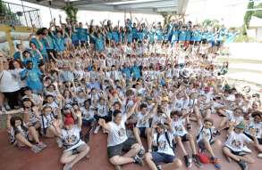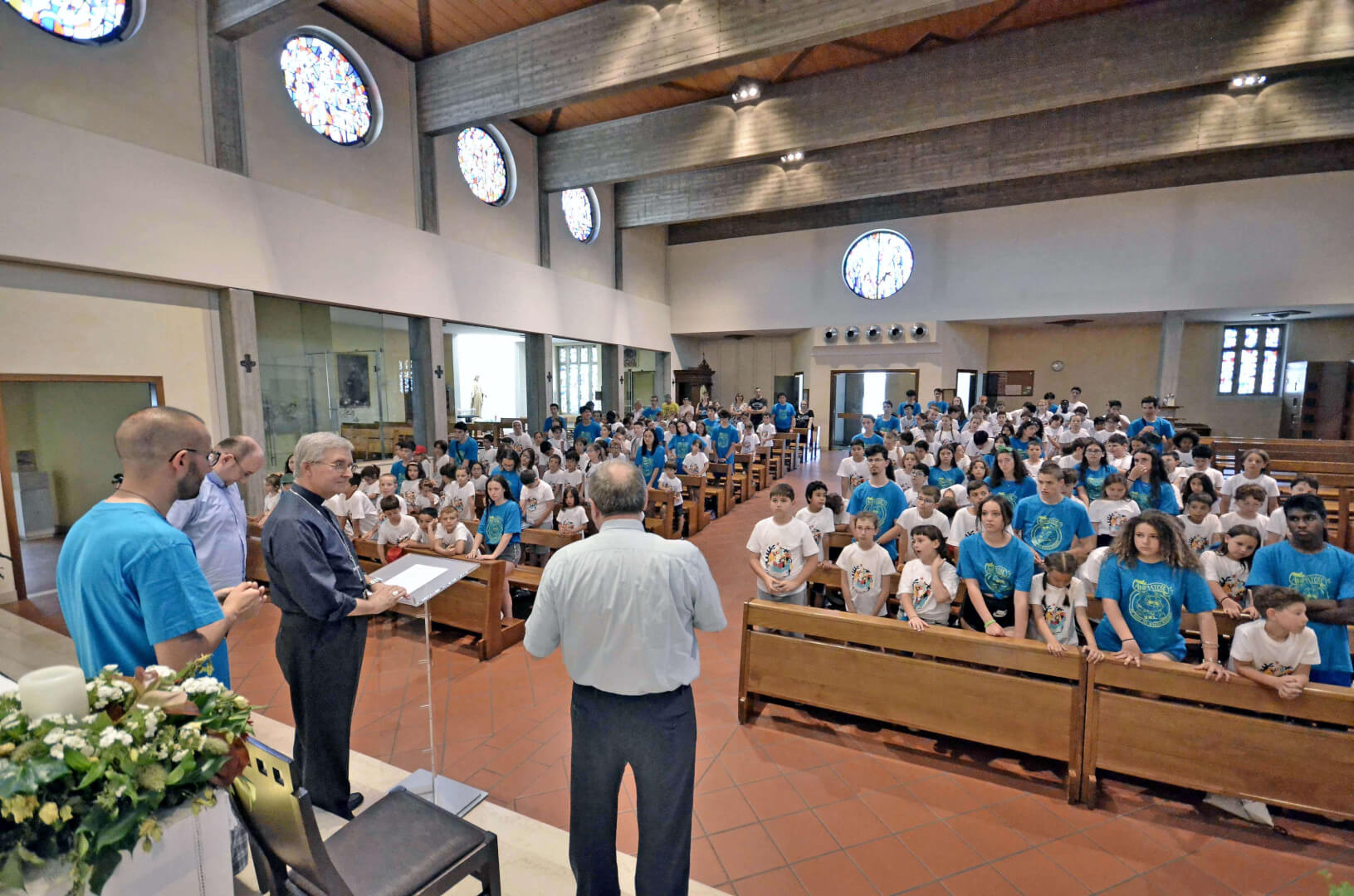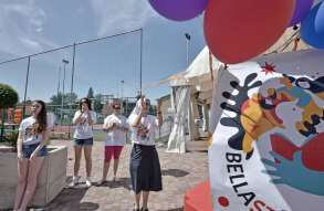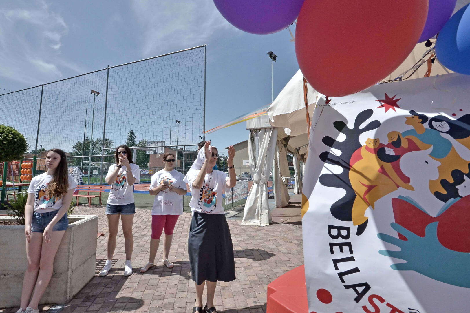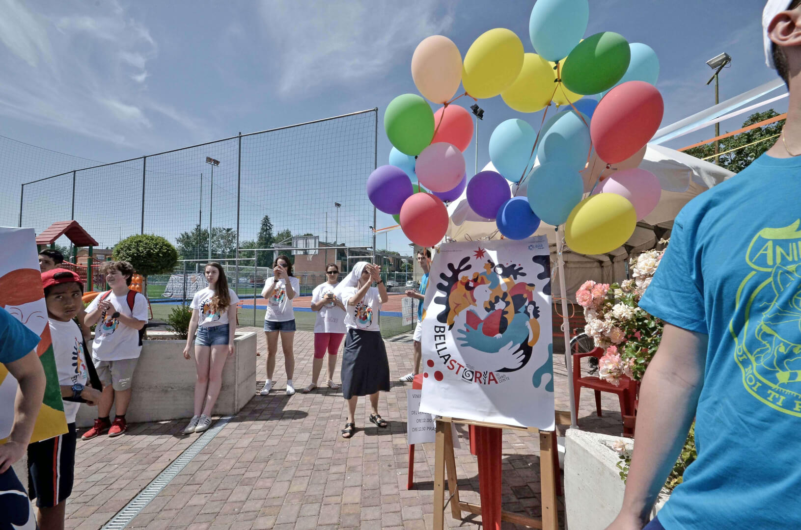Tutta la grinta dei giovani dell'oratorio de "Le due Sante" per la visita del vescovo Pierantonio in occasione del grest