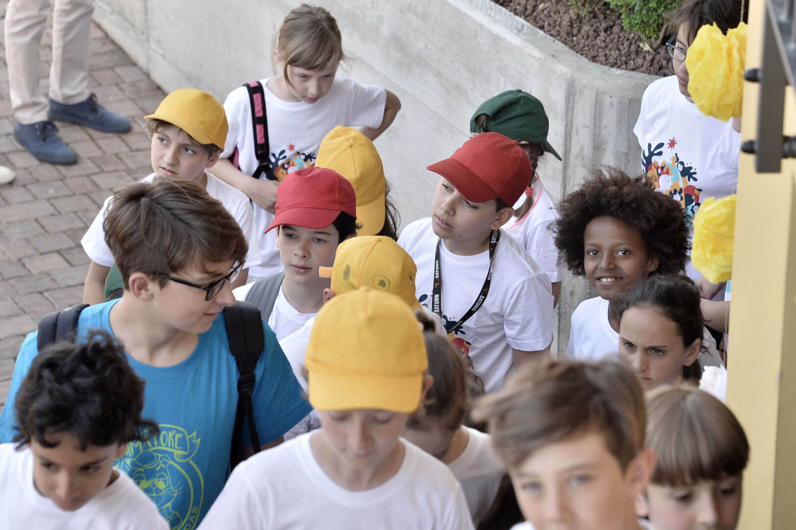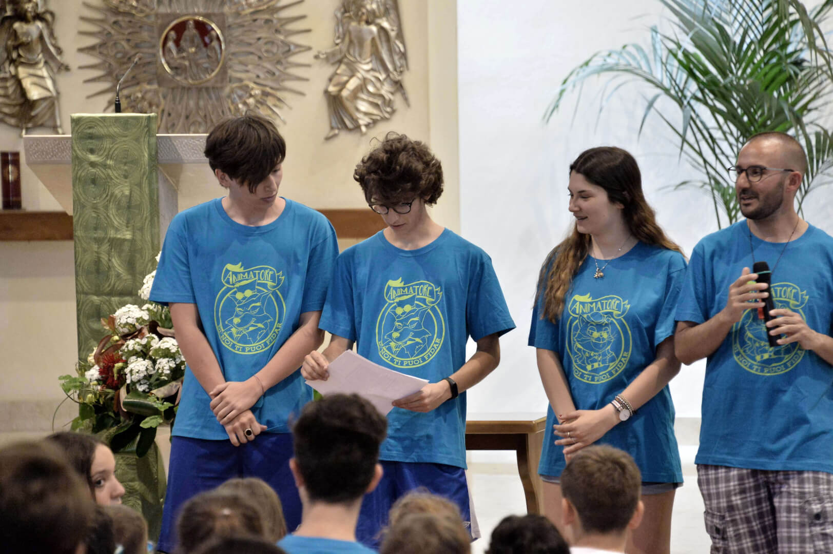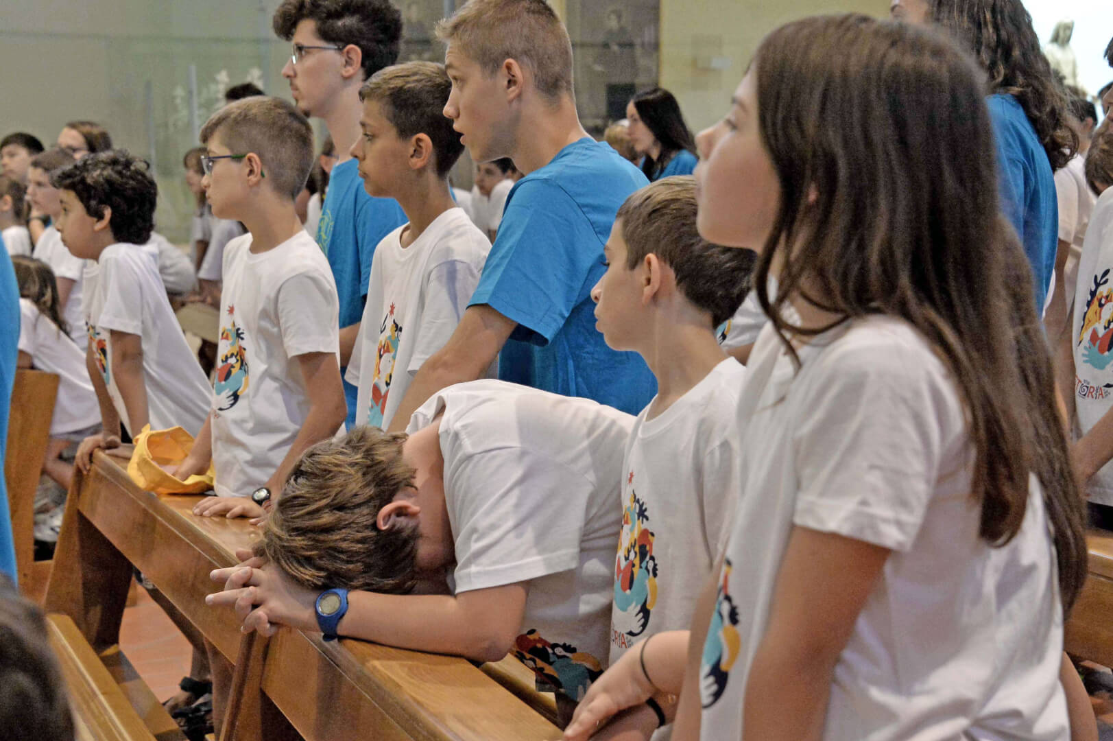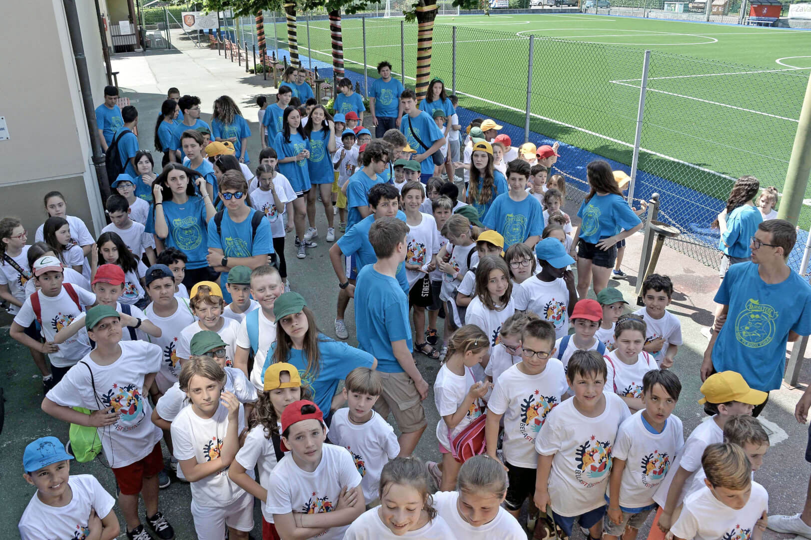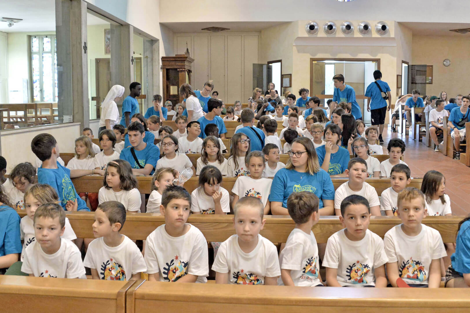Tutta la grinta dei giovani dell'oratorio de "Le due Sante" per la visita del vescovo Pierantonio in occasione del grest