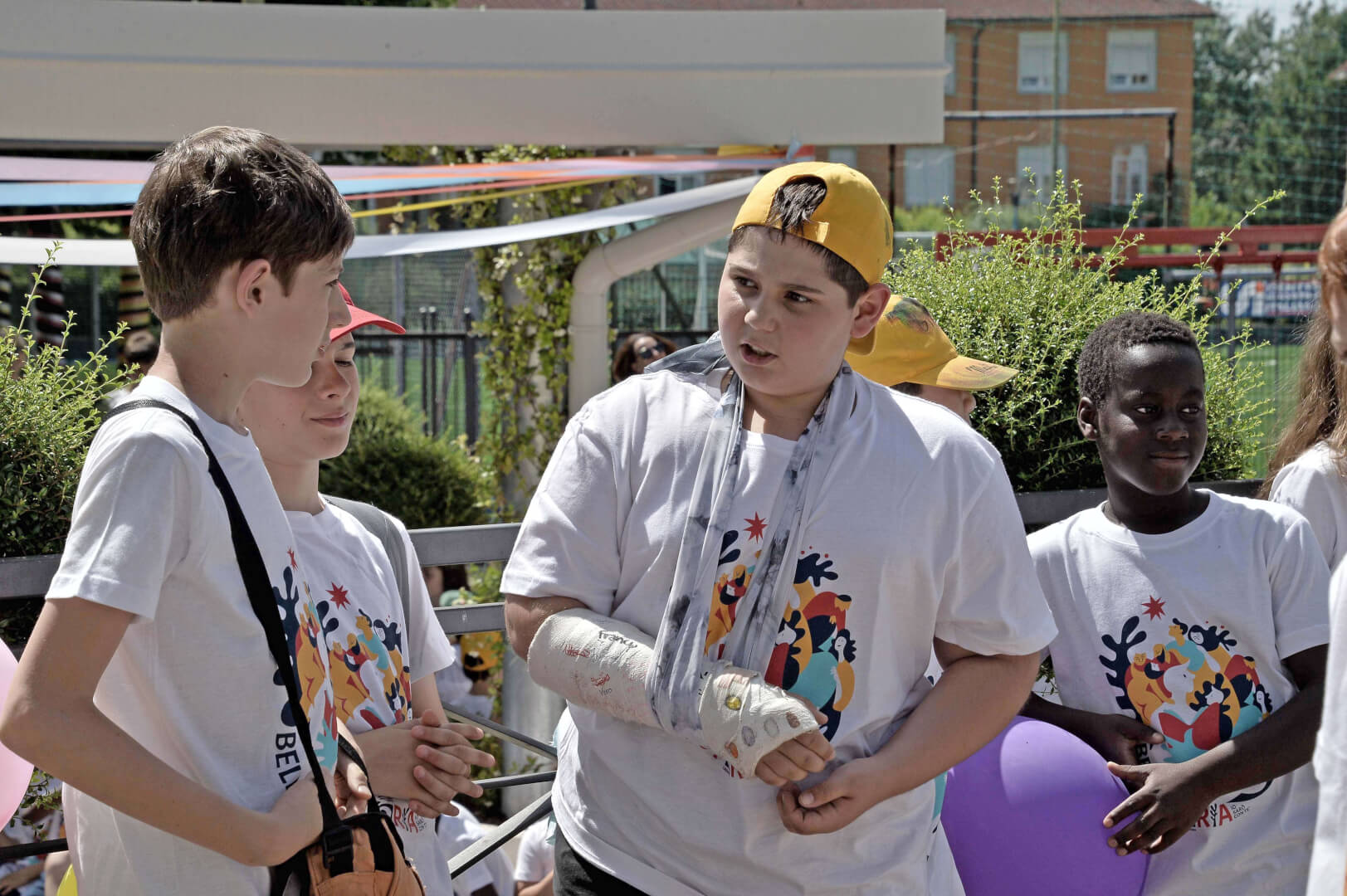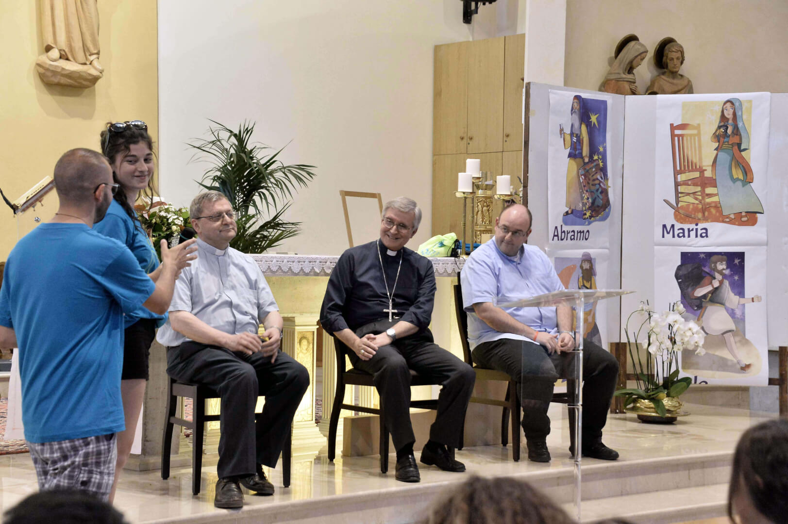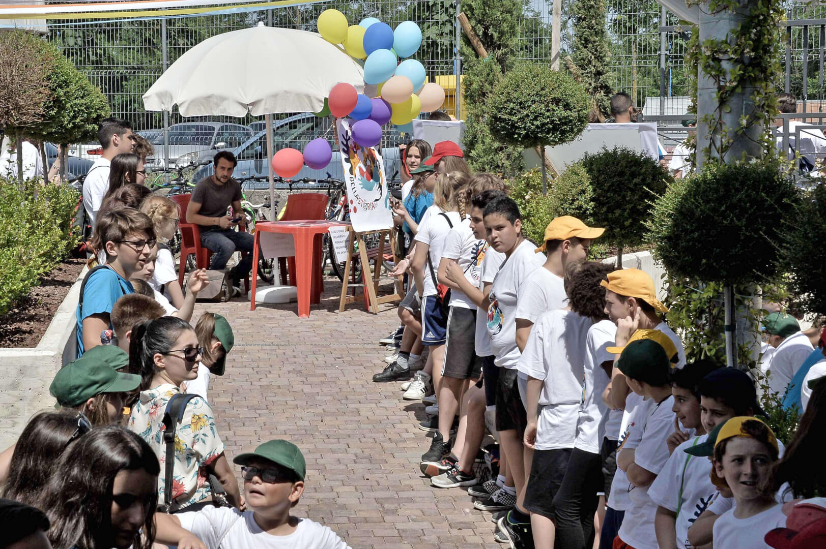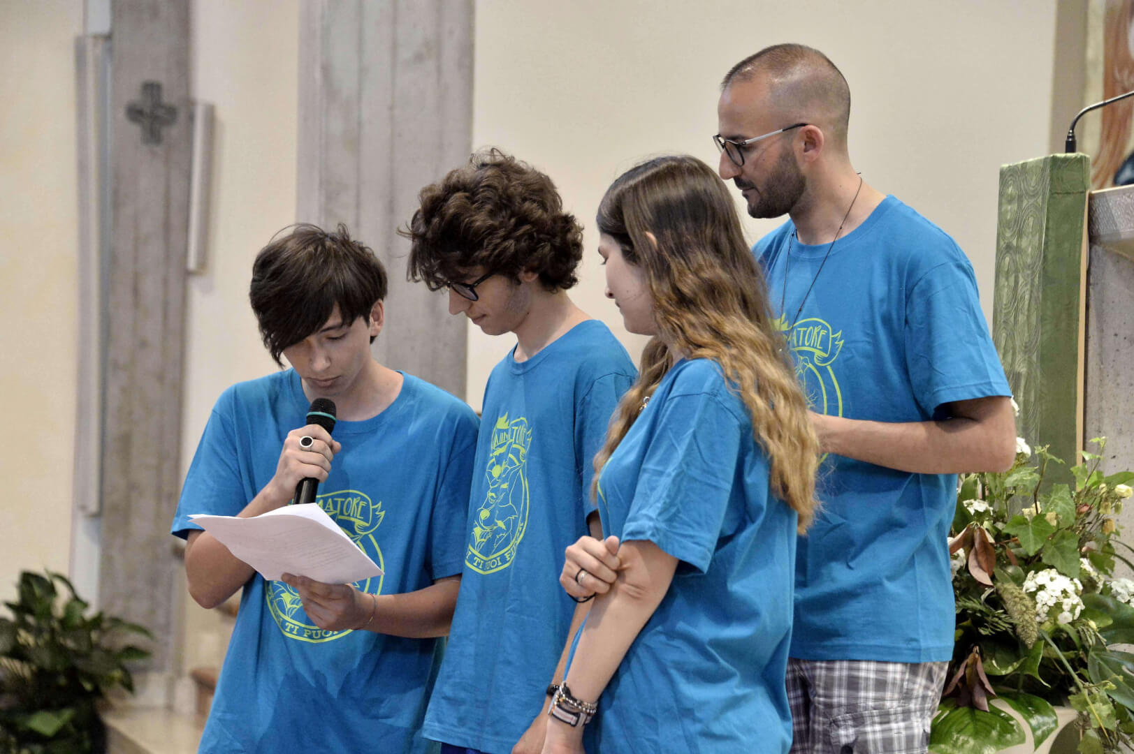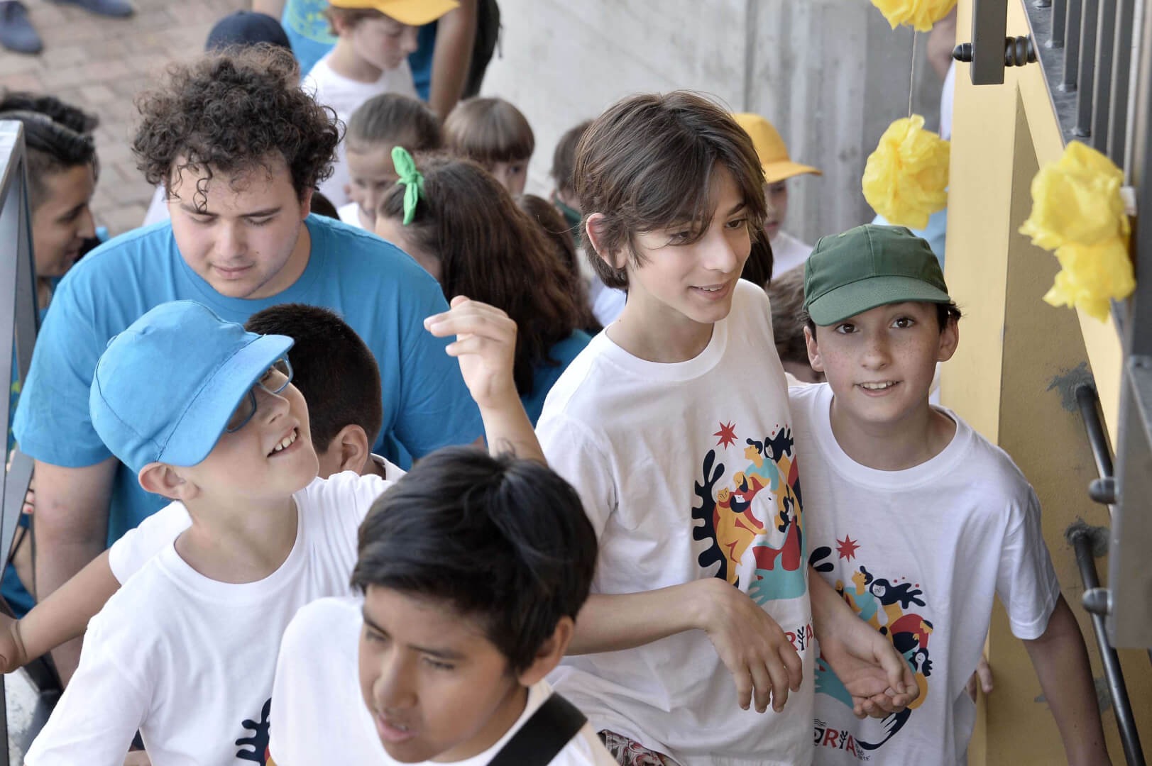 Tutta la grinta dei giovani dell'oratorio de "Le due Sante" per la visita del vescovo Pierantonio in occasione del grest