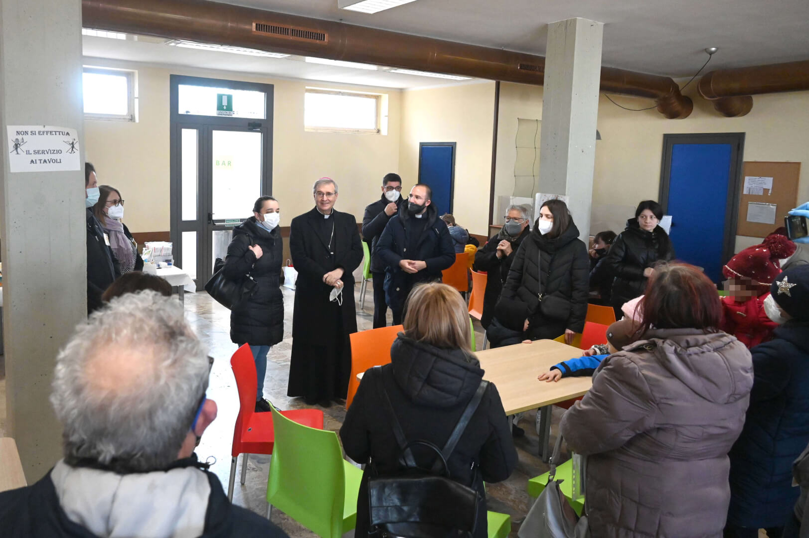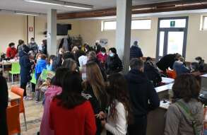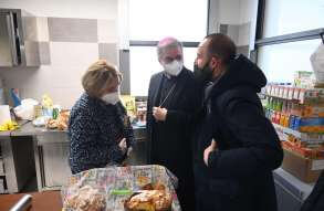 Il vescovo Tremolada ha incontrato i profughi ucraini accolti dall'oratorio della parrocchia delle Sante Capitanio e Gerosa: i volontari della comunità garantiscono un pasto caldo e un ristoro agli ucraini