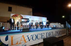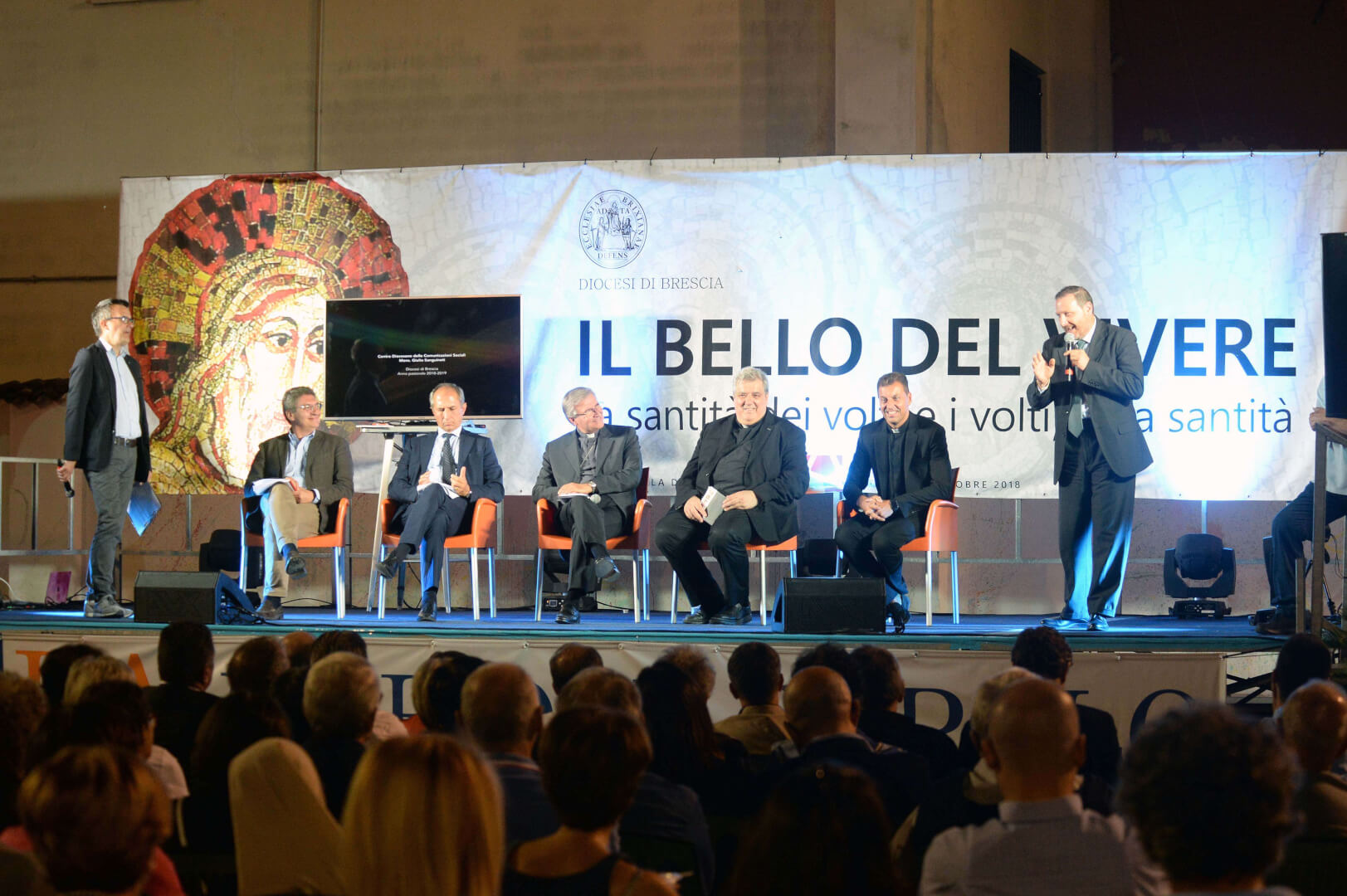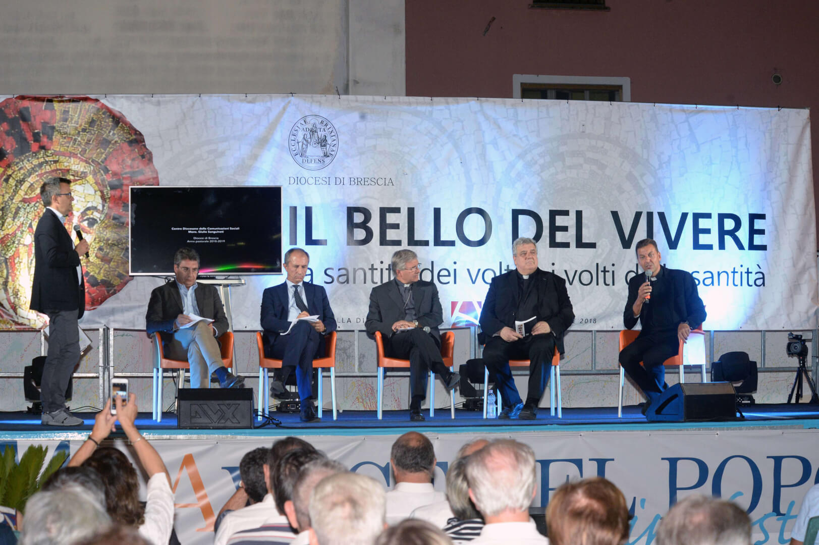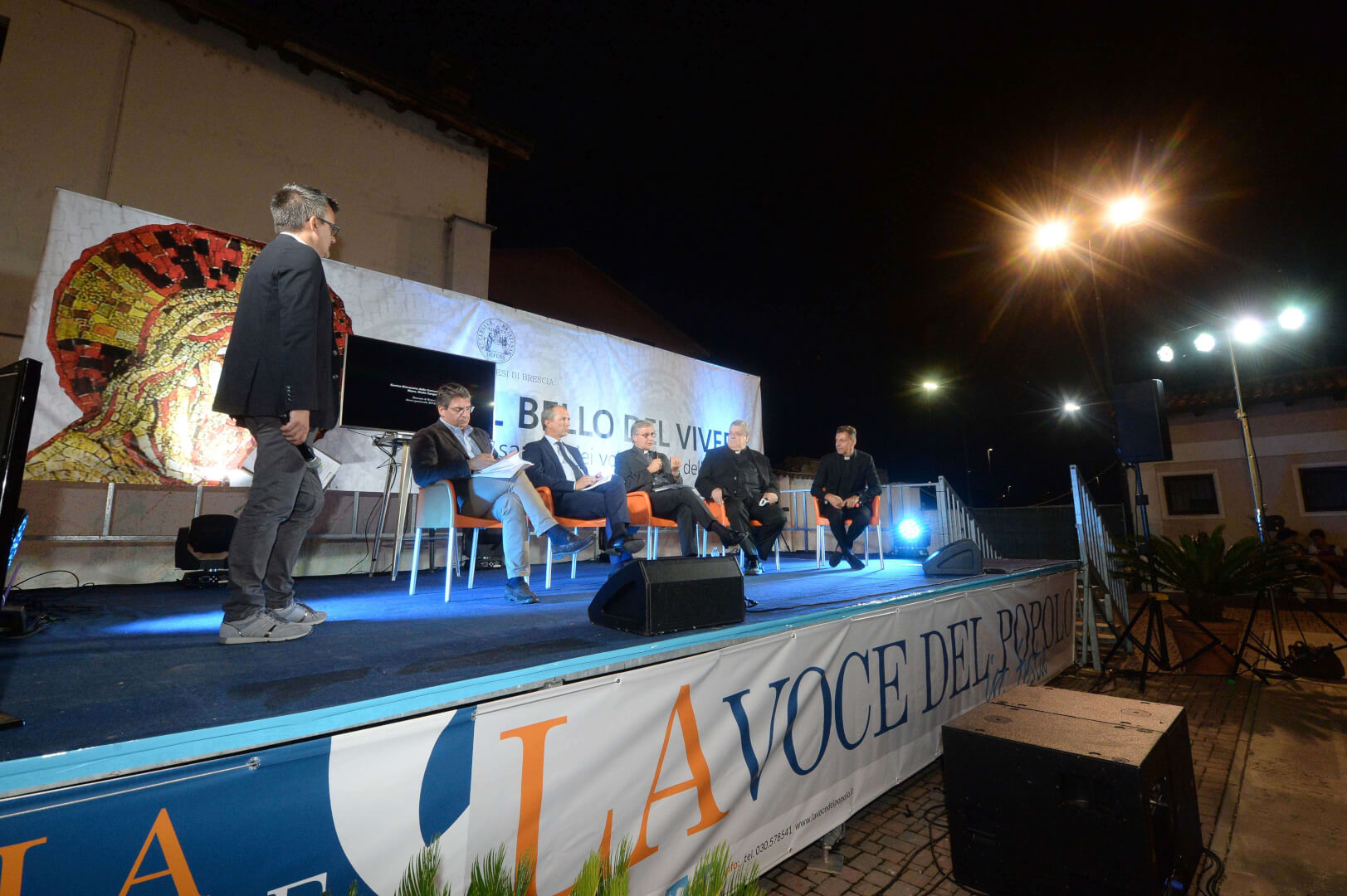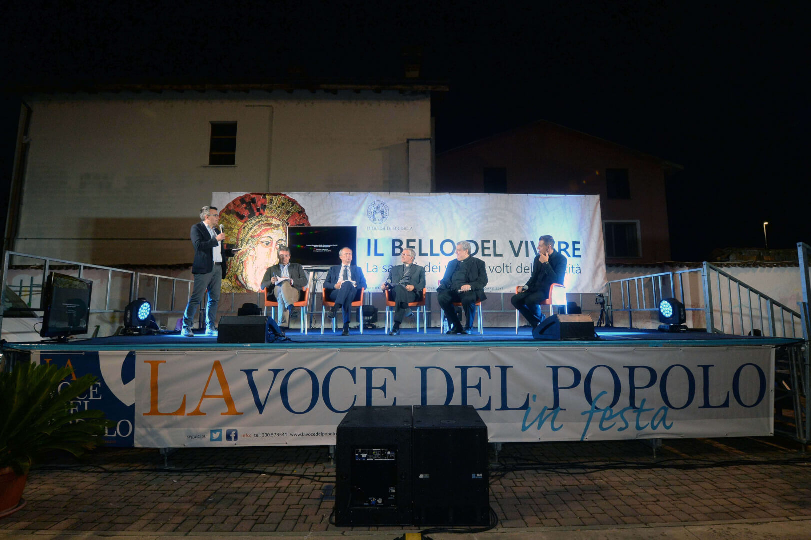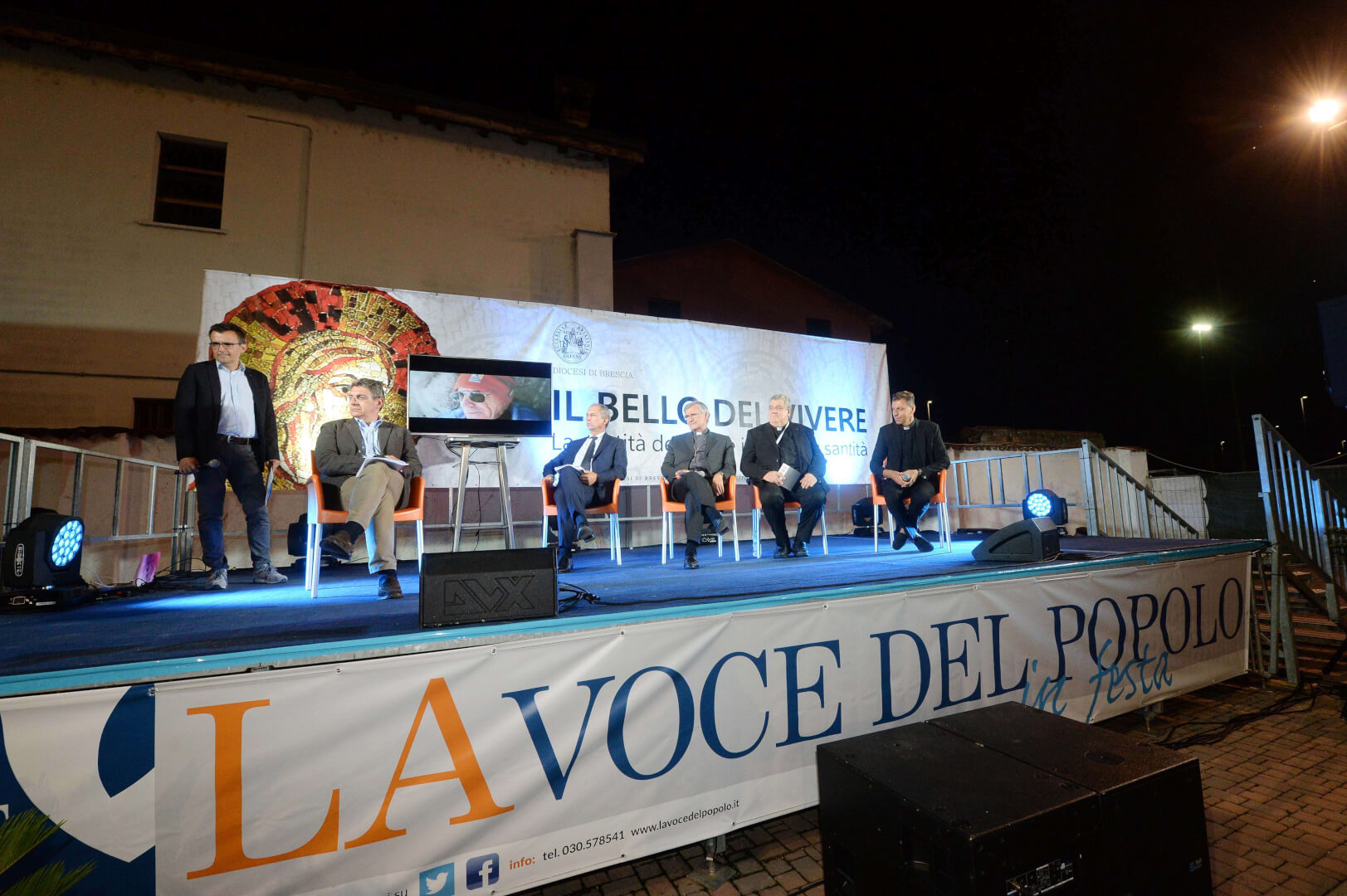 Il Vescovo, il sindaco Del Bono, il rettore Maurizio Tira e don Mario Neva hanno dialogato alla festa di Voce a partire dalla lettera pastorale "Il bello del vivere"