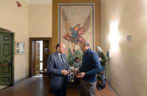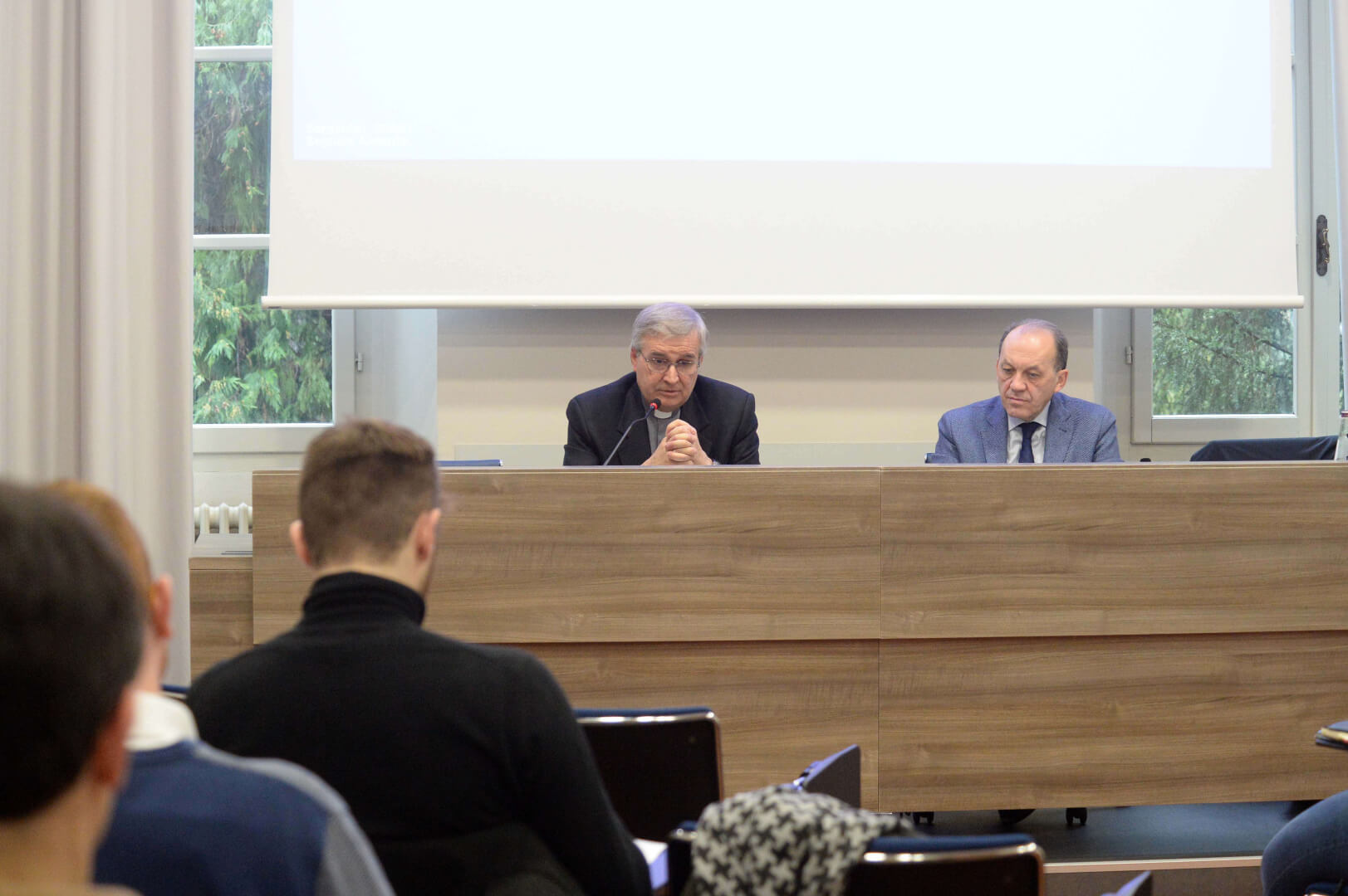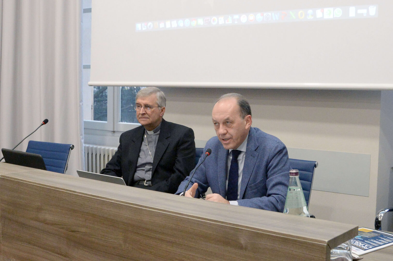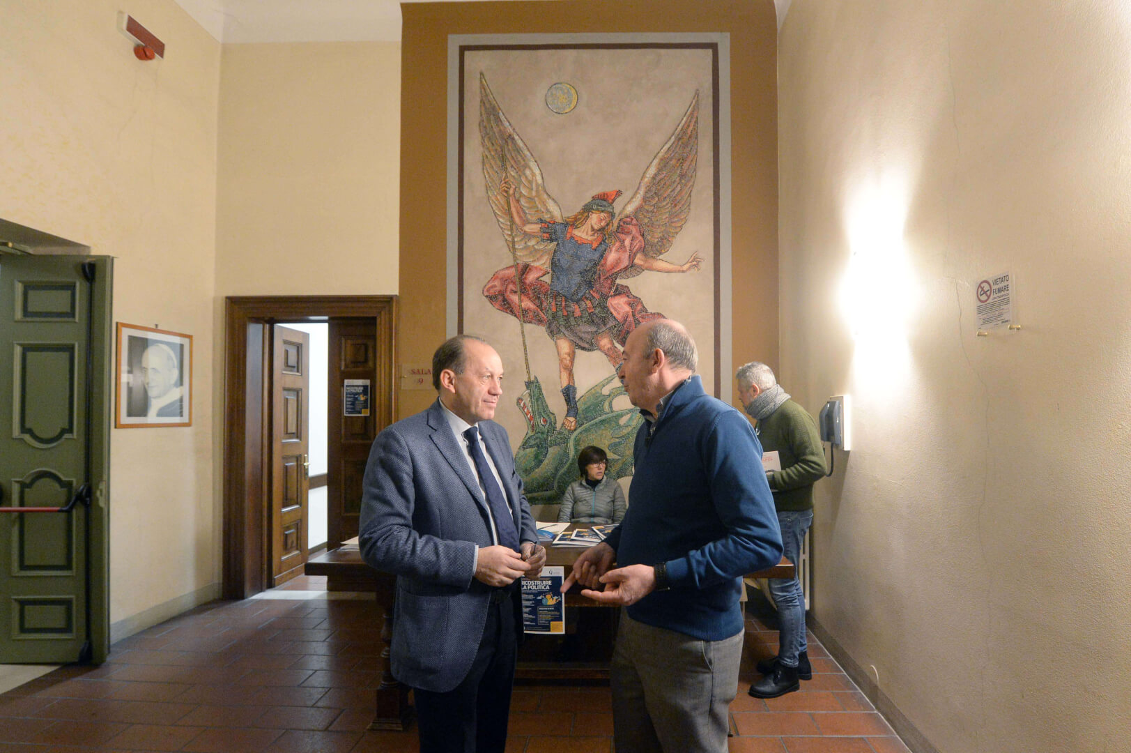 "Costruire la città. il compito della politica alla luce della parola di Dio". Il vescovo Pierantonio Tremolada con Silvano Corli alla prima lezione della Scuola di Formazione all'Impegno Sociale e Politico