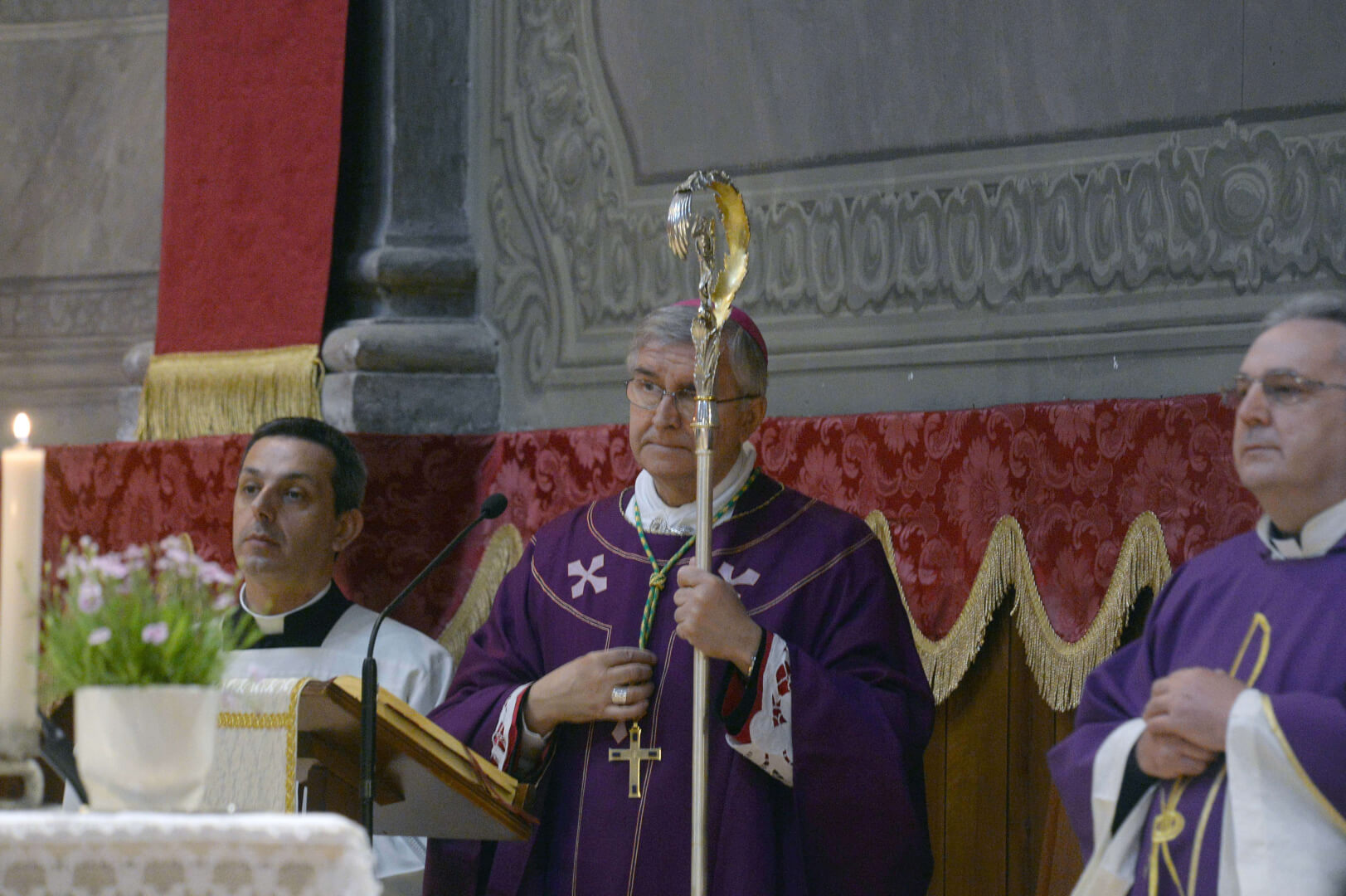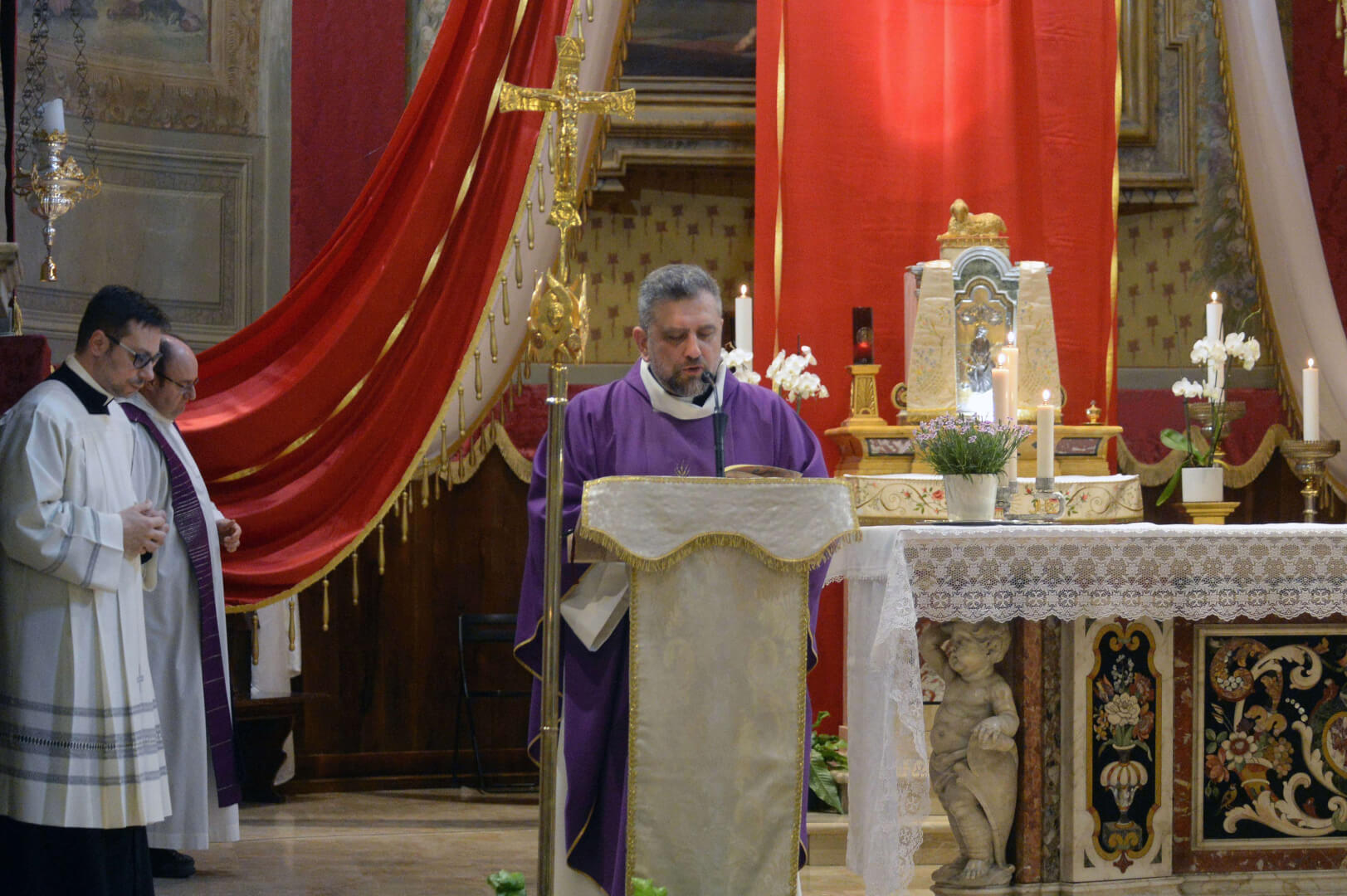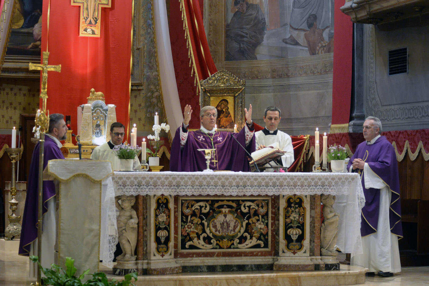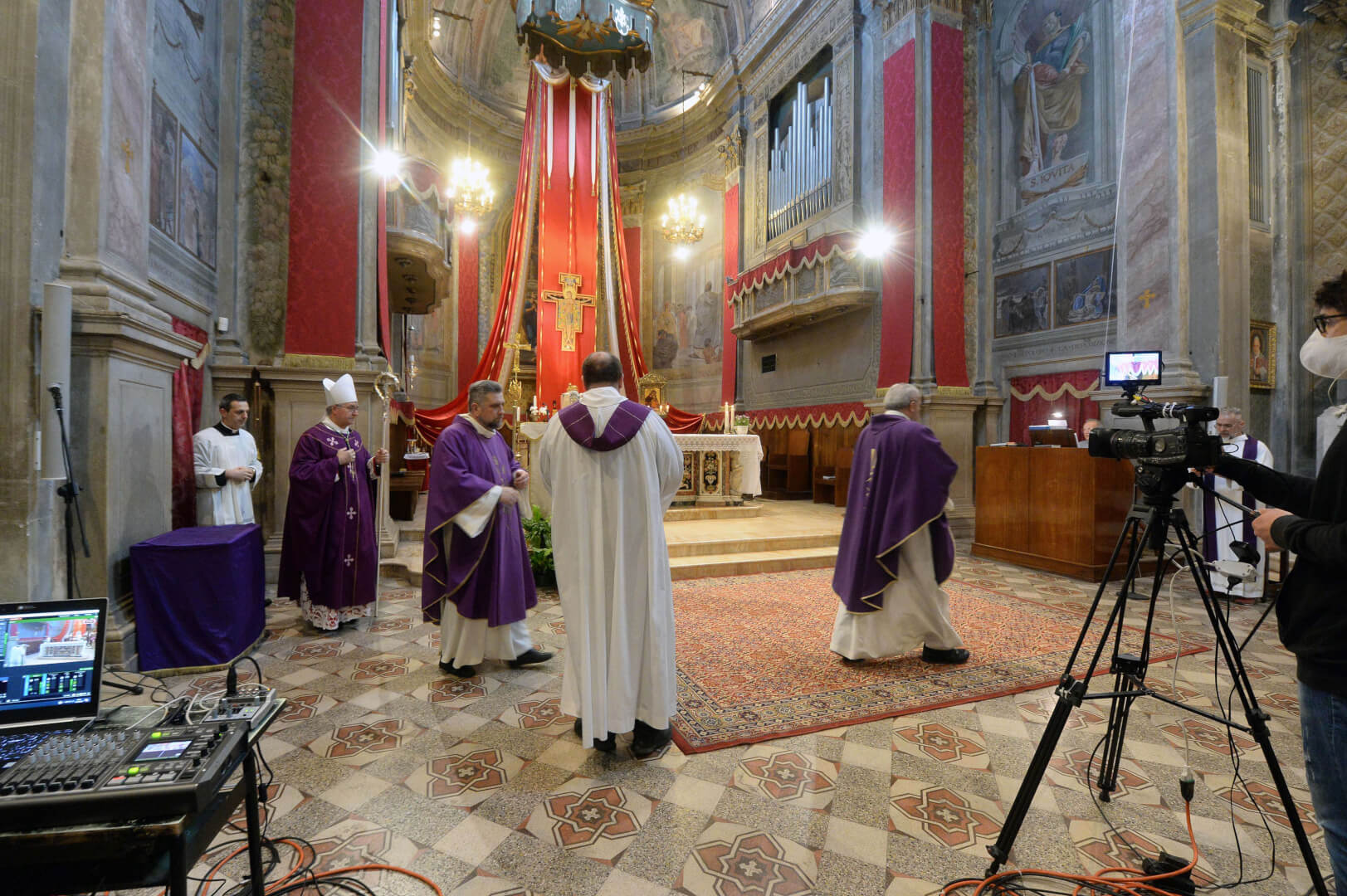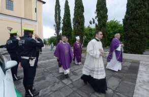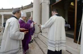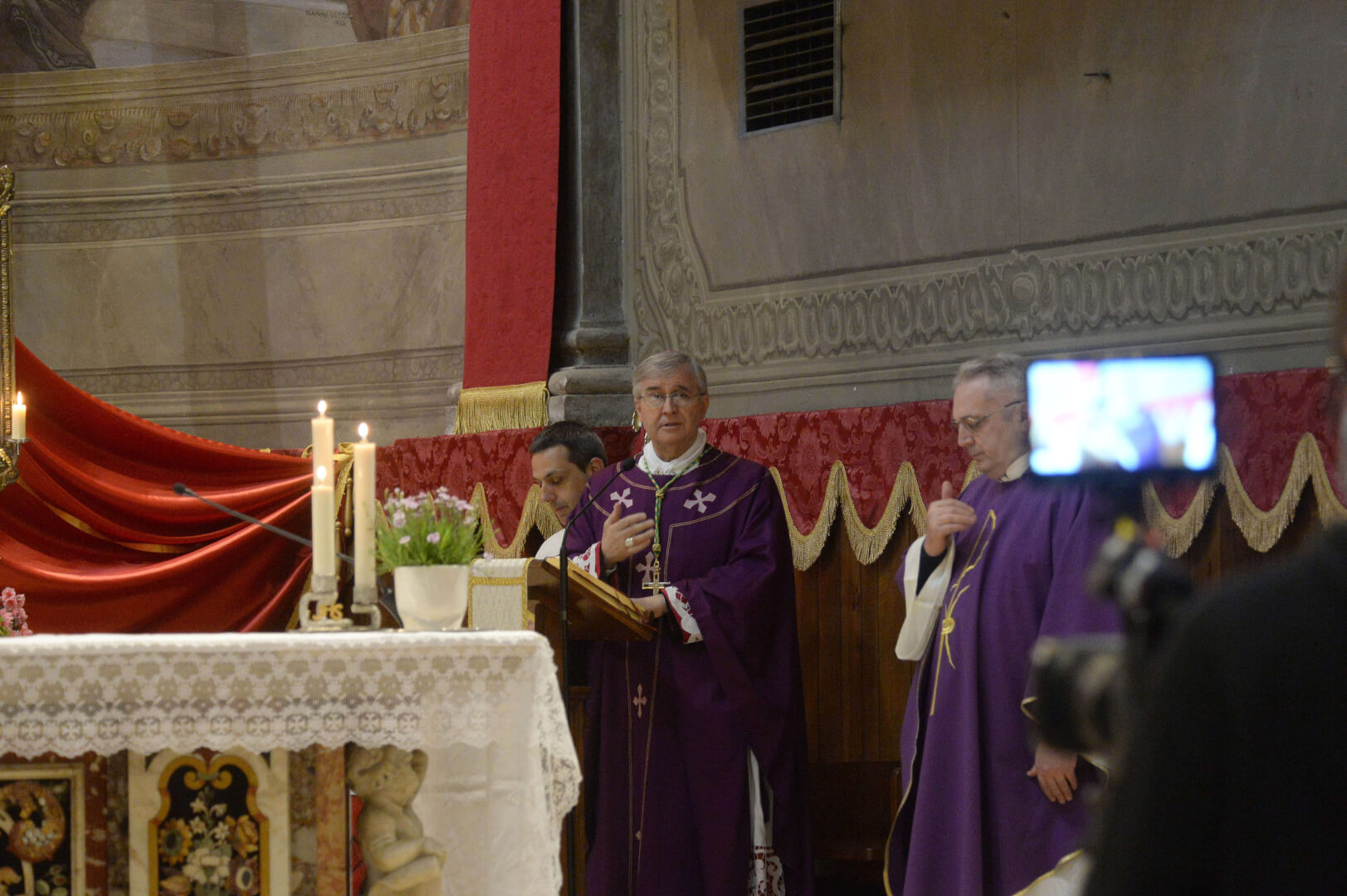 Il vescovo Pierantonio Tremolada questa mattina, lunedì 11 maggio, al cimitero della Volta per la Messa esequiale delle urne cinerarie che qui verranno tumulate