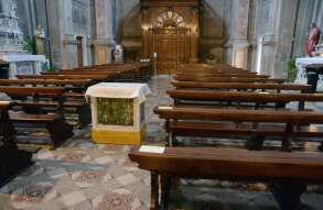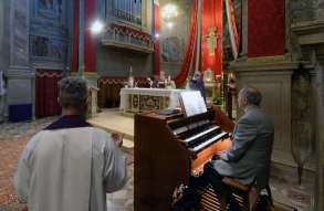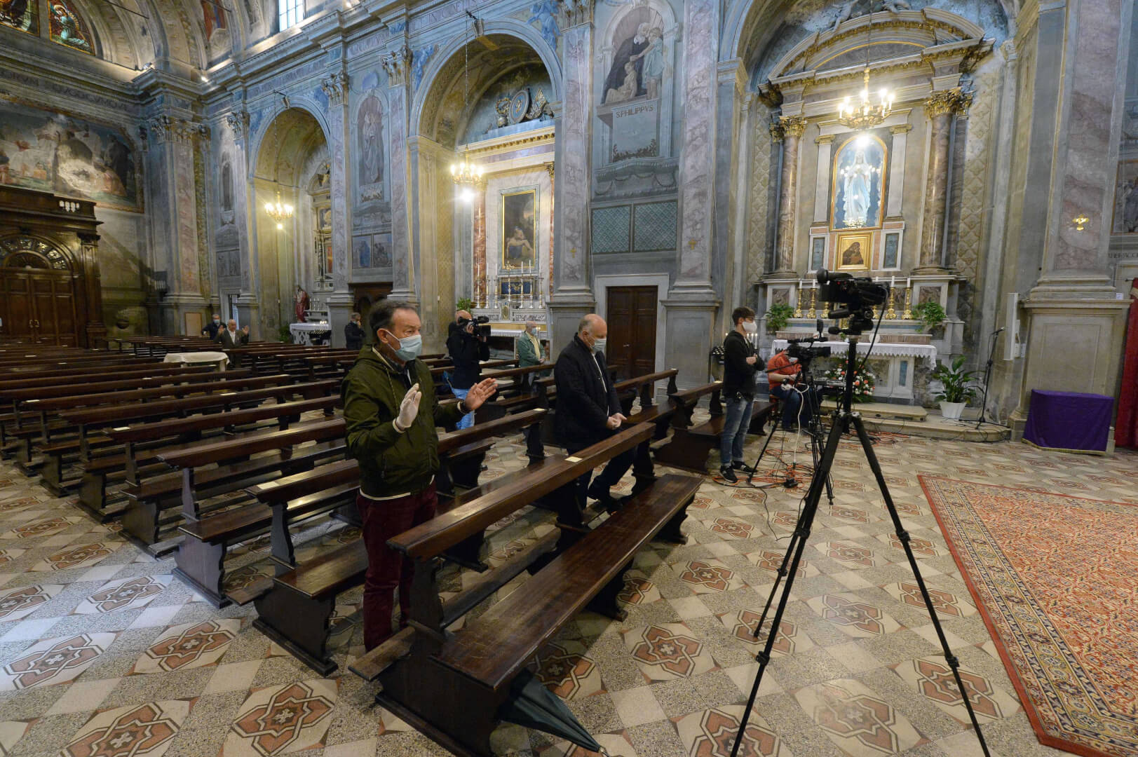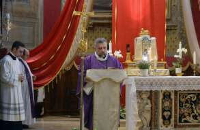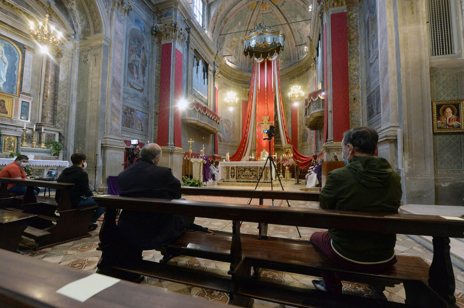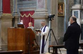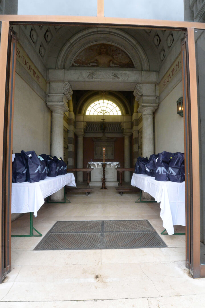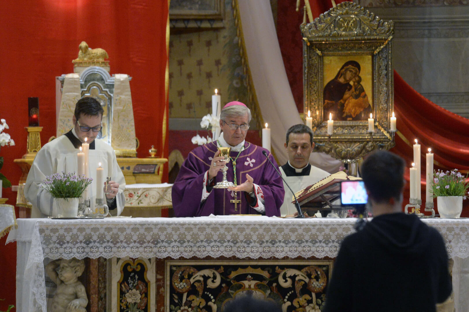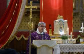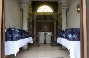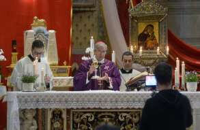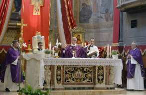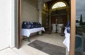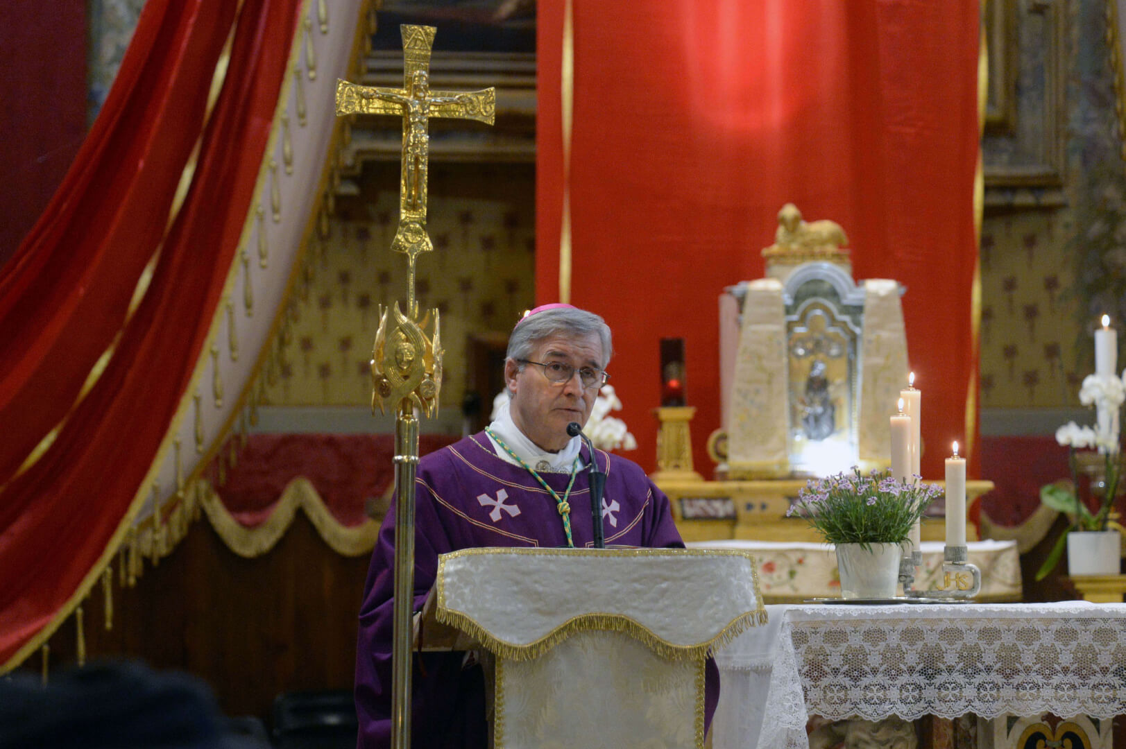 Il vescovo Pierantonio Tremolada questa mattina, lunedì 11 maggio, al cimitero della Volta per la Messa esequiale delle urne cinerarie che qui verranno tumulate