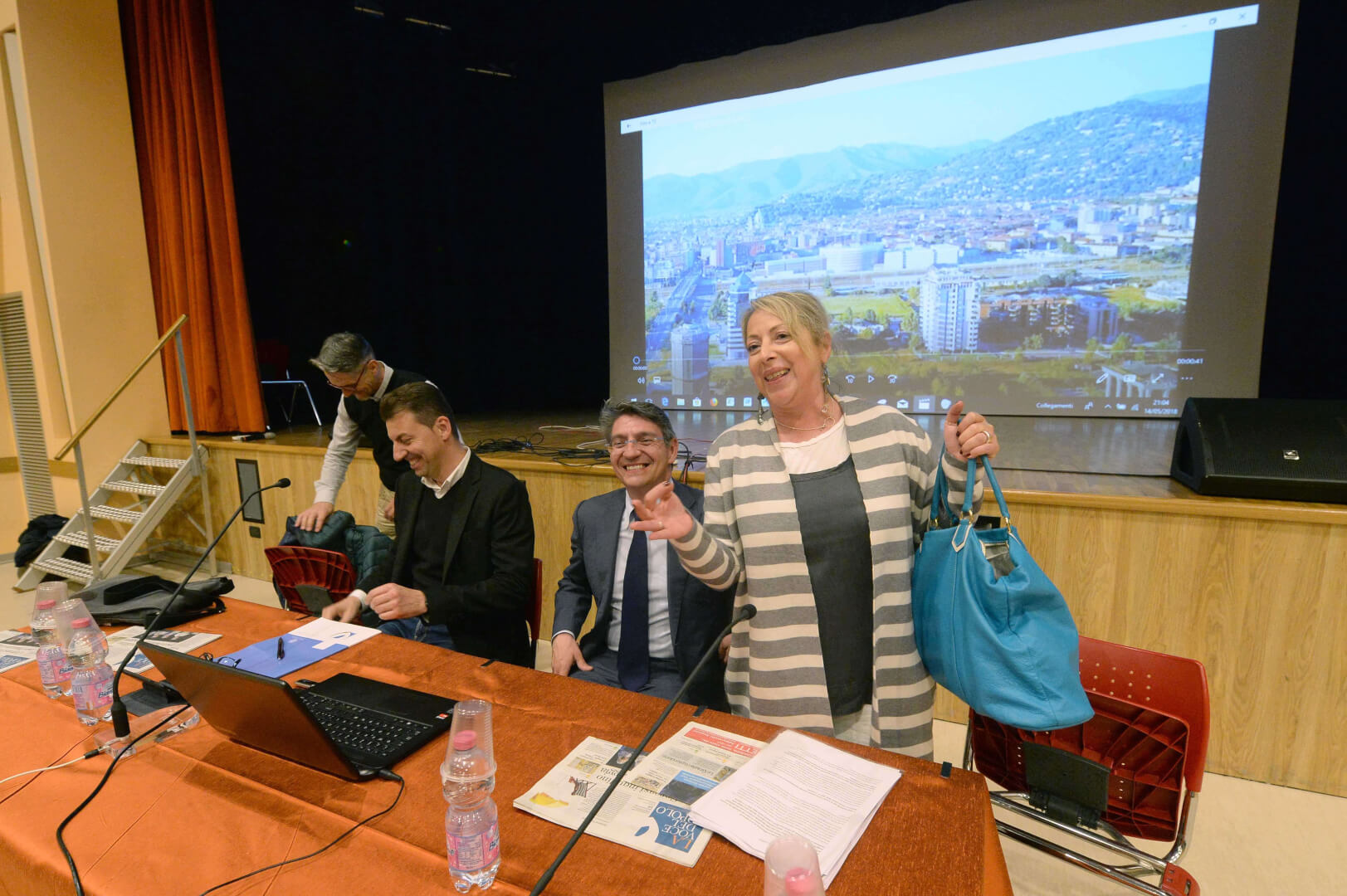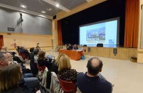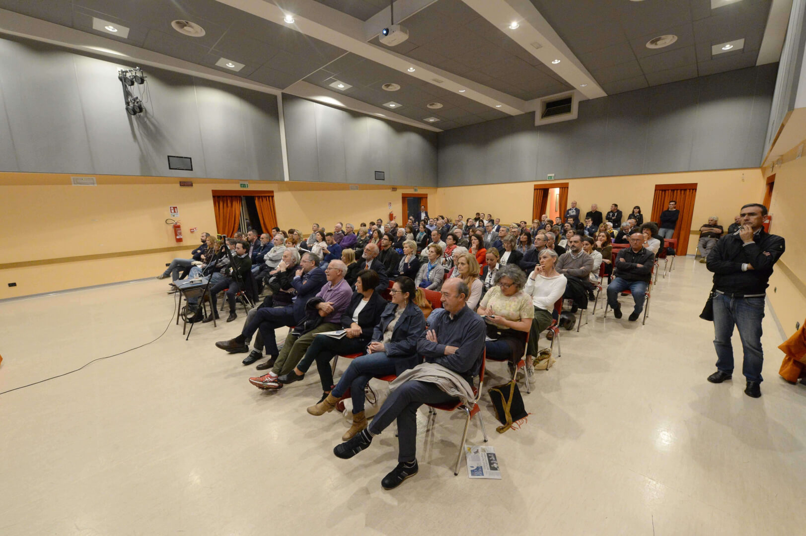 Guido Ghidini, Emilio Del Bono e Paola Vilardi nella Sala della comunità di Fornaci per il secondo incontro organizzato dal nostro settimanale con le parrocchie della città, con le Acli, con Mcl e con l'Azione Cattolica