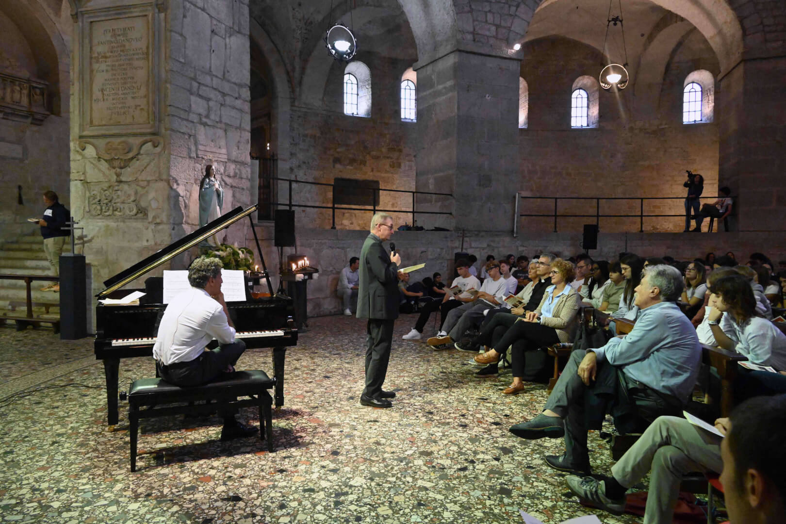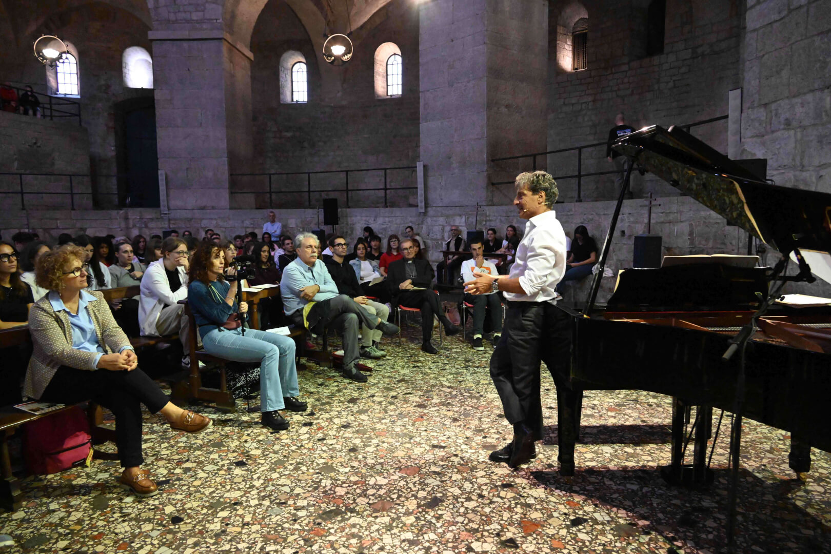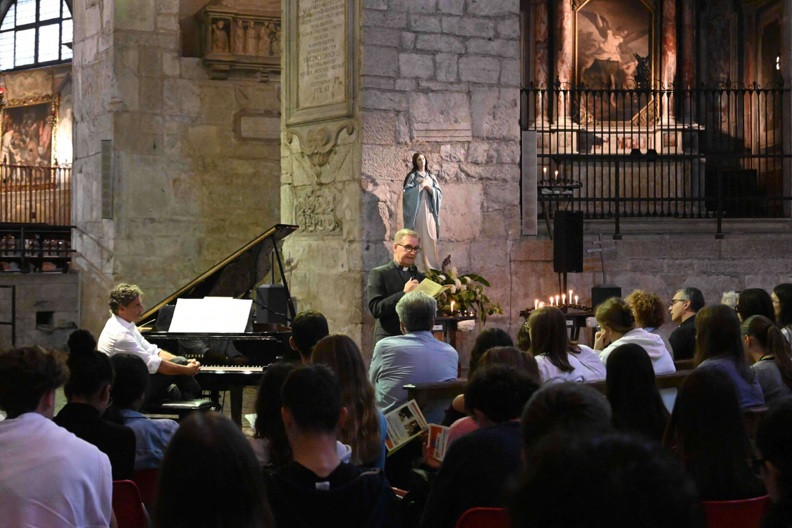 In occasione della XX edizione del Festival LeXGiornate, Fondazione Soldano e Fondazione Comunità e Scuola, in collaborazione con l’Ufficio per la Scuola della Diocesi di Brescia, hanno proposto, lunedì 22 settembre in Duomo Vecchio, alle studentesse e gli studenti delle scuole secondarie di secondo grado l’evento “Dire l'indicibile. L’io nascosto, l'io ritrovato”. Le parole del vescovo Pierantonio hanno accompagnato il suono del pianoforte del maestro Daniele Alberti su brani di Mozart, Bach e Chopin