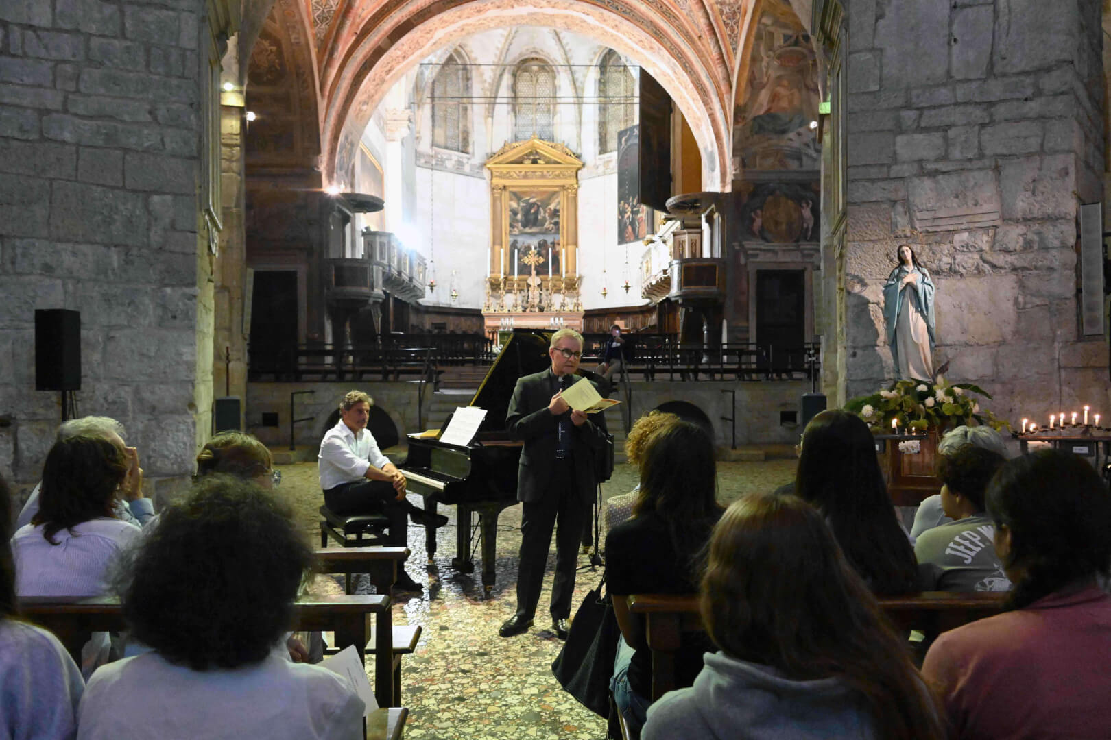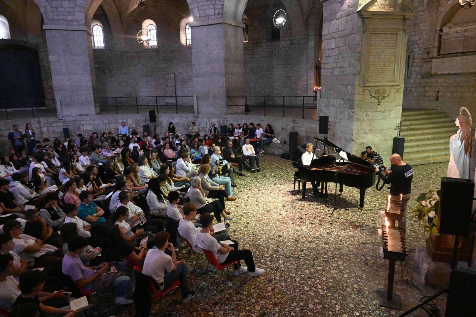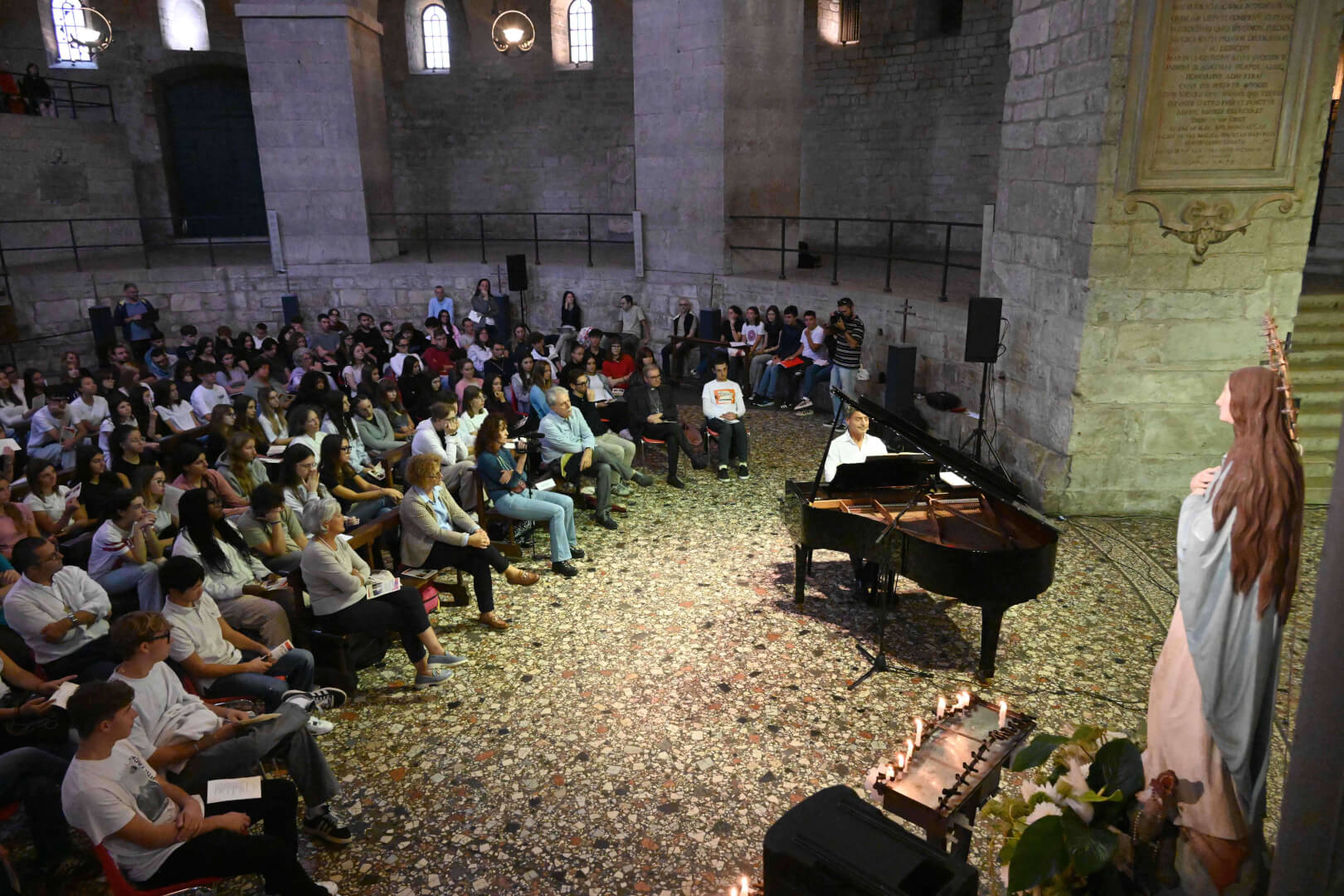 In occasione della XX edizione del Festival LeXGiornate, Fondazione Soldano e Fondazione Comunità e Scuola, in collaborazione con l’Ufficio per la Scuola della Diocesi di Brescia, hanno proposto, lunedì 22 settembre in Duomo Vecchio, alle studentesse e gli studenti delle scuole secondarie di secondo grado l’evento “Dire l'indicibile. L’io nascosto, l'io ritrovato”. Le parole del vescovo Pierantonio hanno accompagnato il suono del pianoforte del maestro Daniele Alberti su brani di Mozart, Bach e Chopin