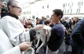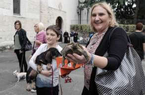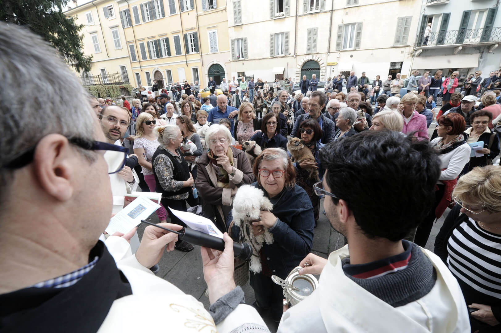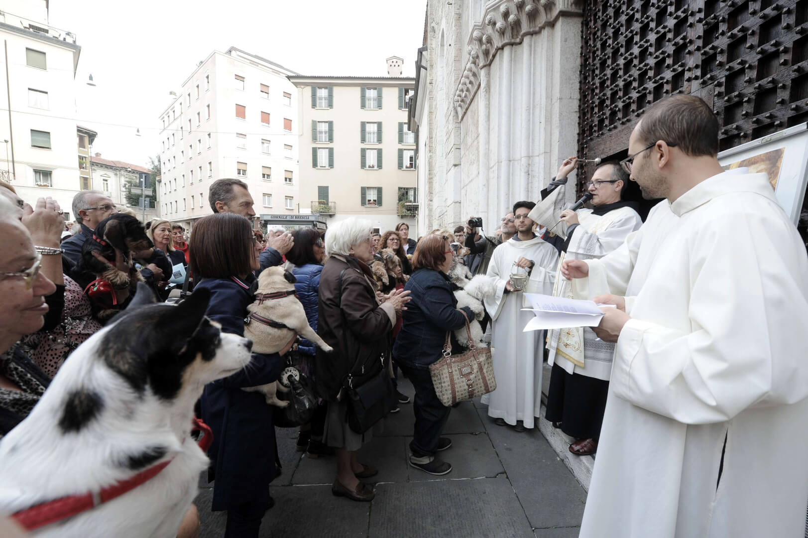 La tradizionale benedizione degli animali sul sagrato della chiesa di San Francesco