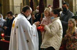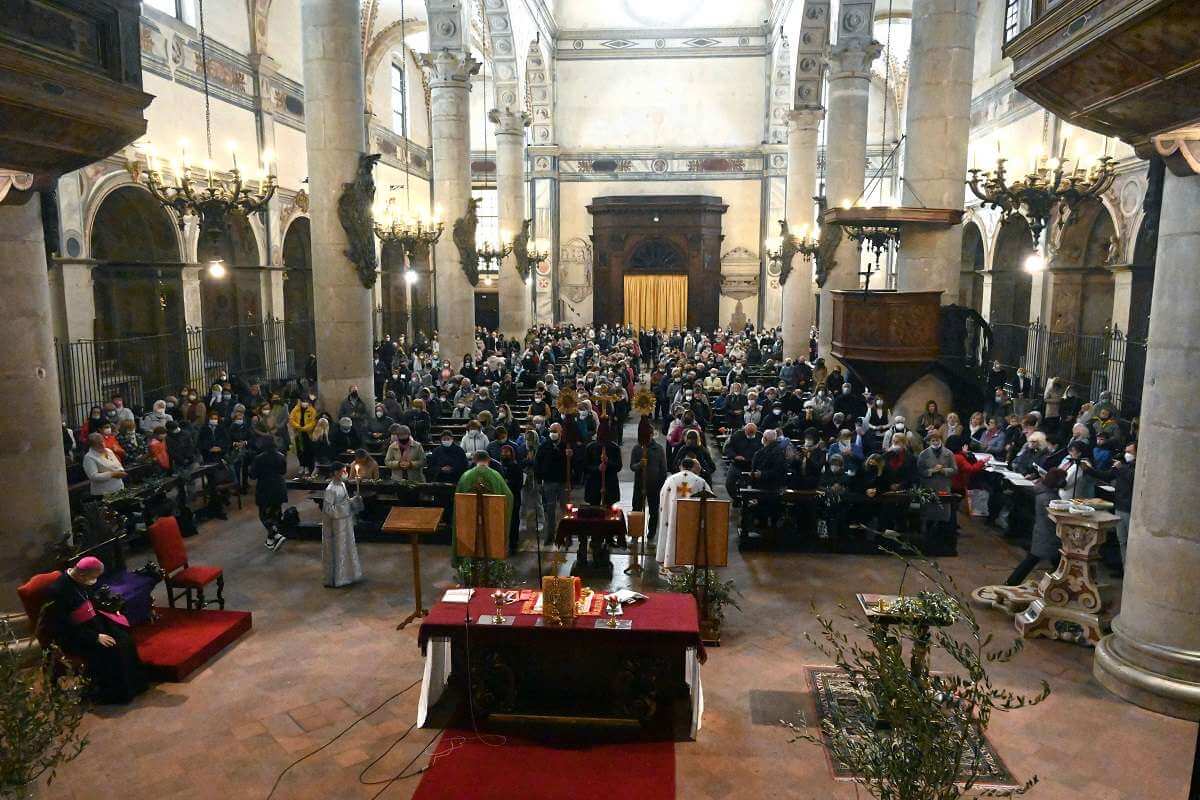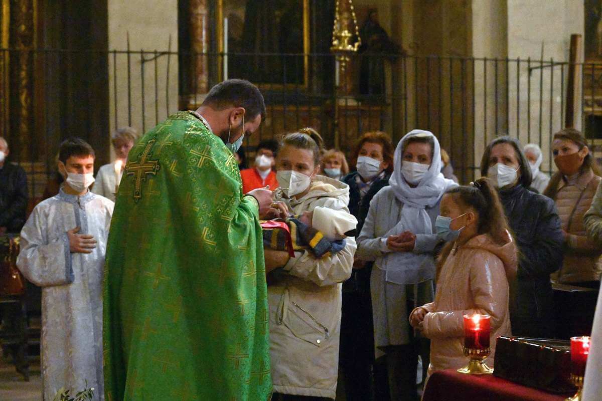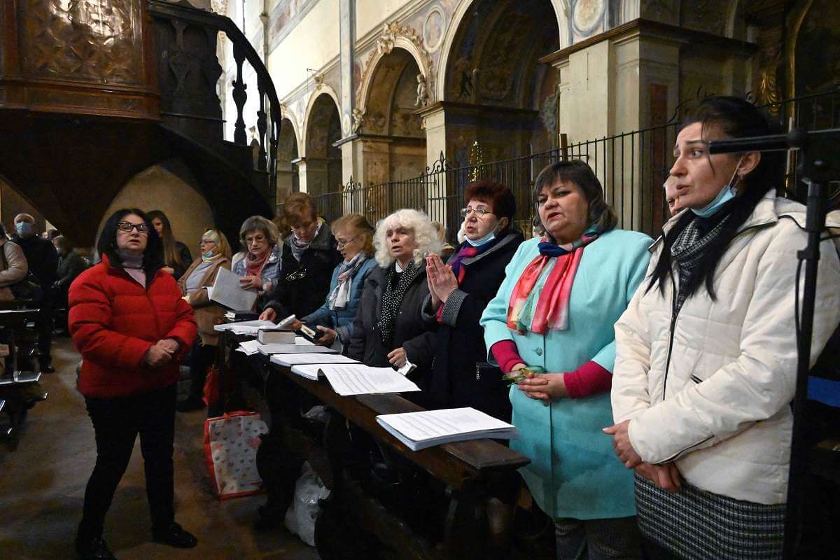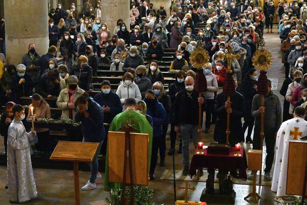 Il vescovo Pierantonio, alla fine della Divina Liturgia, ha portato il suo saluto alla comunità ucraina cattolica di rito orientale nella chiesa di San Giuseppe. E' un ulteriore gesto di vicinanza della Chiesa bresciana nei confronti della comunità ucraina all’inizio della Settimana Santa