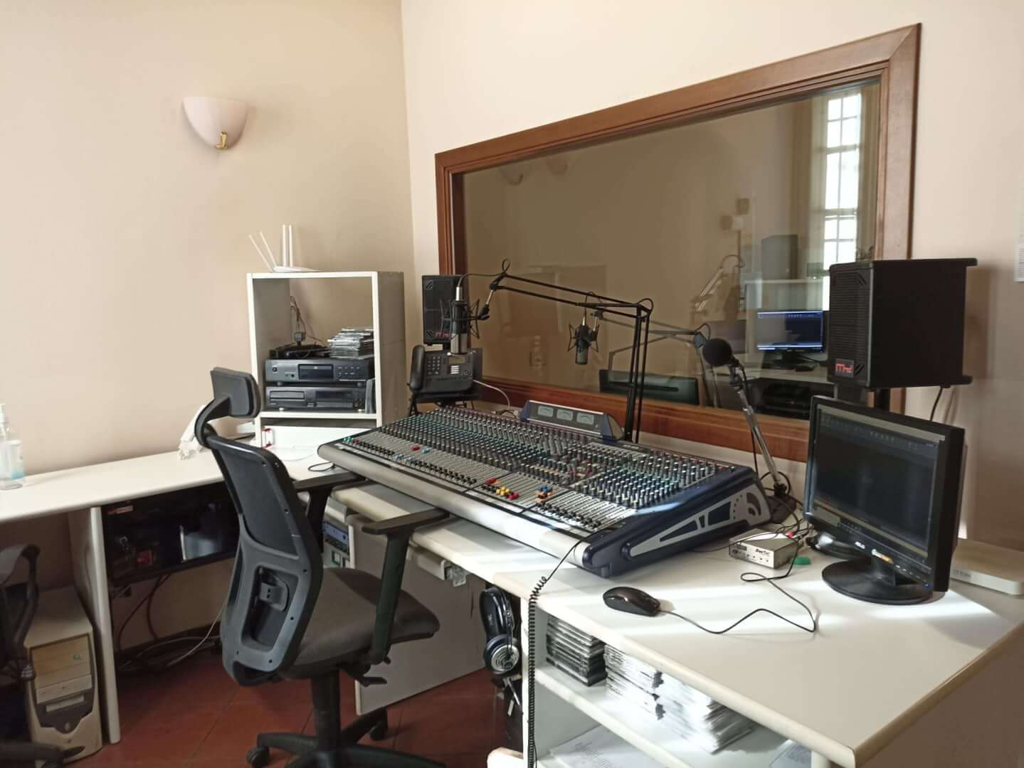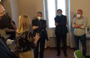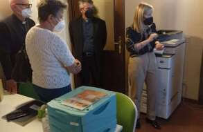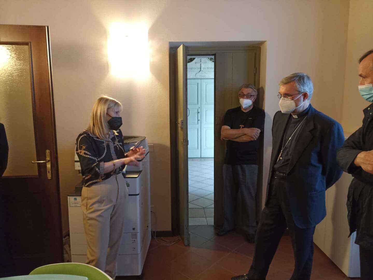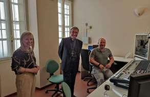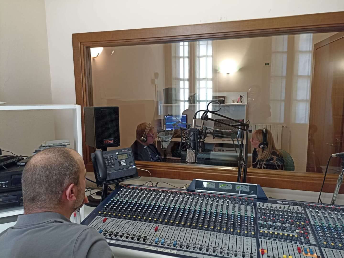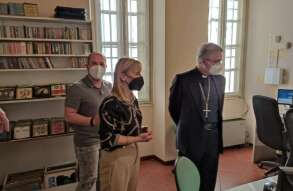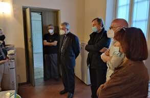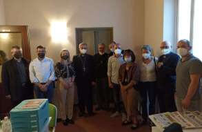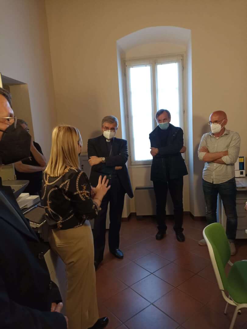 Il vescovo Pierantonio ha incontrato a Castenedolo il personale tra cui il direttore Stefania Brunelli e il tecnico Fabio, alcuni volontari e il Consiglio di amministrazione di Radio Ecz, una radio al servizio della comunità e del territorio diocesano