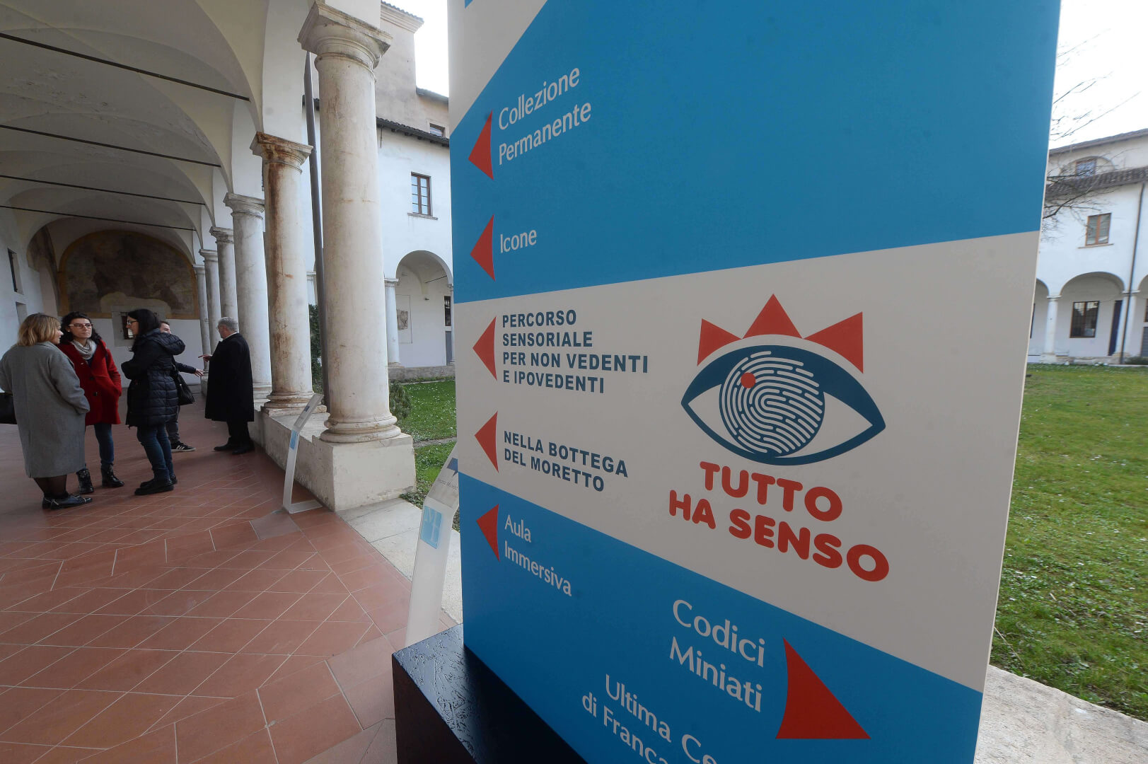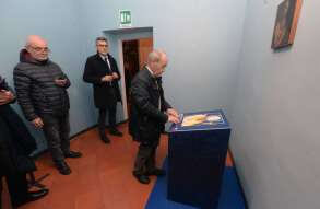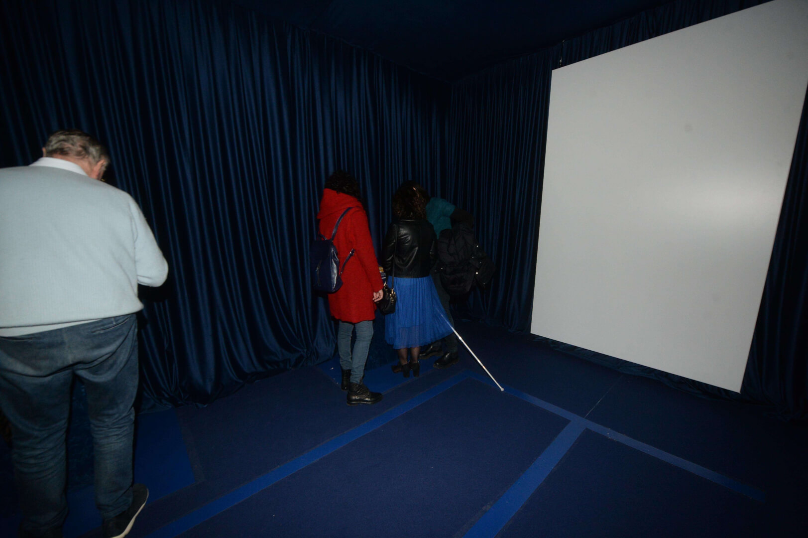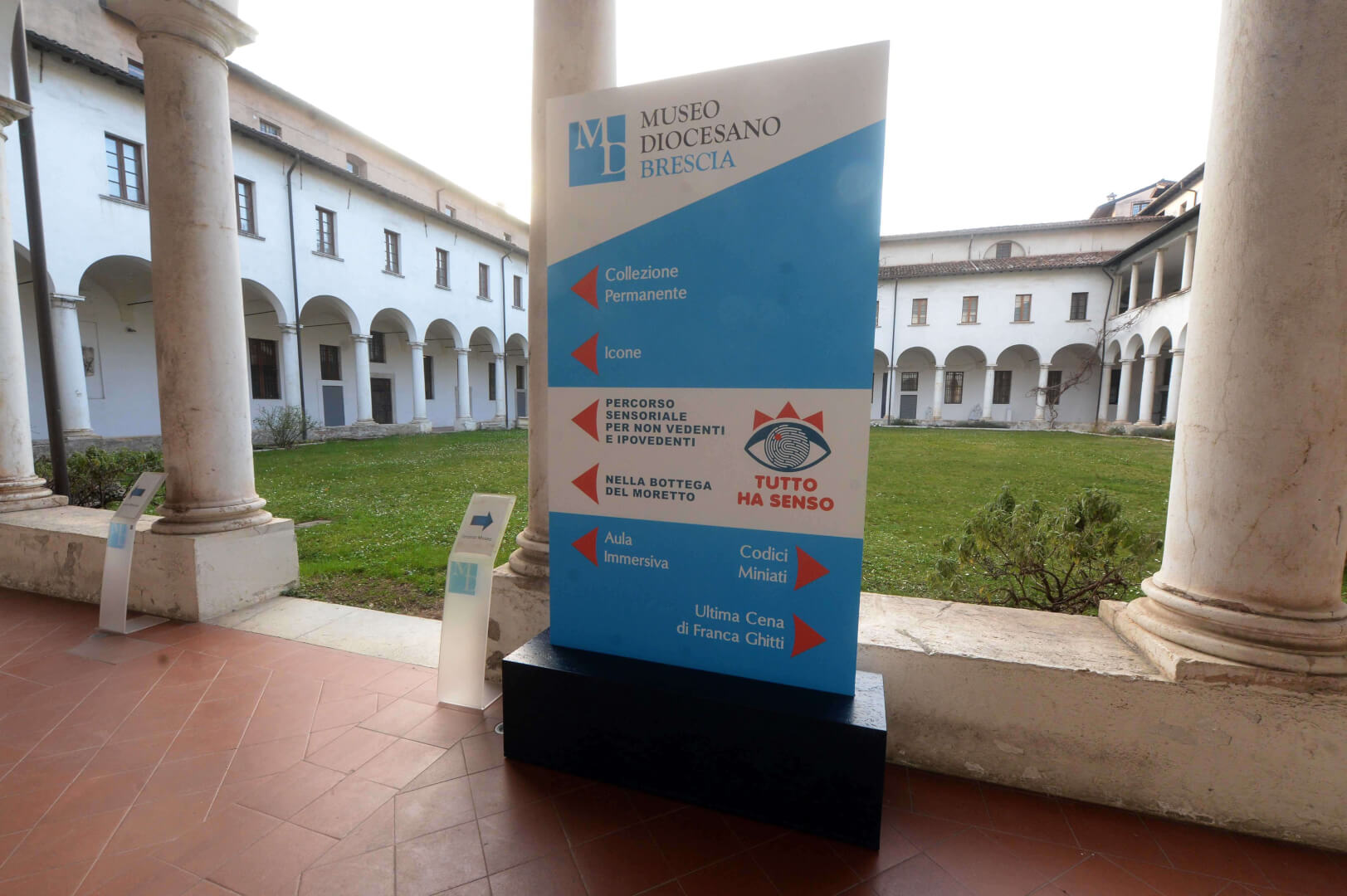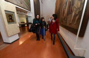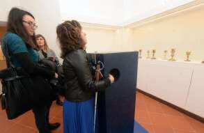 Inaugurati al Museo Diocesano il Percorso permanente per non vedenti e la stanza multisensoriale al buio “Nella Bottega del Moretto". La sala si presenta come una capsula rivestita di velluto blu scuro, che isola il visitatore dal mondo esterno come in una bolla senza tempo