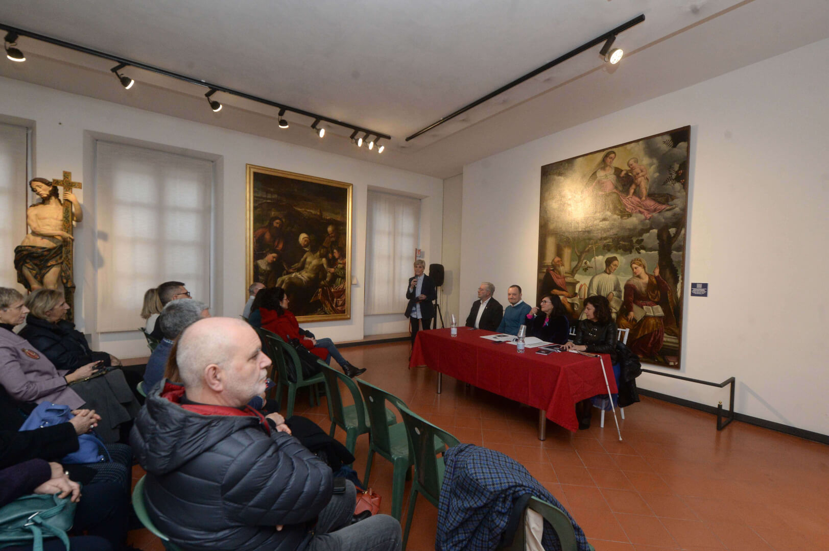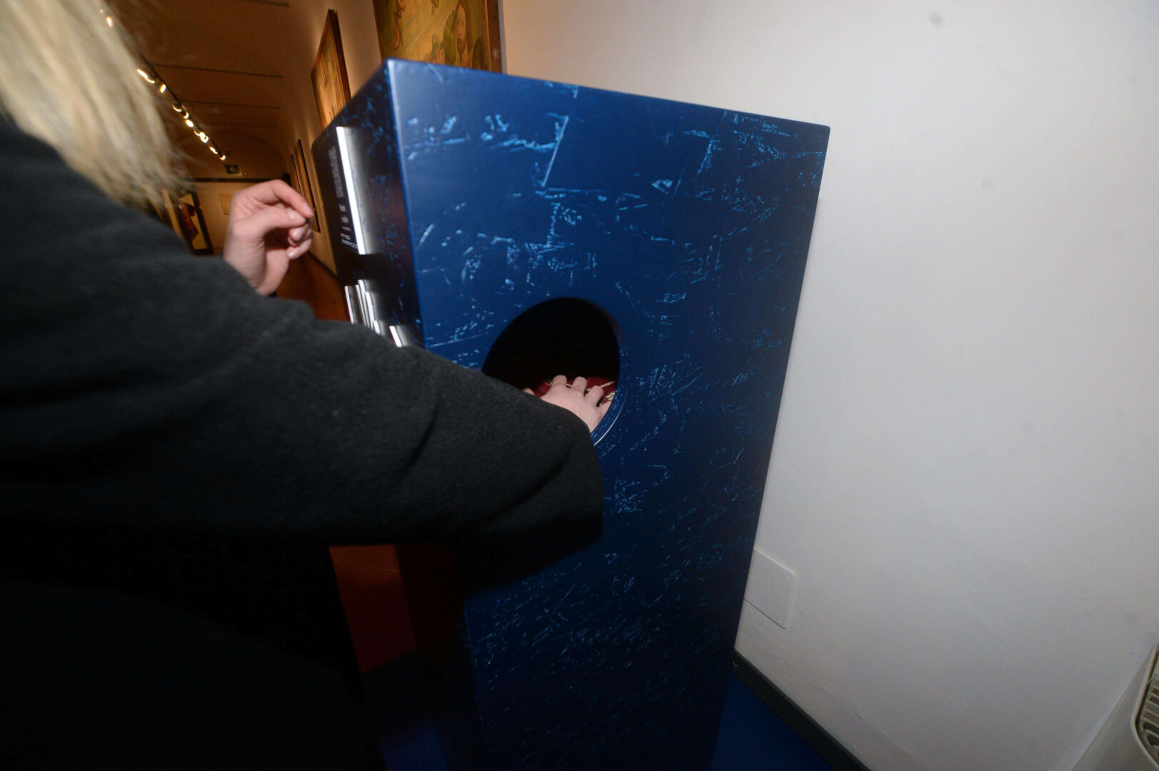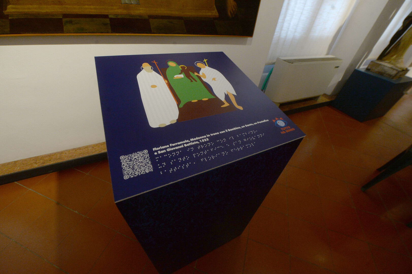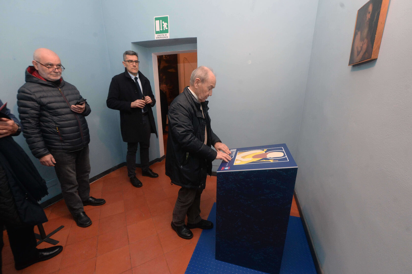 Inaugurati al Museo Diocesano il Percorso permanente per non vedenti e la stanza multisensoriale al buio “Nella Bottega del Moretto". La sala si presenta come una capsula rivestita di velluto blu scuro, che isola il visitatore dal mondo esterno come in una bolla senza tempo