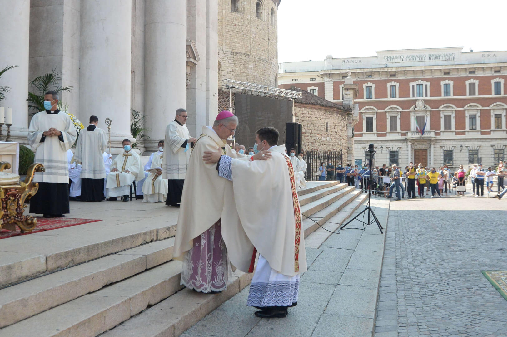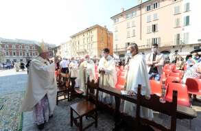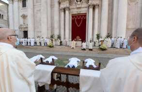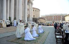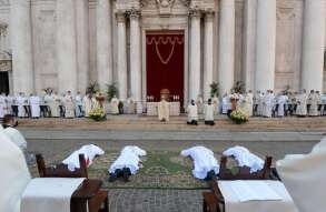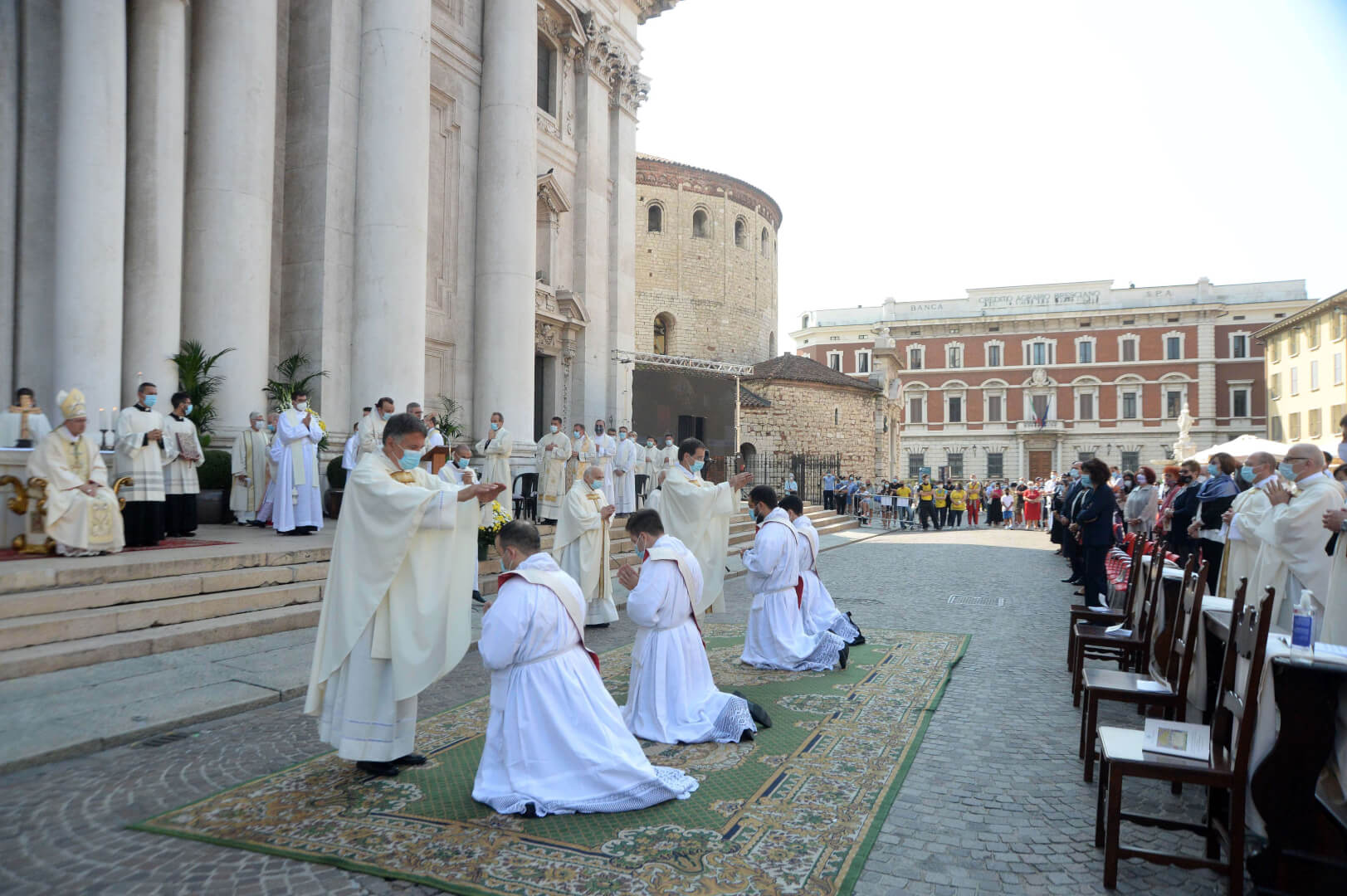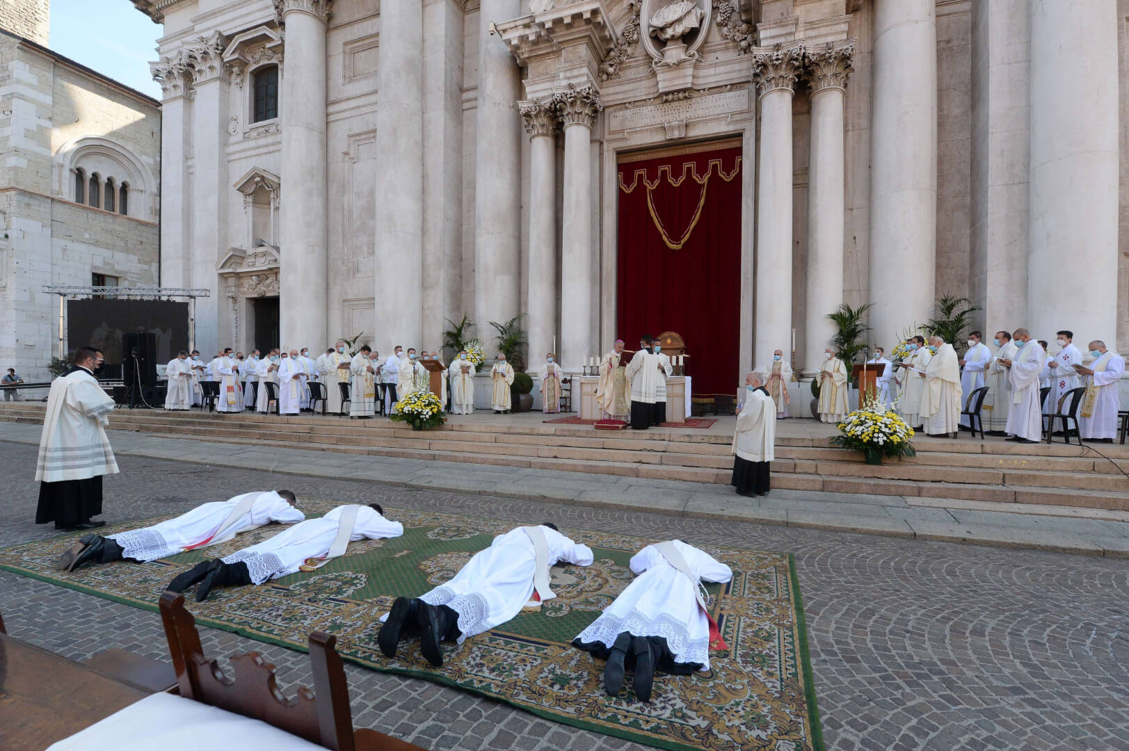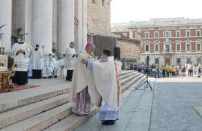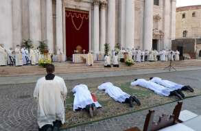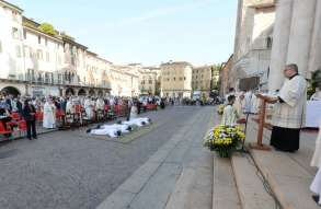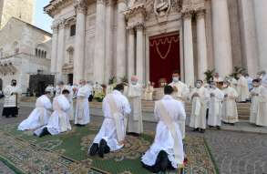 In Piazza Paolo VI il vescovo Pierantonio ha ordinato quattro nuovi sacerdoti bresciani: don Alberto Comini, don Nicola Mossi, don Stefano Pe e don Alessio Torriti