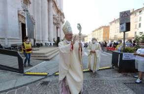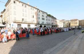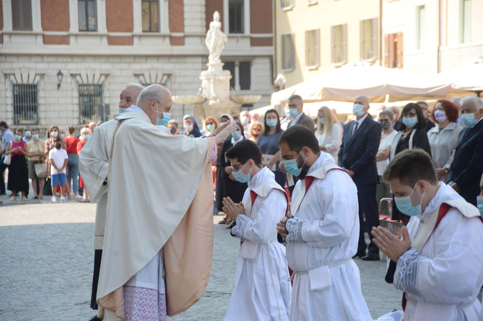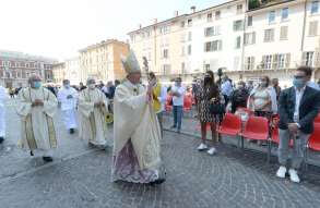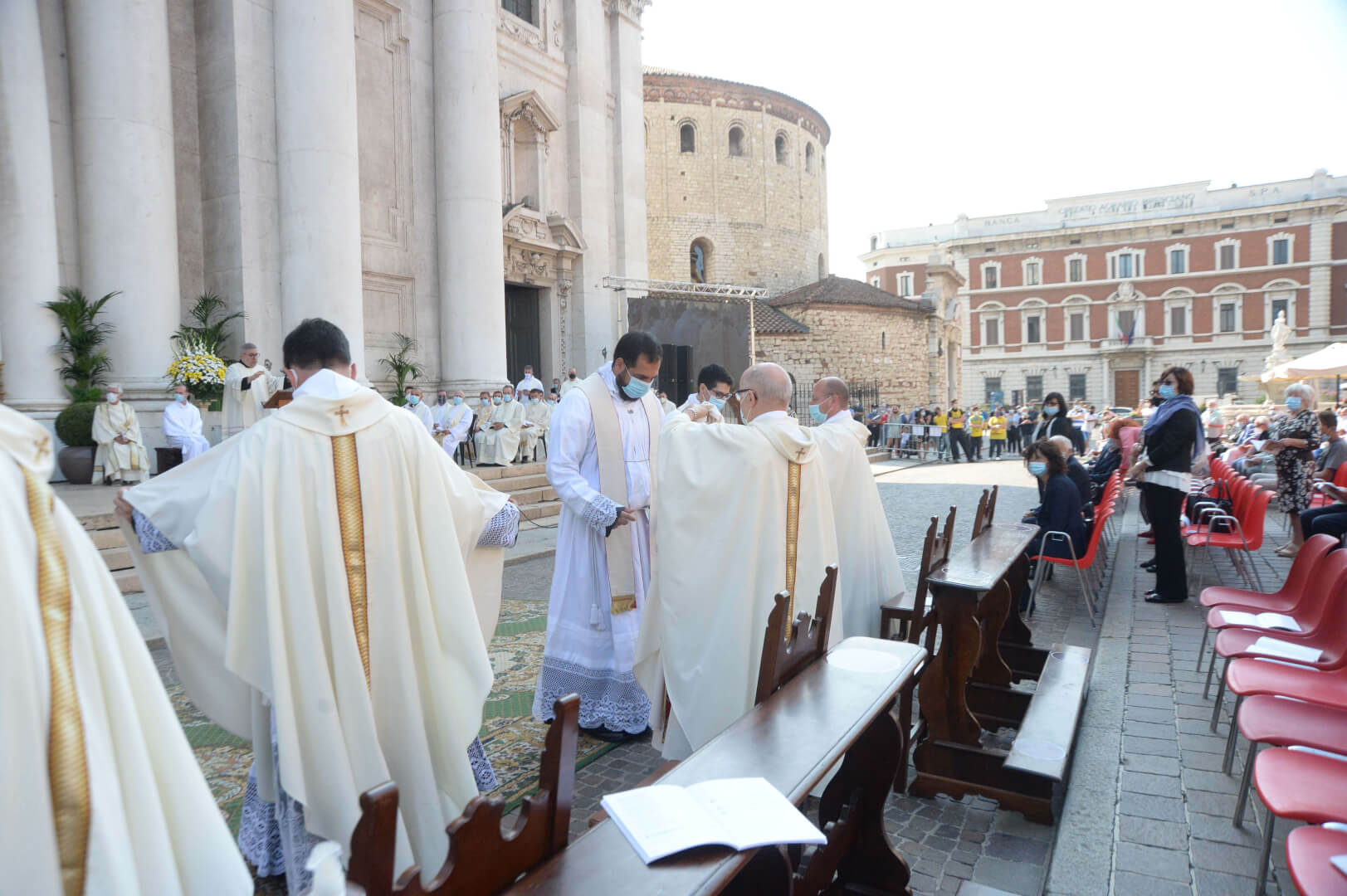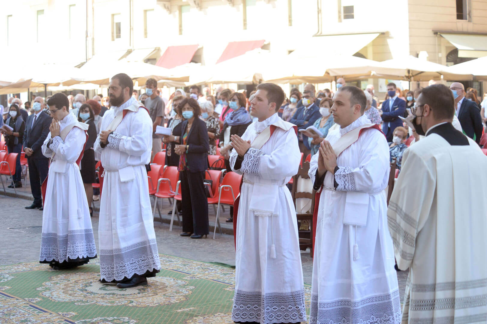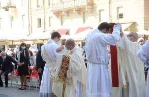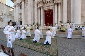 In Piazza Paolo VI il vescovo Pierantonio ha ordinato quattro nuovi sacerdoti bresciani: don Alberto Comini, don Nicola Mossi, don Stefano Pe e don Alessio Torriti