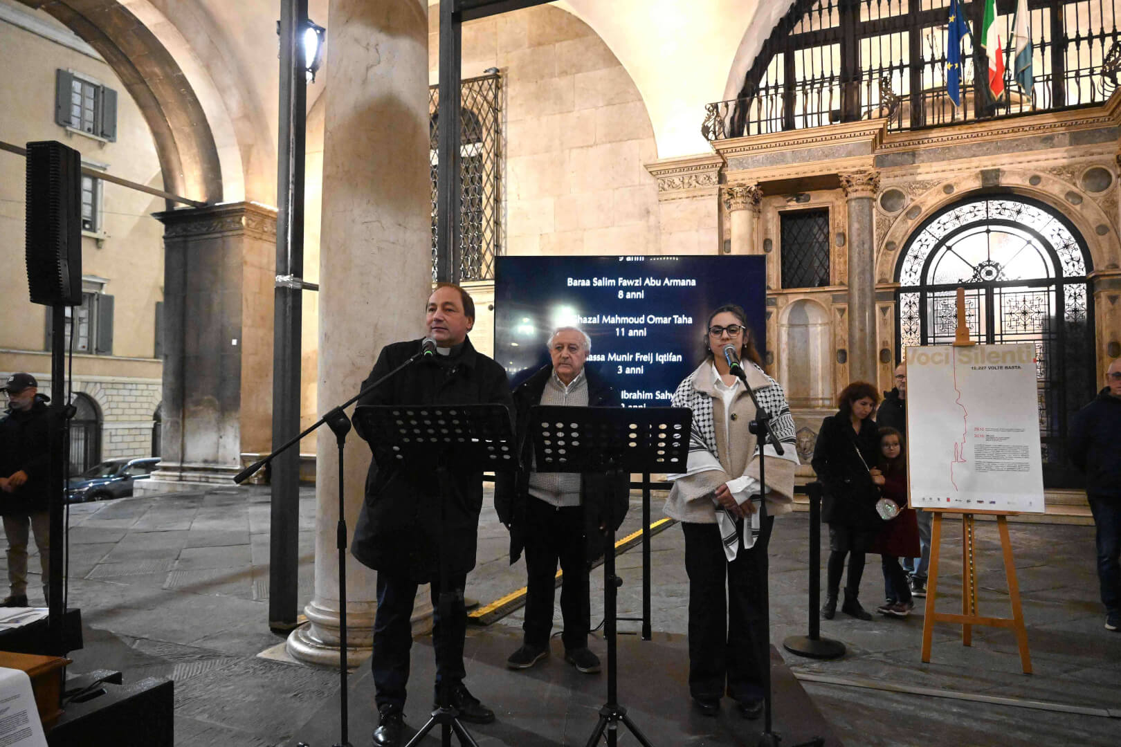 Giovedì 30 ottobre, sotto il Porticato di Palazzo Loggia, a conclusione dell'iniziativa "Voci Silenti" sono stati letti i nomi dei 12.227 bambini israeliani e palestinesi morti fra il 7 ottobre 2023 e il 15 luglio 2025