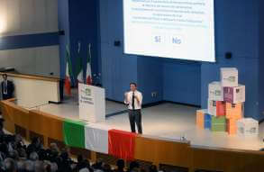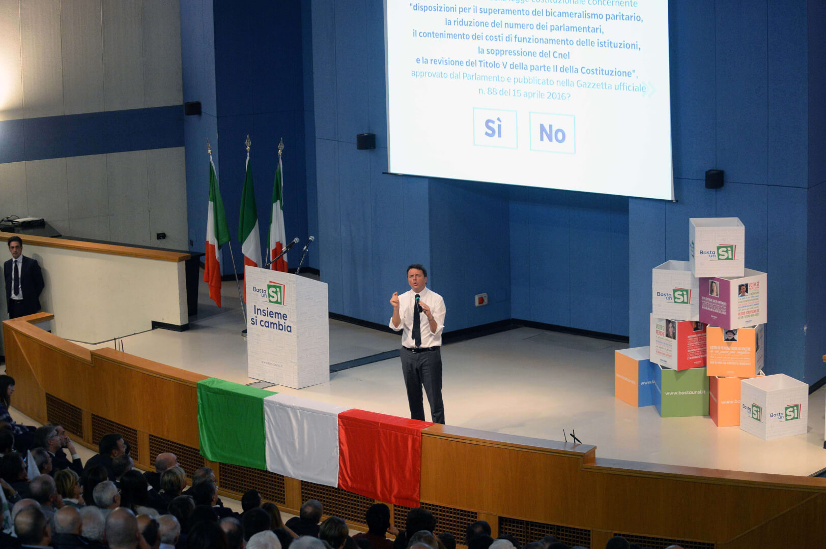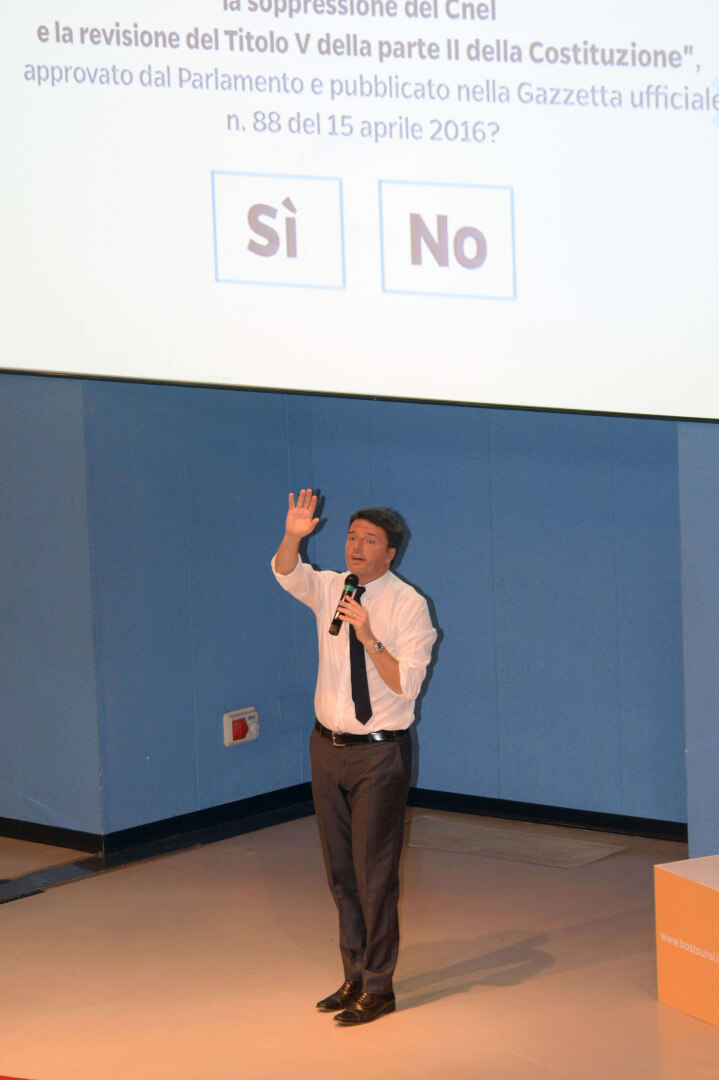 All'auditorium Balestrieri il premier Matteo Renzi è intervenuto per sostenere il sì al referendum costituzionale