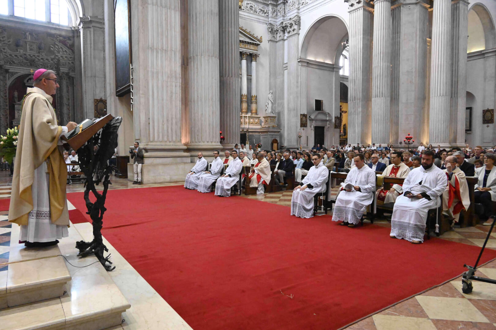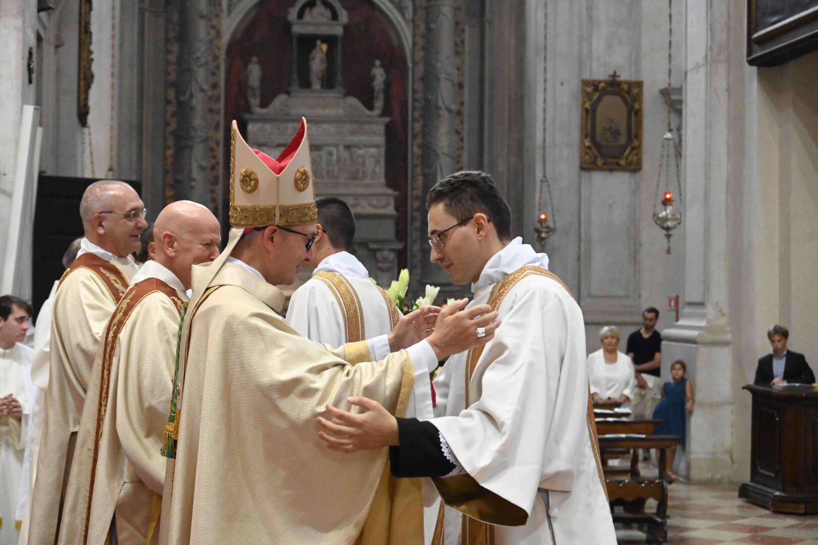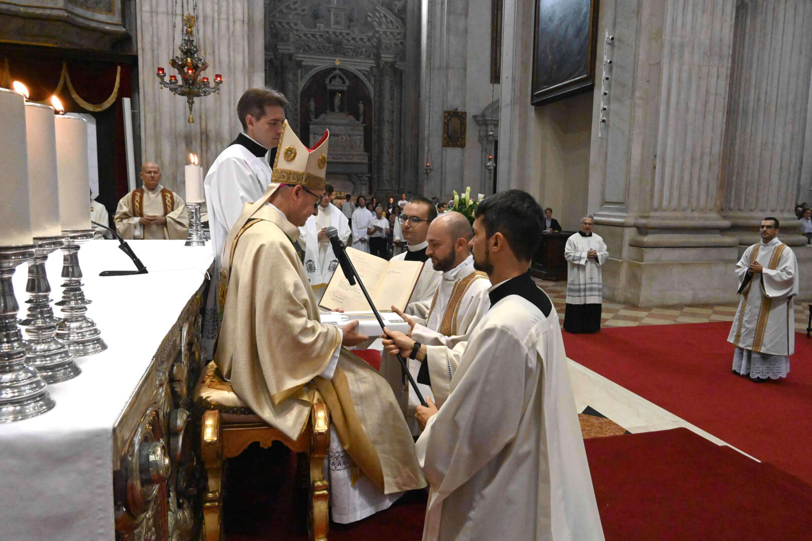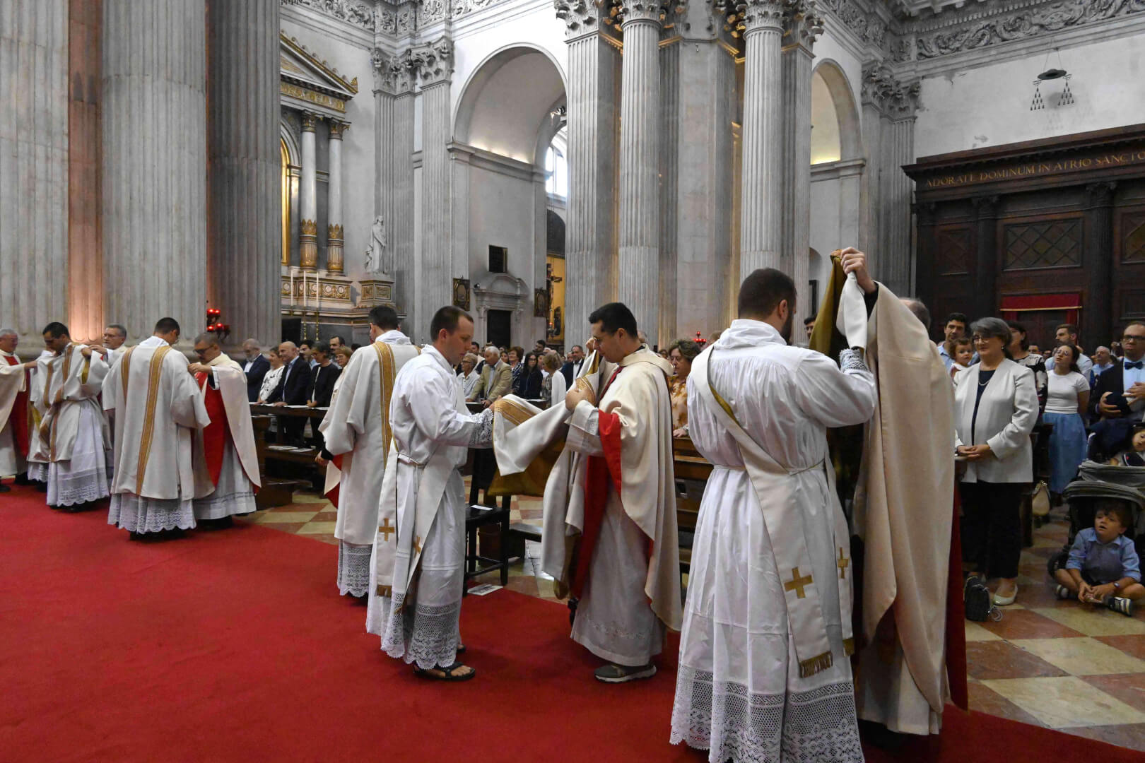 Mediante l’amore siate a servizio gli uni degli altri. Sabato 20 settembre, in Cattedrale, il vescovo Pierantonio ha ordinato sei nuovi diaconi: Andrea Coccoli (Divin Redentore); Giacomo Cottinelli (Lovere); Omar Scolari (Berzo Inferiore); Andrea Tonni (Nuvolera); fra Benedetto dell’Incarnazione (Benedetto Moser, Carmelitano Scalzo); fra Lorenzo dell’Annunciazione (Lorenzo Olivato, Carmelitano Scalzo)