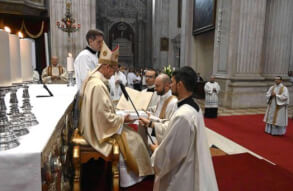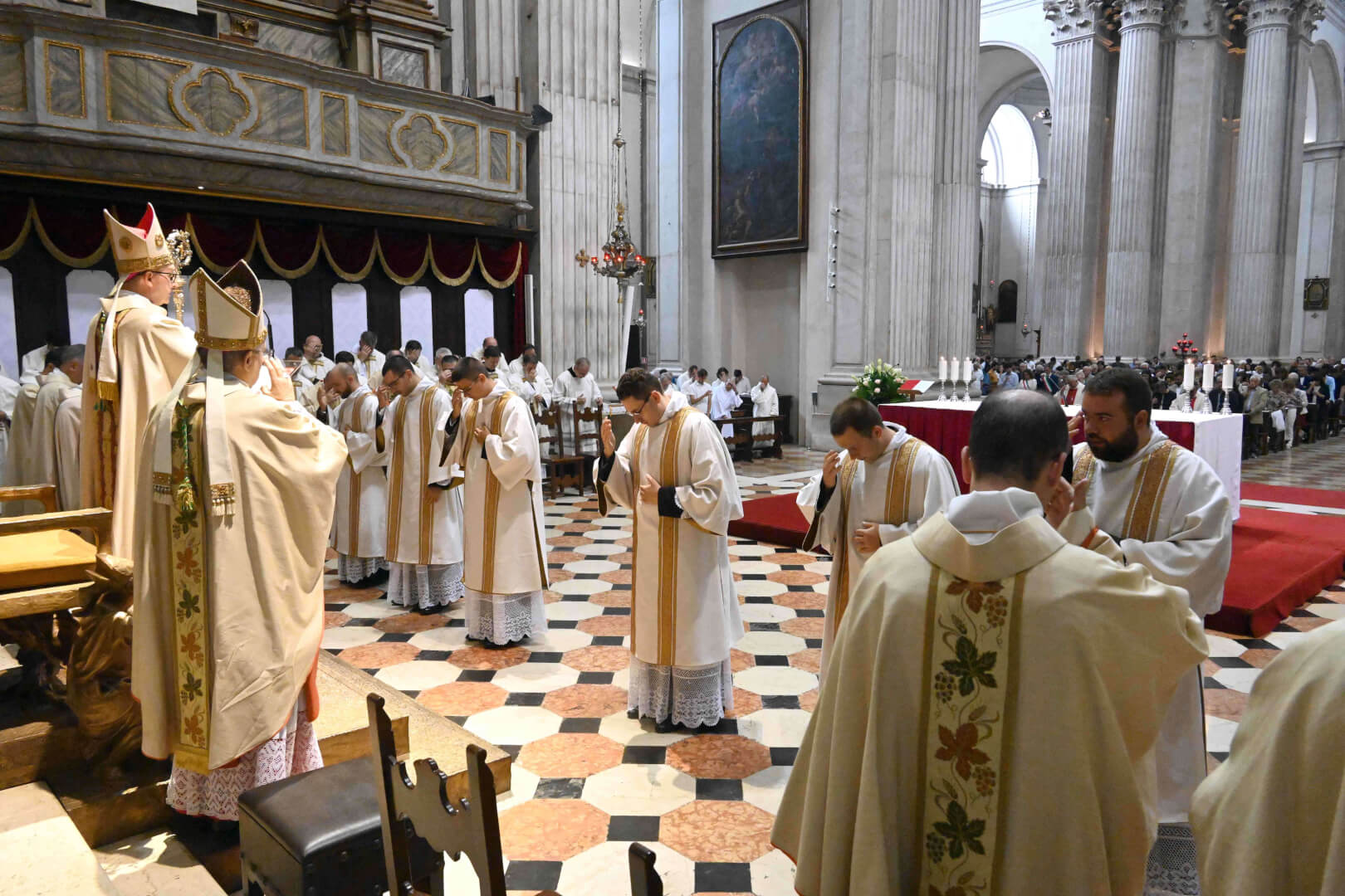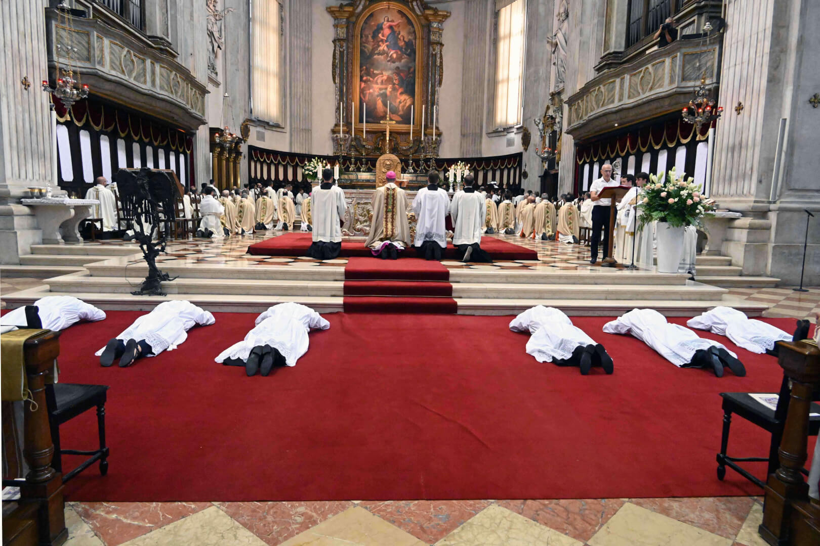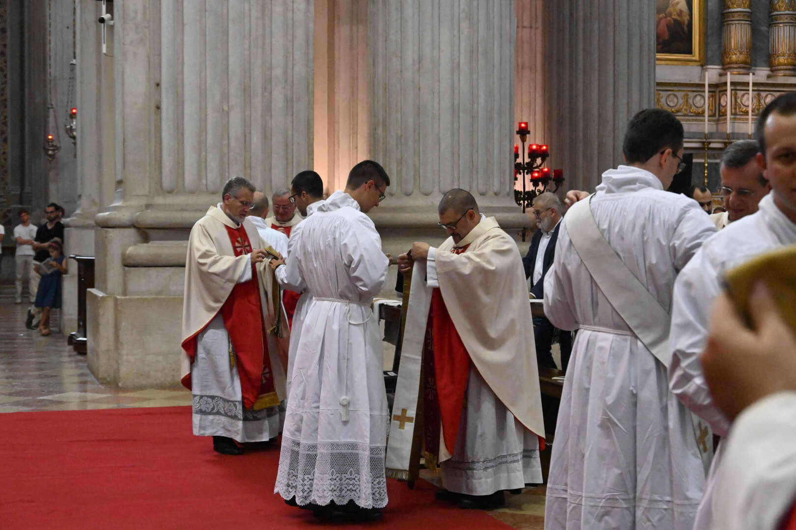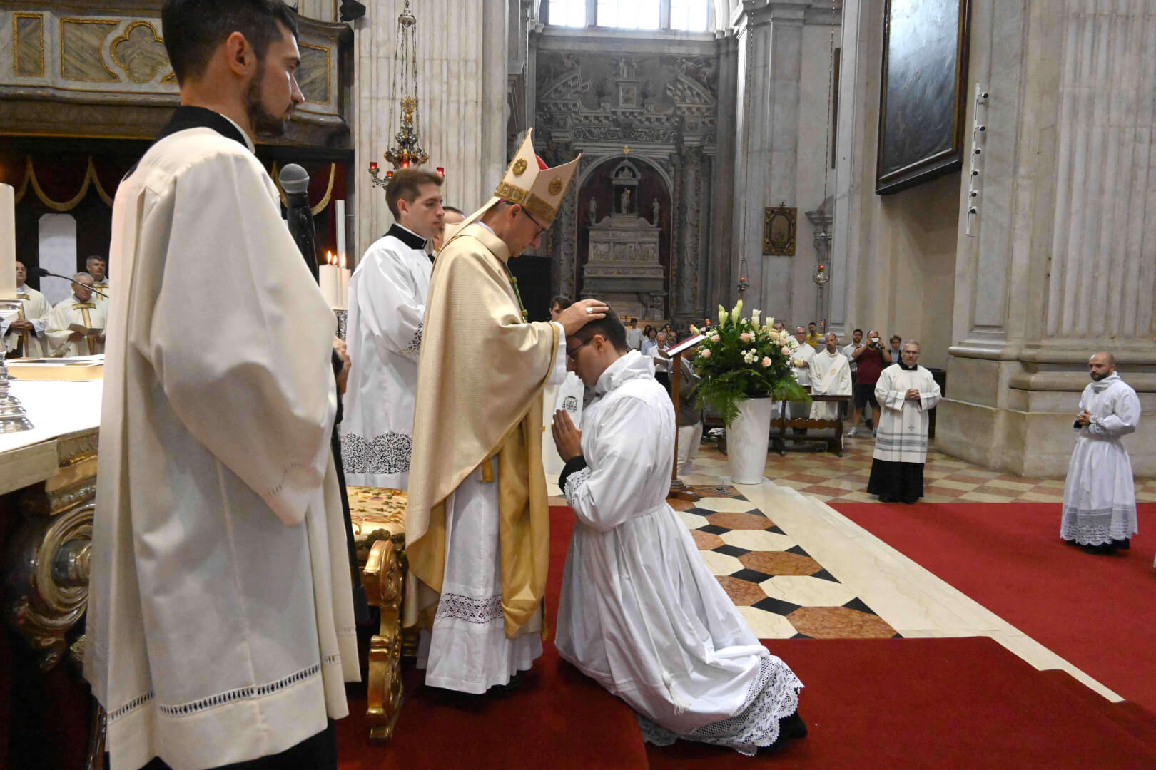 Mediante l’amore siate a servizio gli uni degli altri. Sabato 20 settembre, in Cattedrale, il vescovo Pierantonio ha ordinato sei nuovi diaconi: Andrea Coccoli (Divin Redentore); Giacomo Cottinelli (Lovere); Omar Scolari (Berzo Inferiore); Andrea Tonni (Nuvolera); fra Benedetto dell’Incarnazione (Benedetto Moser, Carmelitano Scalzo); fra Lorenzo dell’Annunciazione (Lorenzo Olivato, Carmelitano Scalzo)