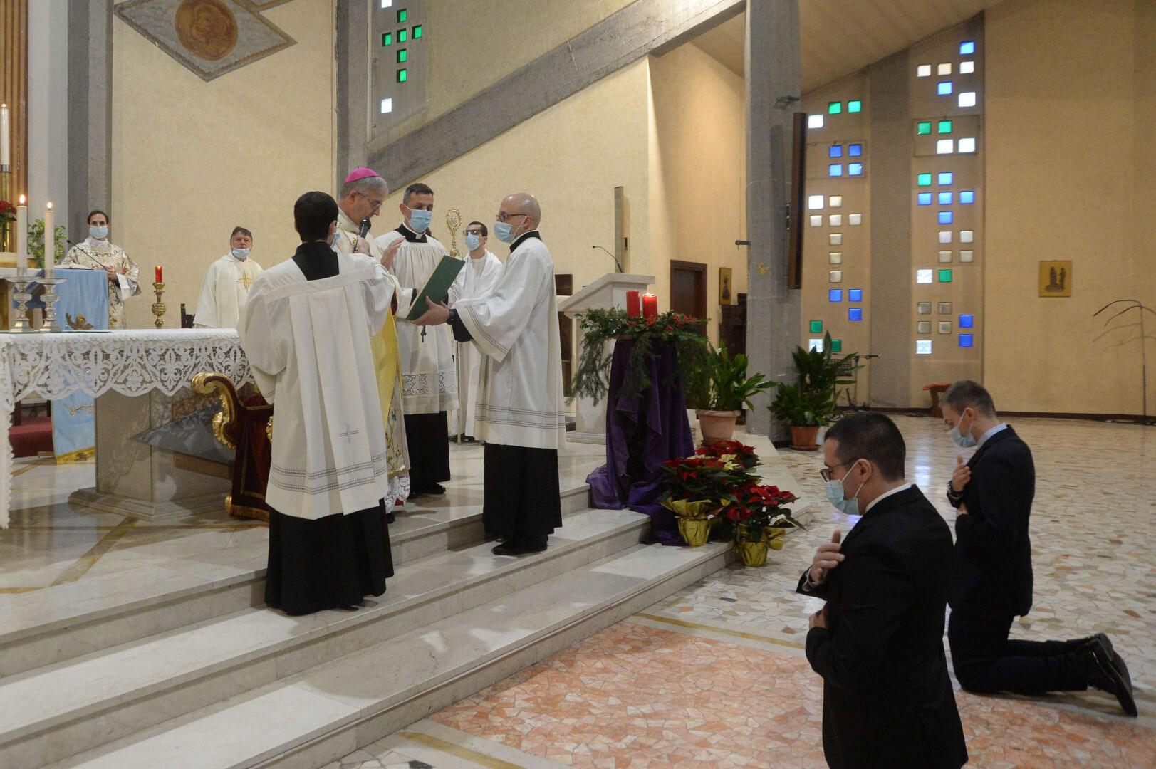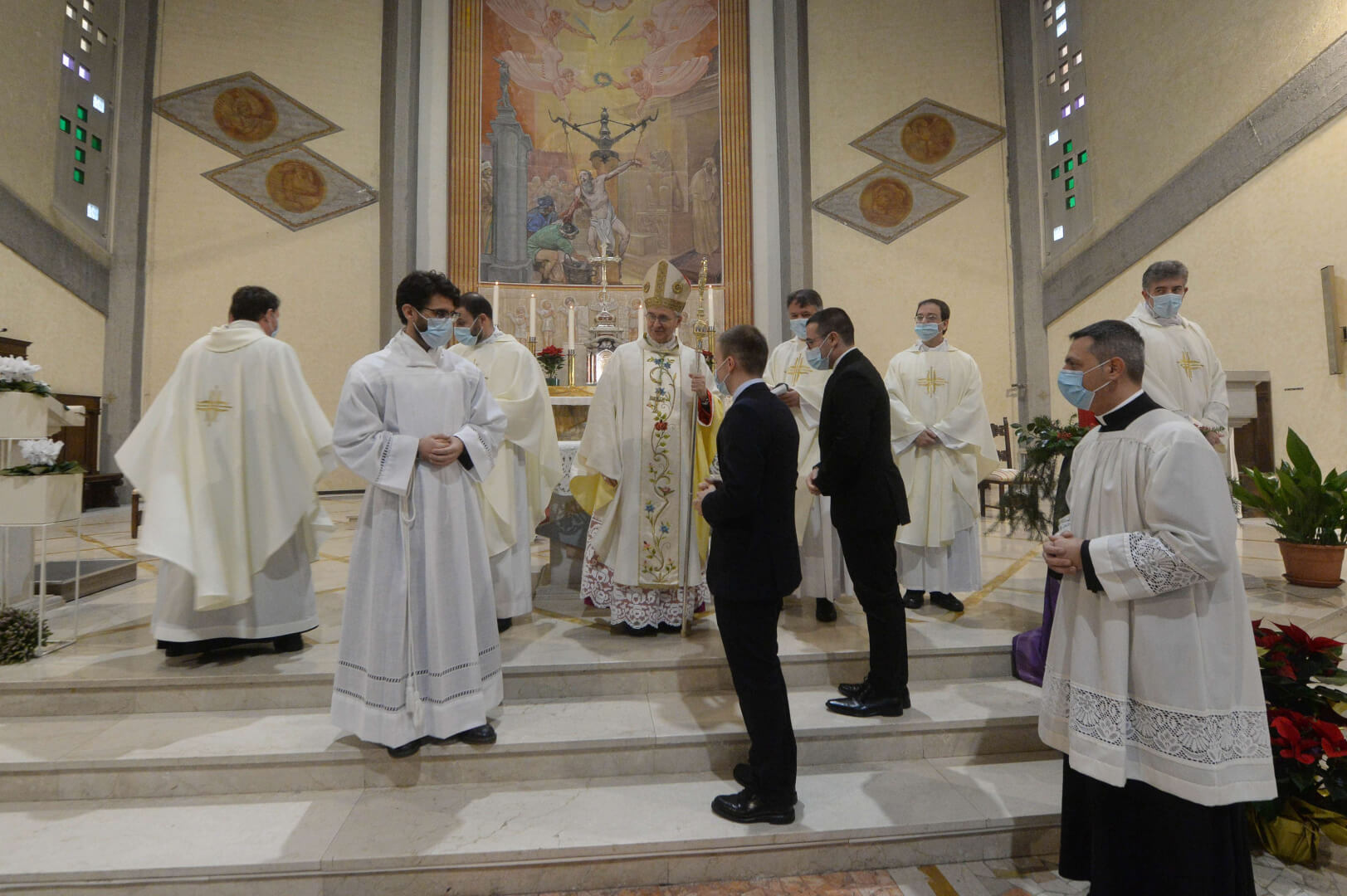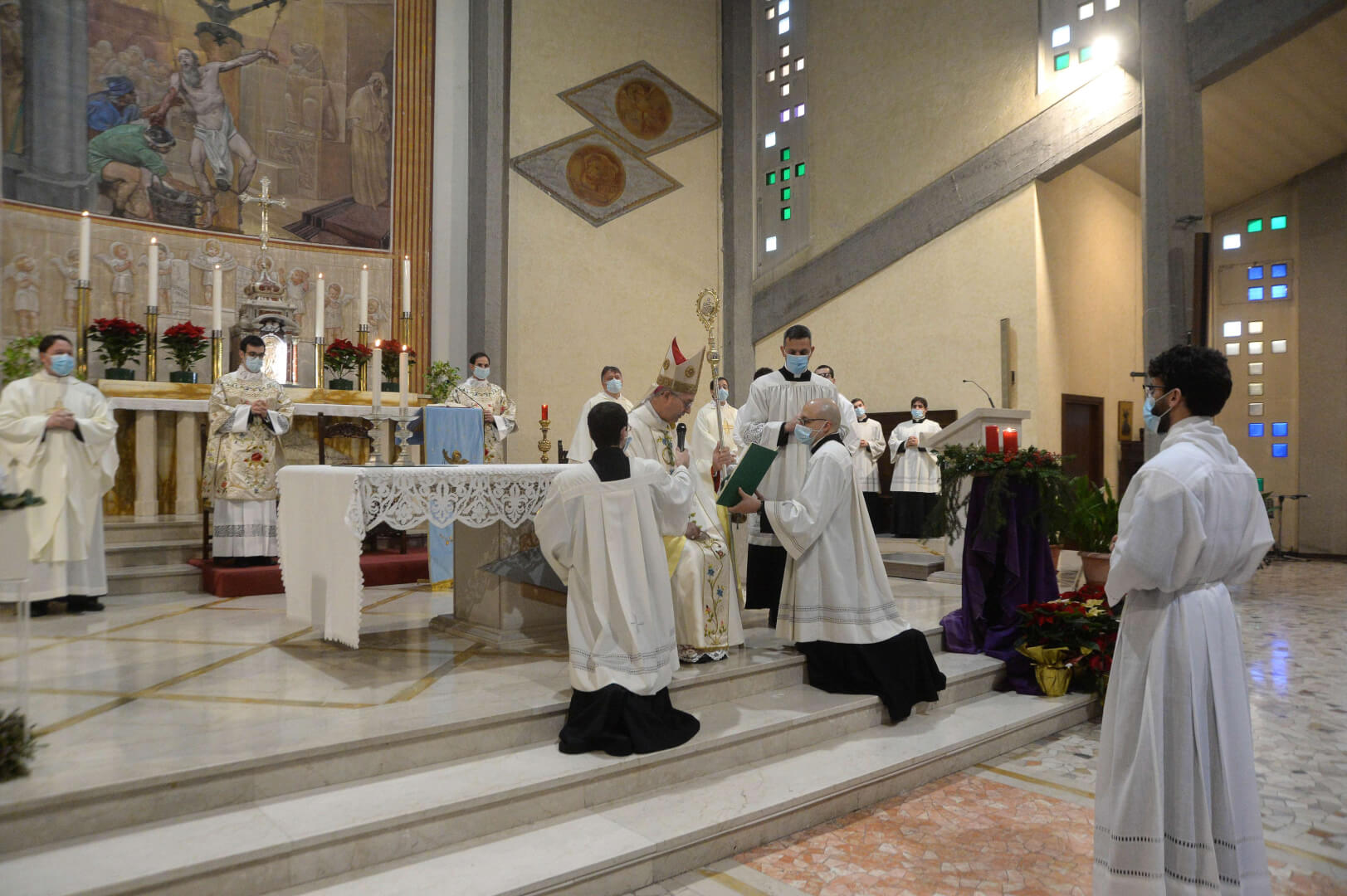 Il Vescovo ha celebrato la Santa Messa nella chiesa di San Bartolomeo in occasione dell'Immacolata, patrona del Seminario. Mons. Tremolada ha presieduto il rito di ammissione di Cristian Baiguera (Manerbio) e Andrea Coccoli (Divin Redentore, Brescia) tra i candidati al diaconato e al presbiterato e ha istituito ministro accolito Michele Ciapetti della parrocchia di Berlinghetto