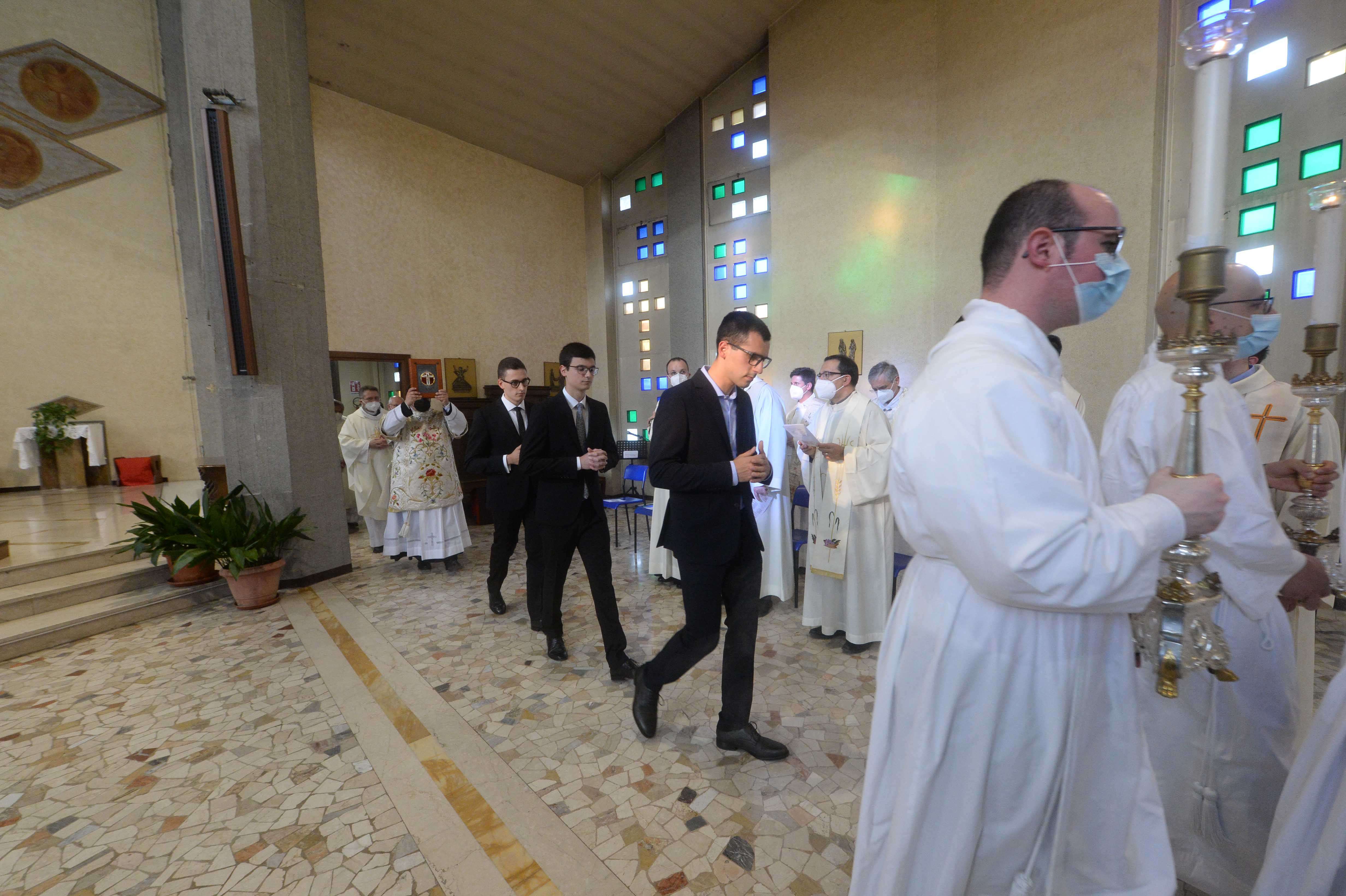 Nella chiesa di San Bartolomeo il Vescovo ha presieduto il rito di ammissione tra i candidati al diaconato e al presbiterato di Giacomo Cottinelli (Lovere), Omar Scolari (Berzo Inferiore) e Andrea Tonni (Nuvolera)