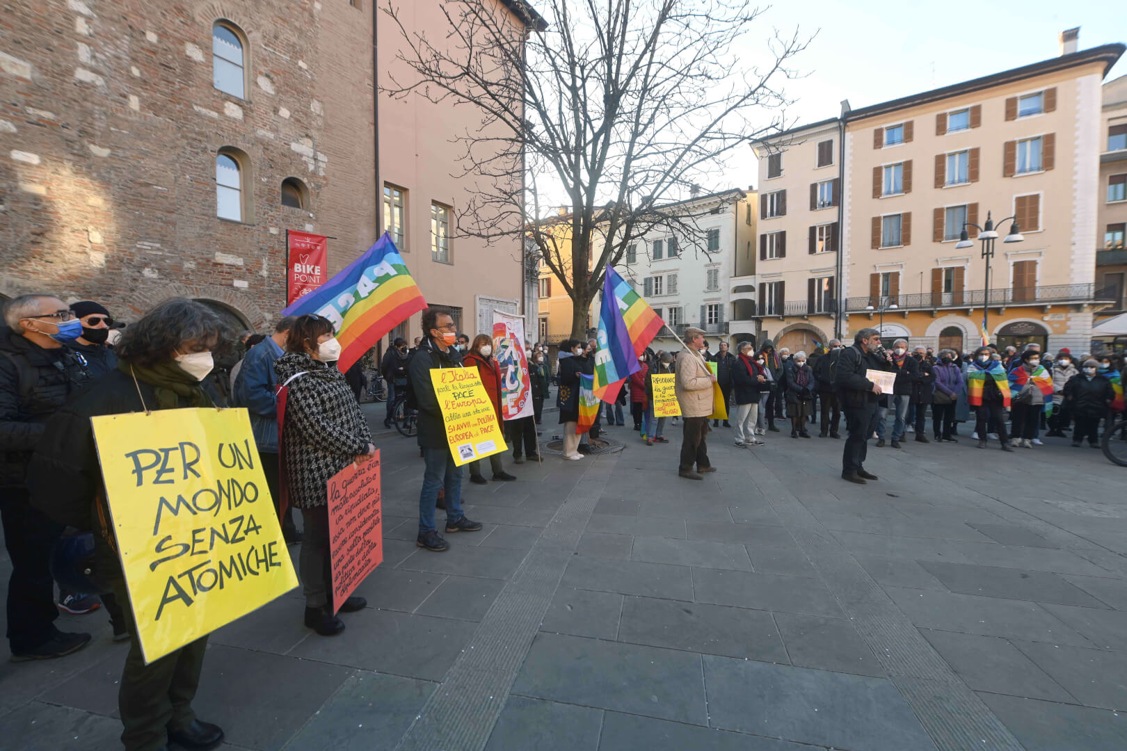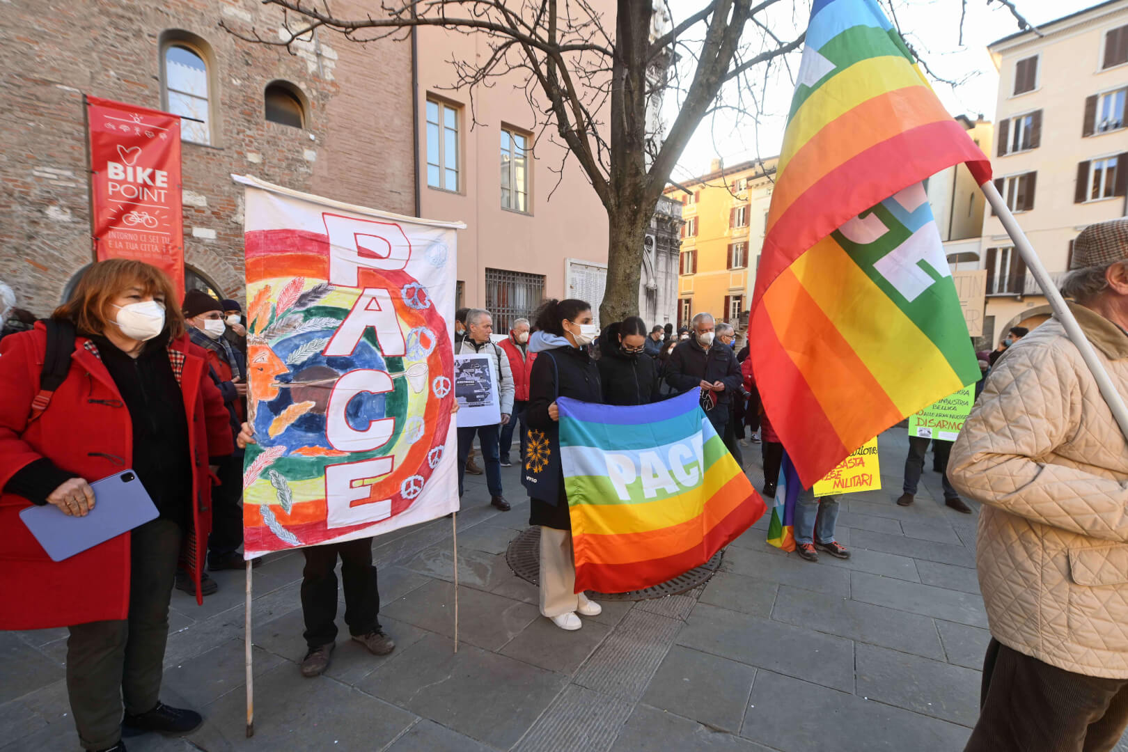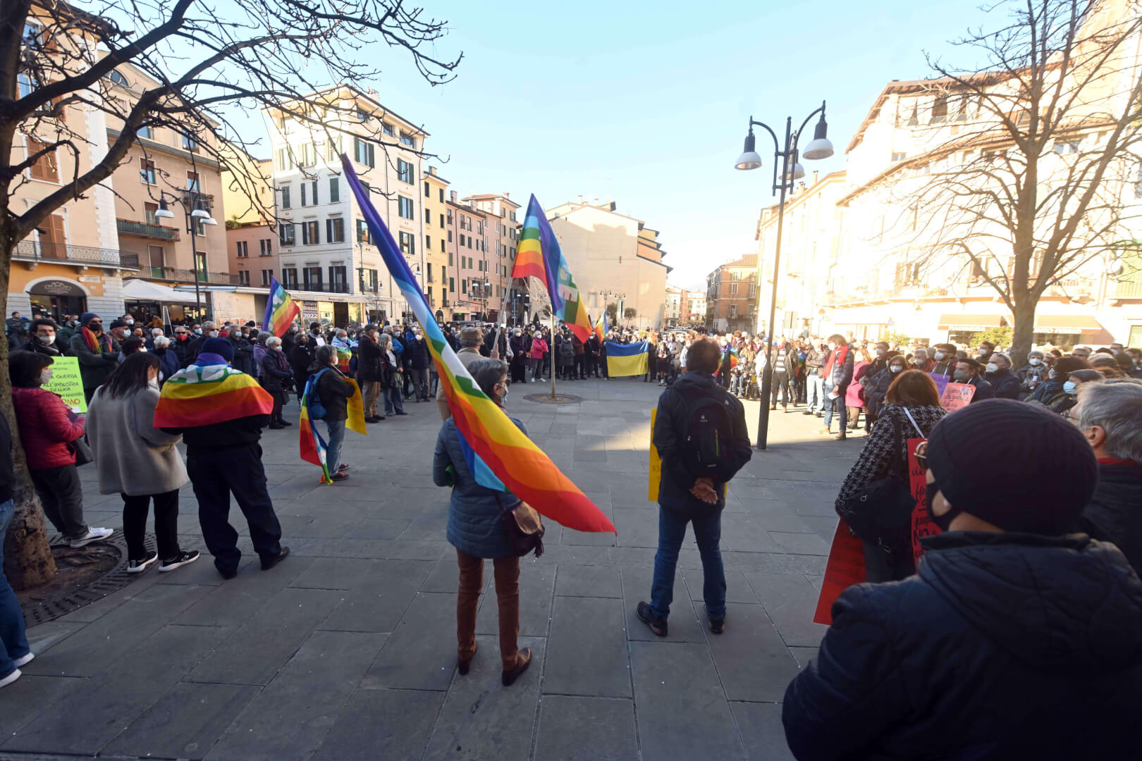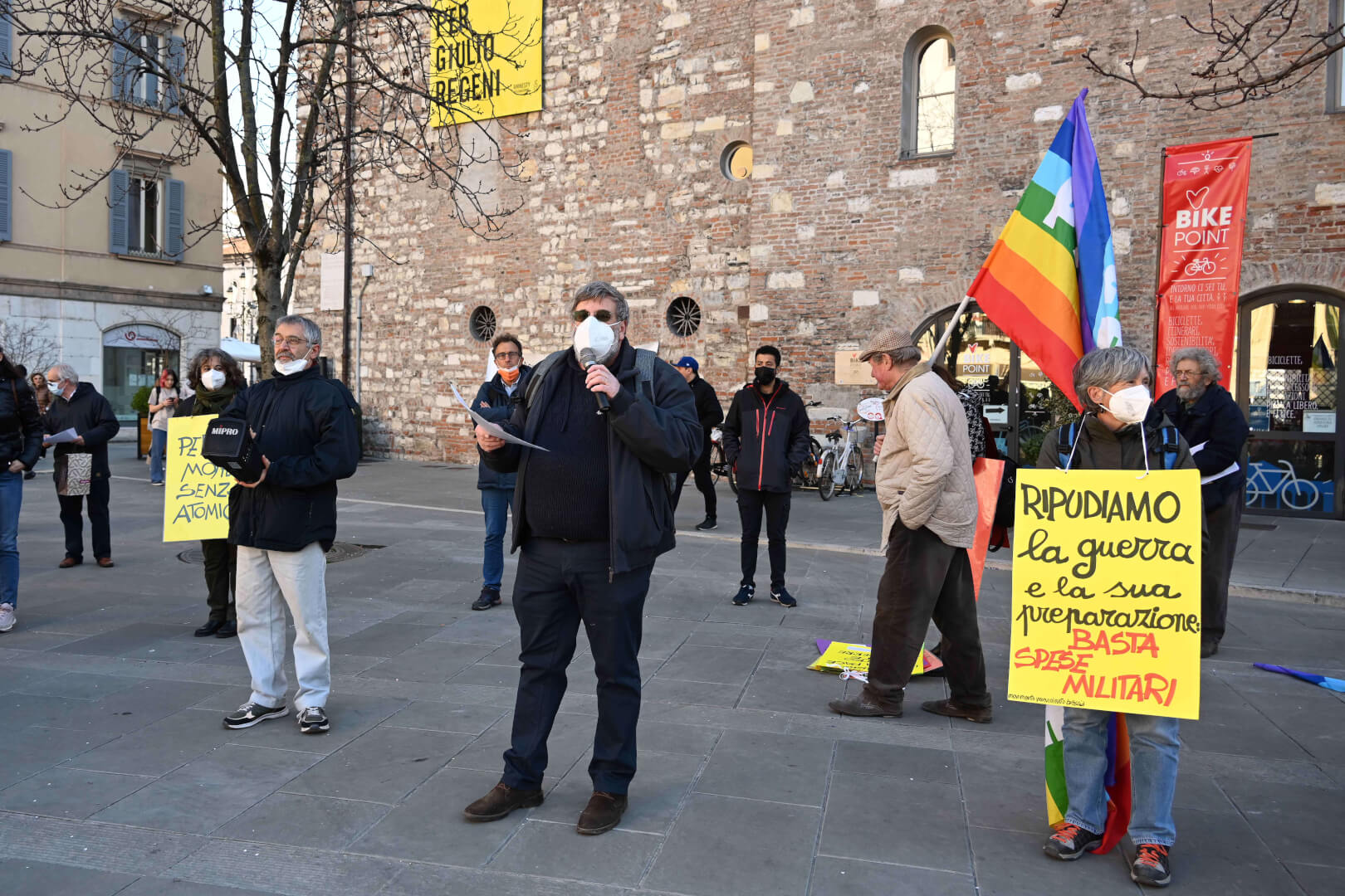 Associazioni e Movimenti in Largo Formentone per chiedere la pace in Ucraina: un'ora di silenzio per la pace contro il fragore della guerra. La regia del Movimento Nonviolento con Pax Christi, Movimento dei Focolari, Azione Cattolica, Banca Etica, Agesci Scout Brescia, Tavola della Pace Brescia Est, Opal, Fridays for Future, Missione Oggi, Libera, Arci e Acli