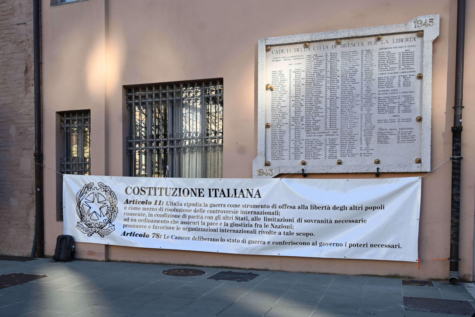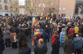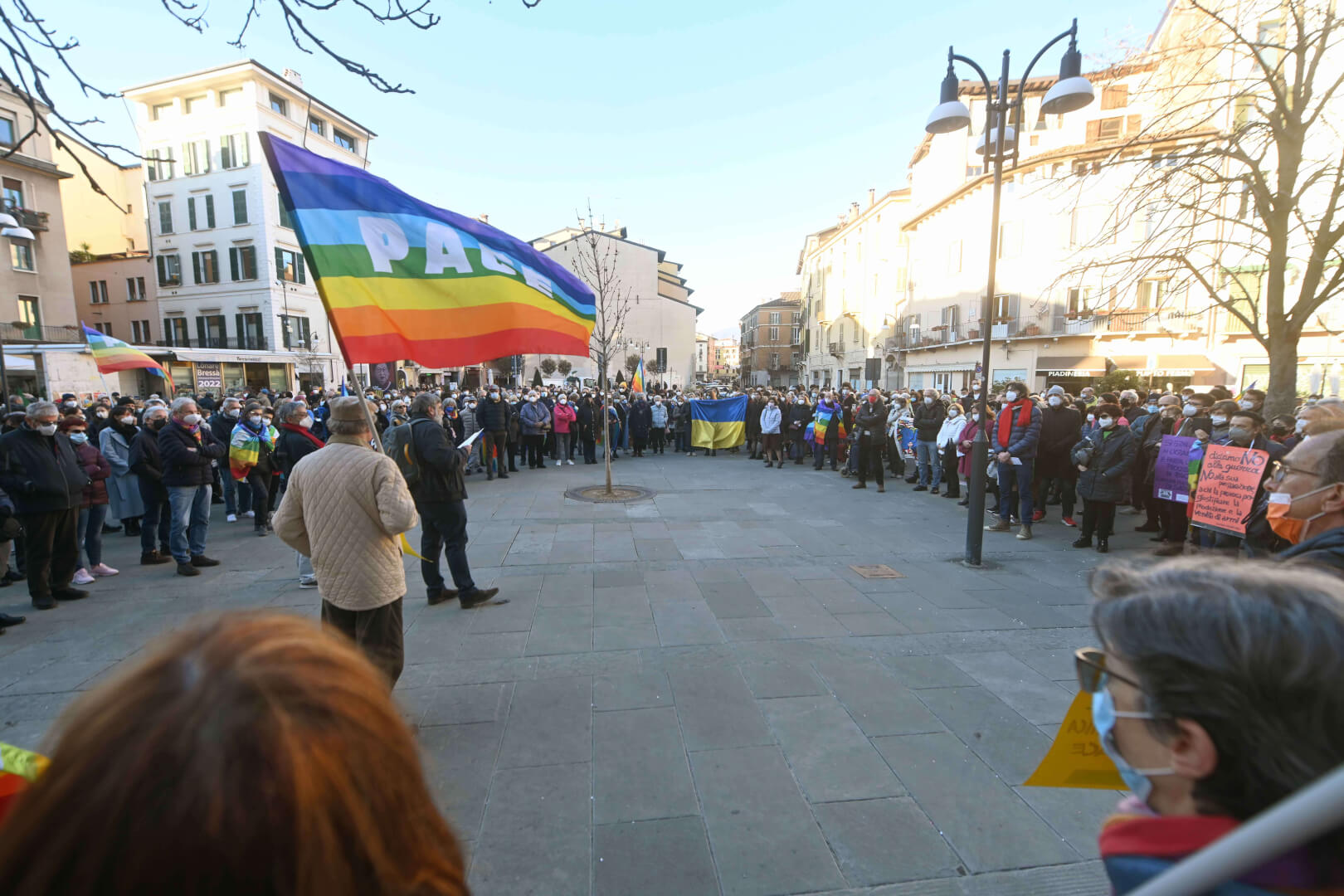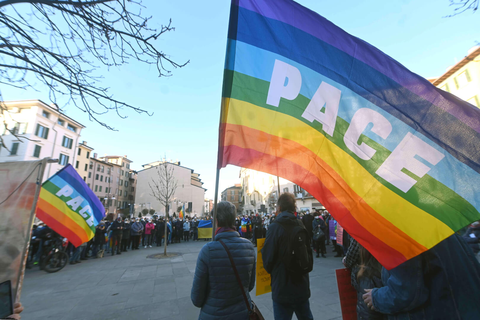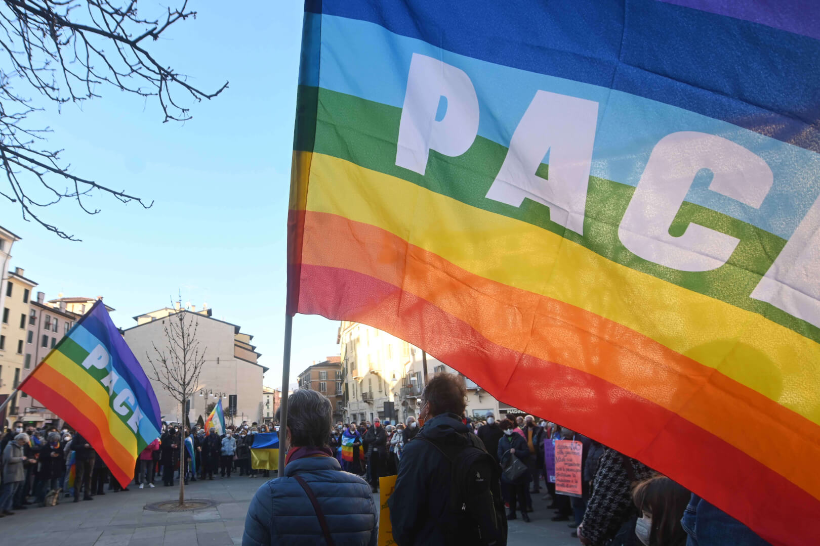 Associazioni e Movimenti in Largo Formentone per chiedere la pace in Ucraina: un'ora di silenzio per la pace contro il fragore della guerra. La regia del Movimento Nonviolento con Pax Christi, Movimento dei Focolari, Azione Cattolica, Banca Etica, Agesci Scout Brescia, Tavola della Pace Brescia Est, Opal, Fridays for Future, Missione Oggi, Libera, Arci e Acli