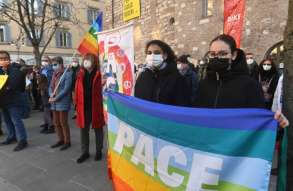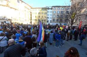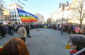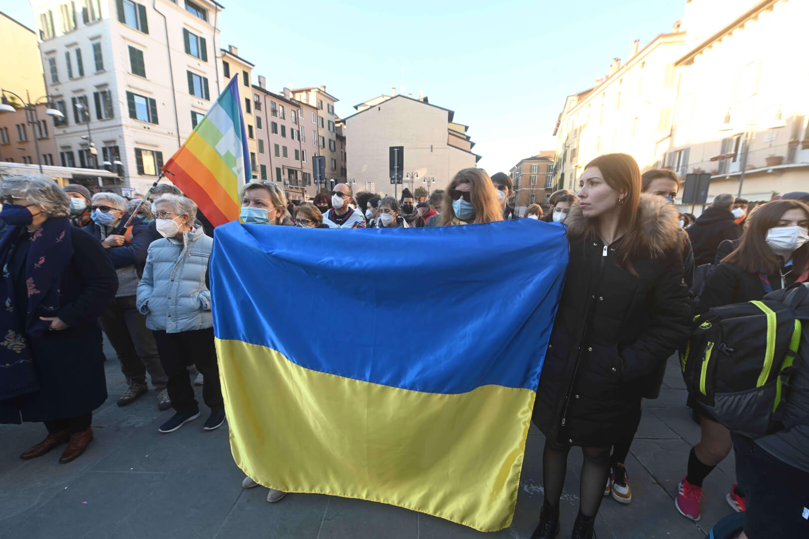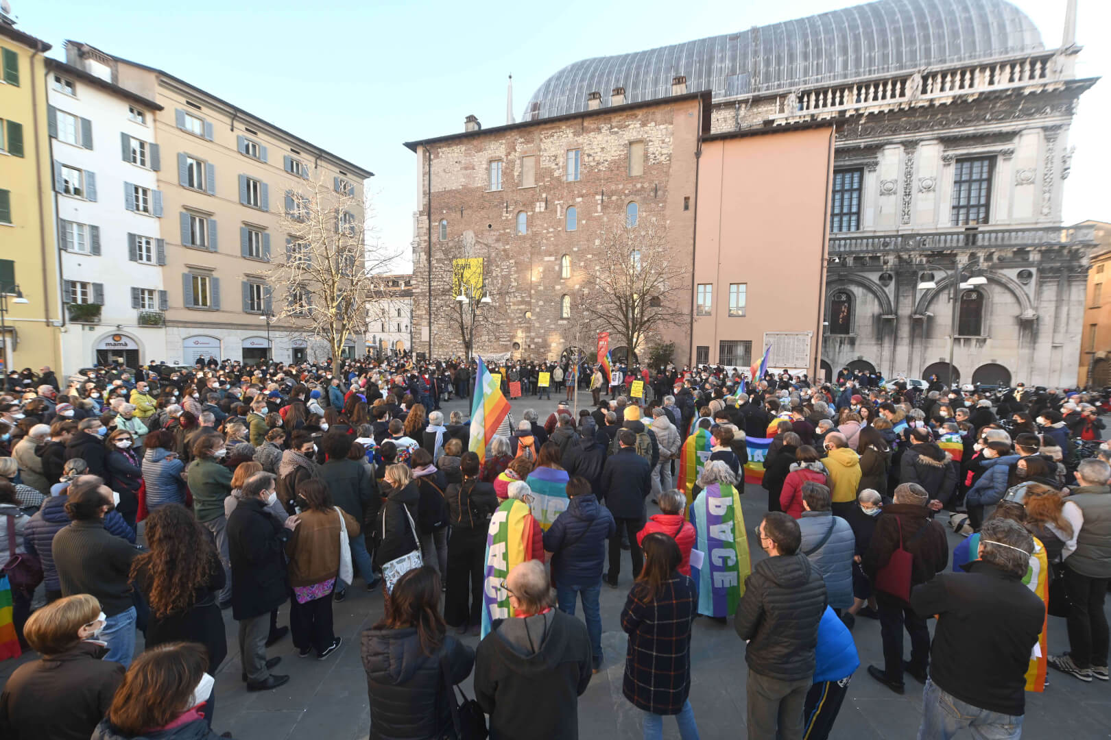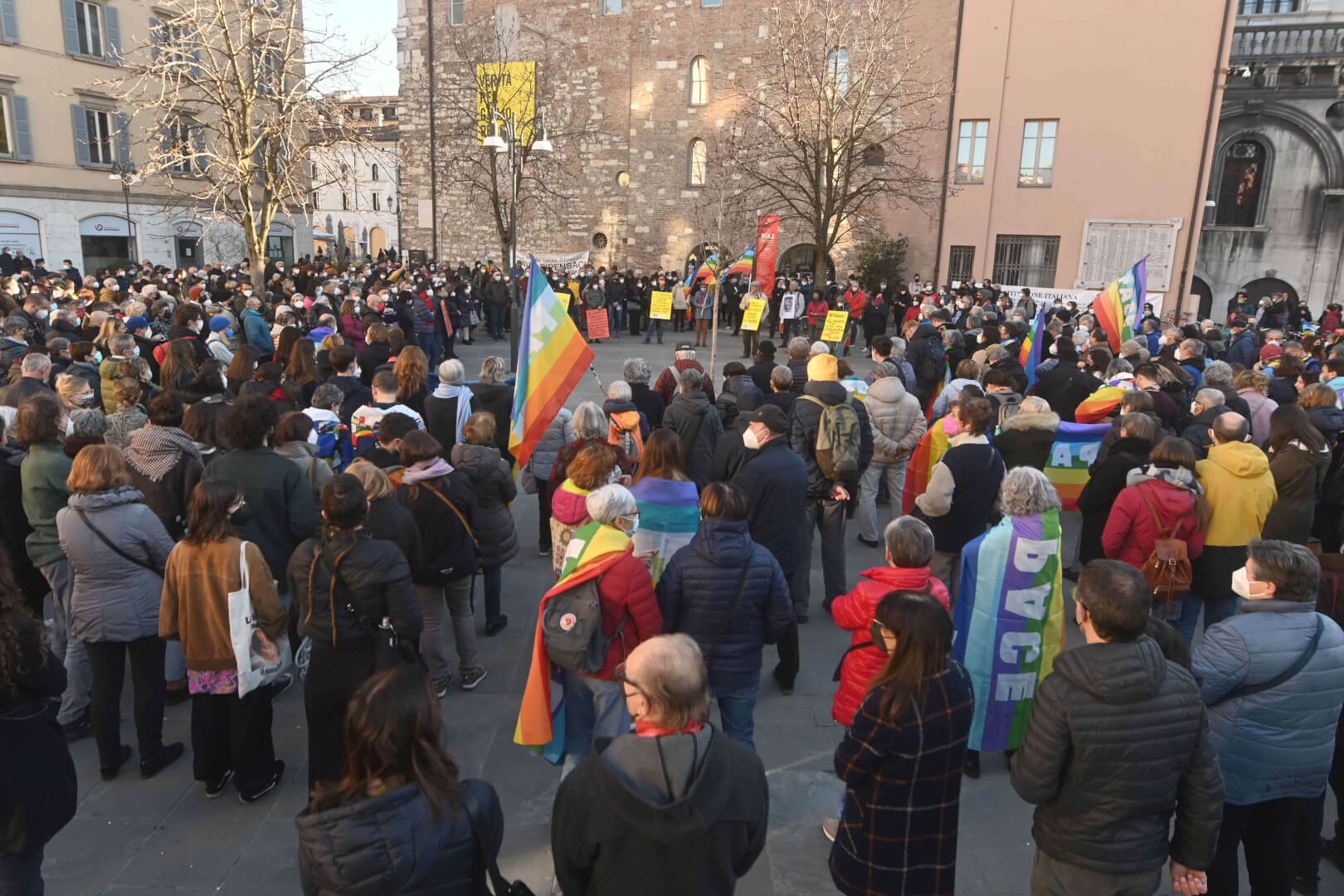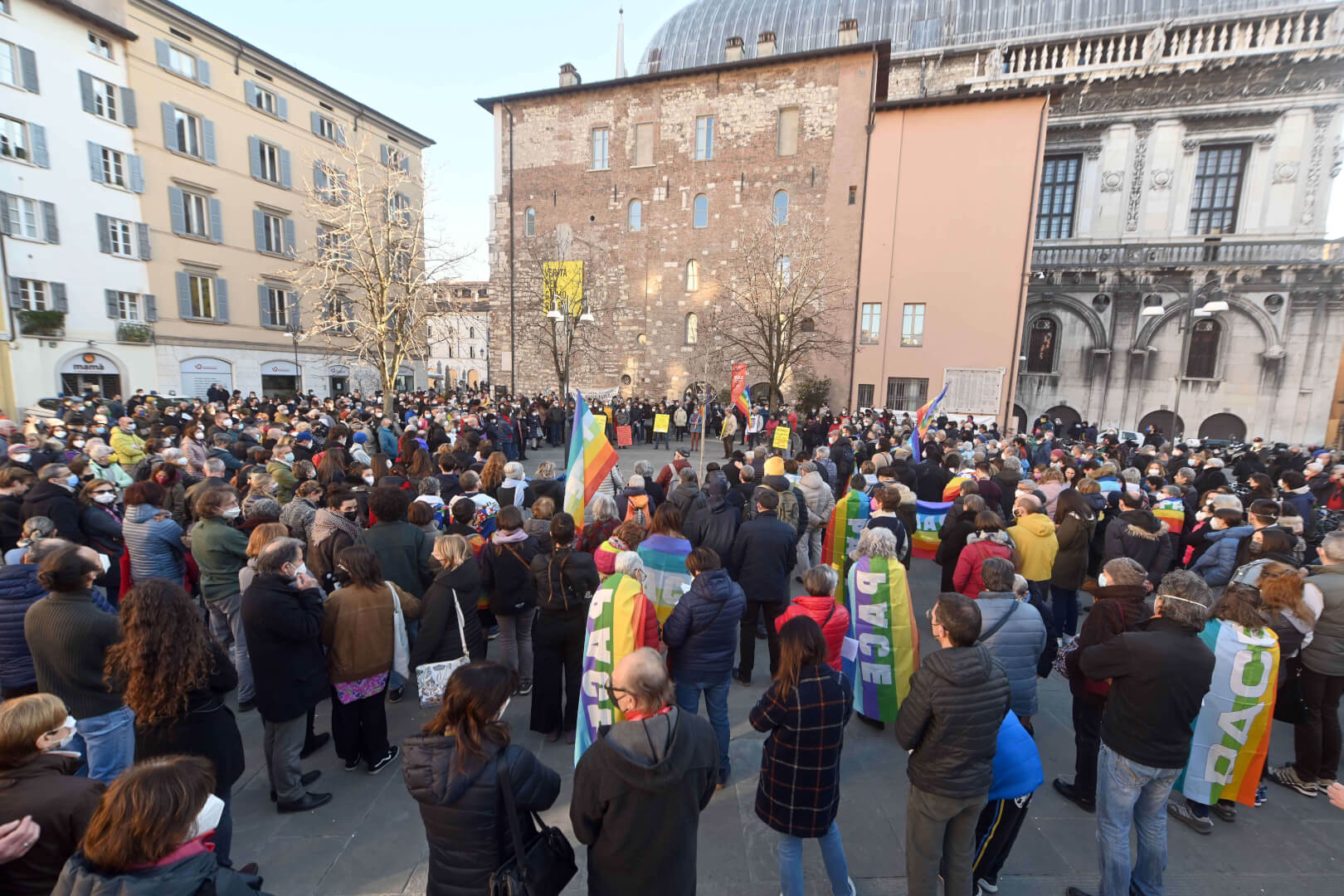 Associazioni e Movimenti in Largo Formentone per chiedere la pace in Ucraina: un'ora di silenzio per la pace contro il fragore della guerra. La regia del Movimento Nonviolento con Pax Christi, Movimento dei Focolari, Azione Cattolica, Banca Etica, Agesci Scout Brescia, Tavola della Pace Brescia Est, Opal, Fridays for Future, Missione Oggi, Libera, Arci e Acli