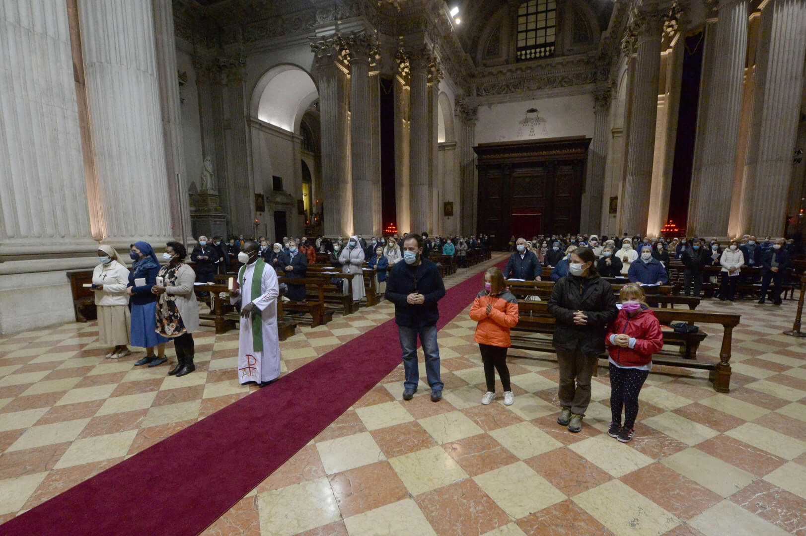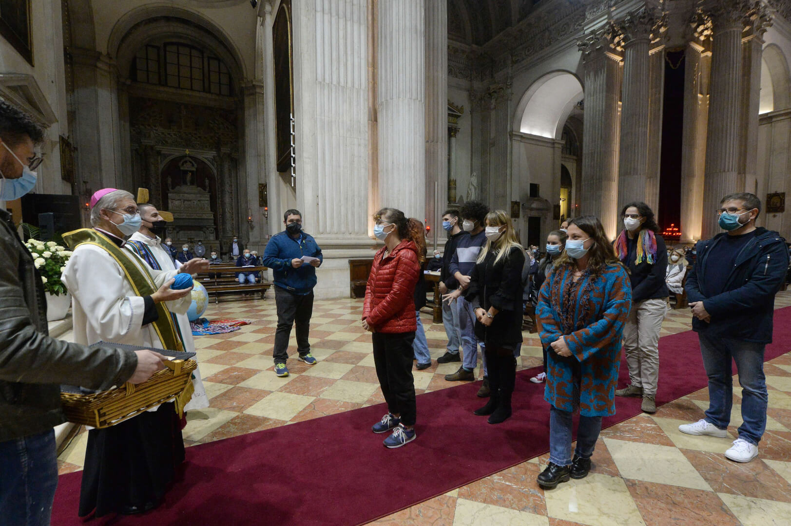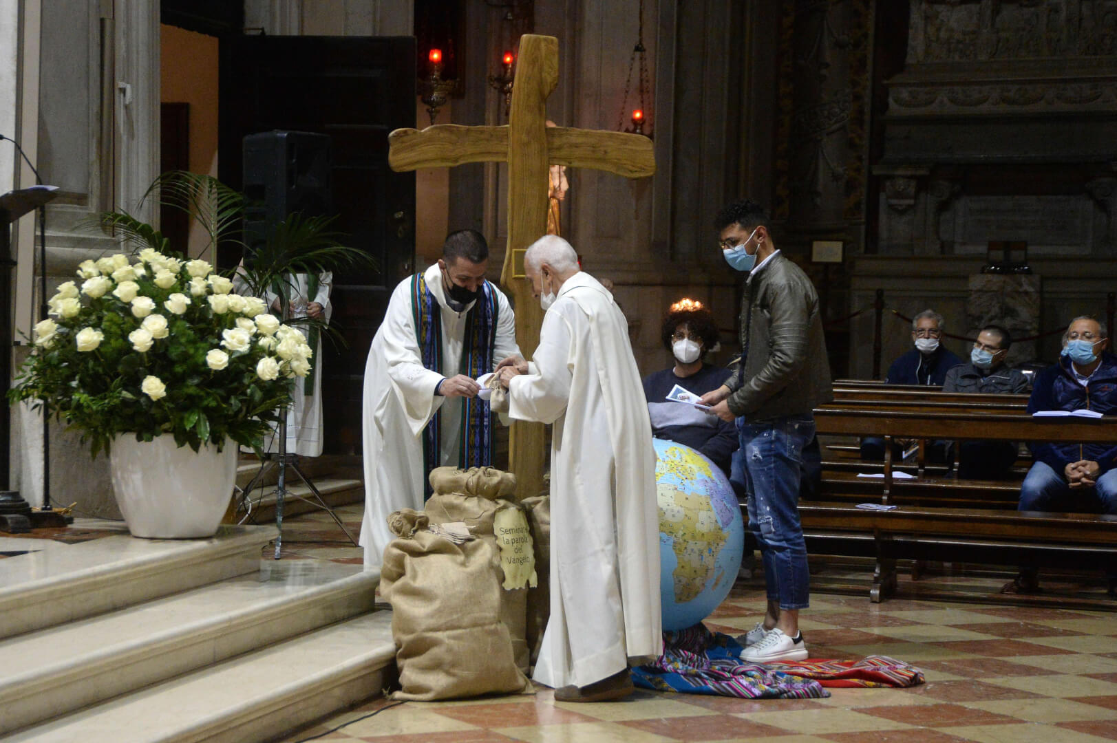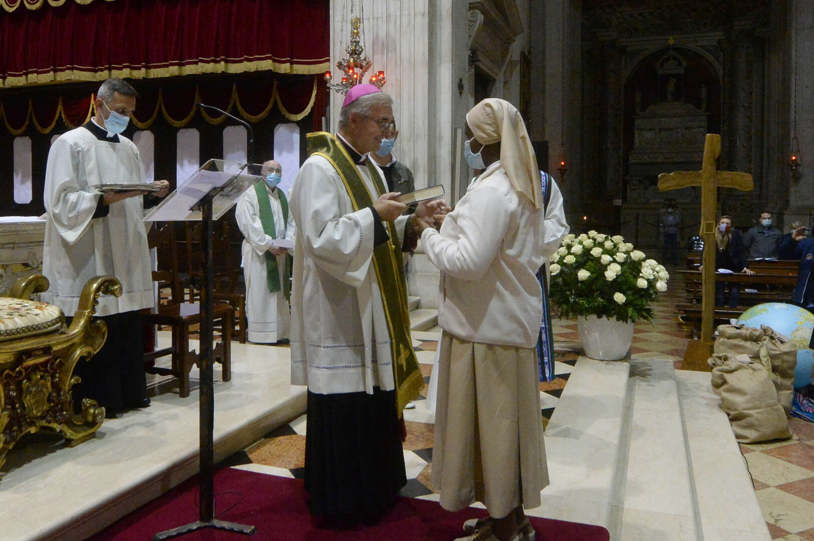 Nella veglia missionaria in Cattedrale guidata dal vescovo Tremolada è intervenuto anche mons. Christian Carlassare, vescovo di Rumbek in Sud Sudan. Durante la preghiera è stato consegnato il crocifisso ai missionari in partenza