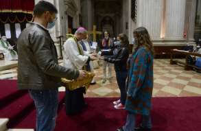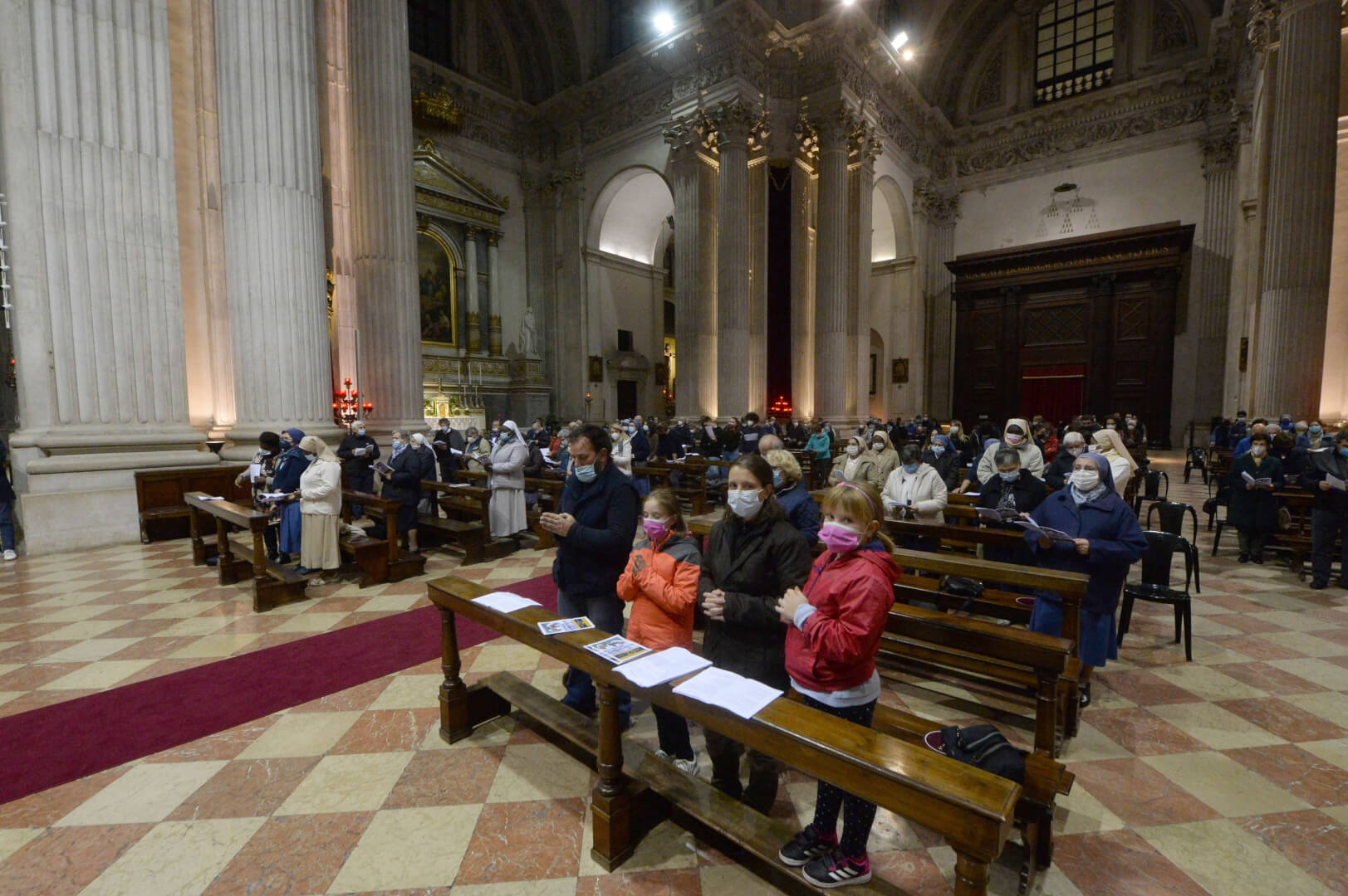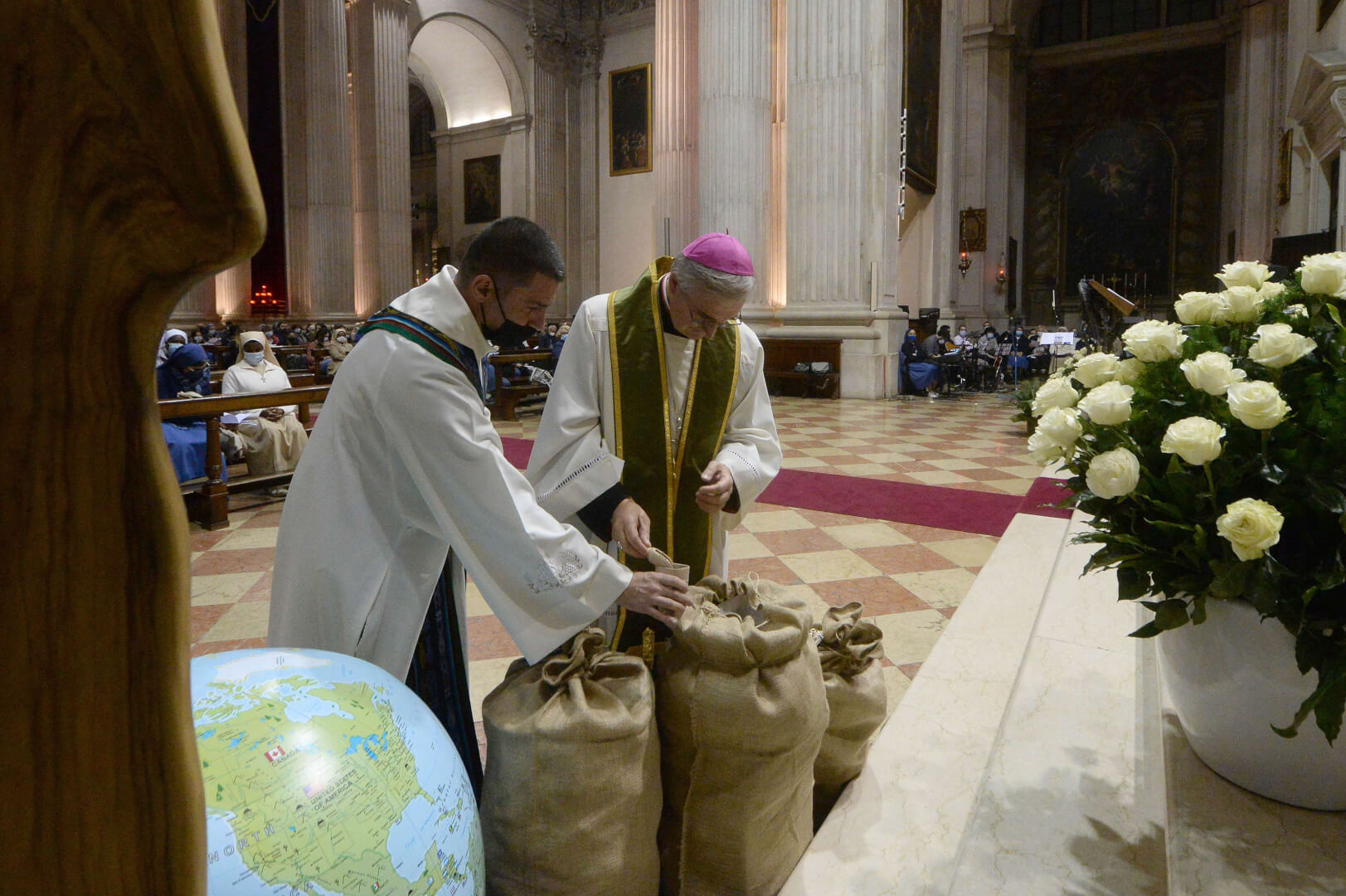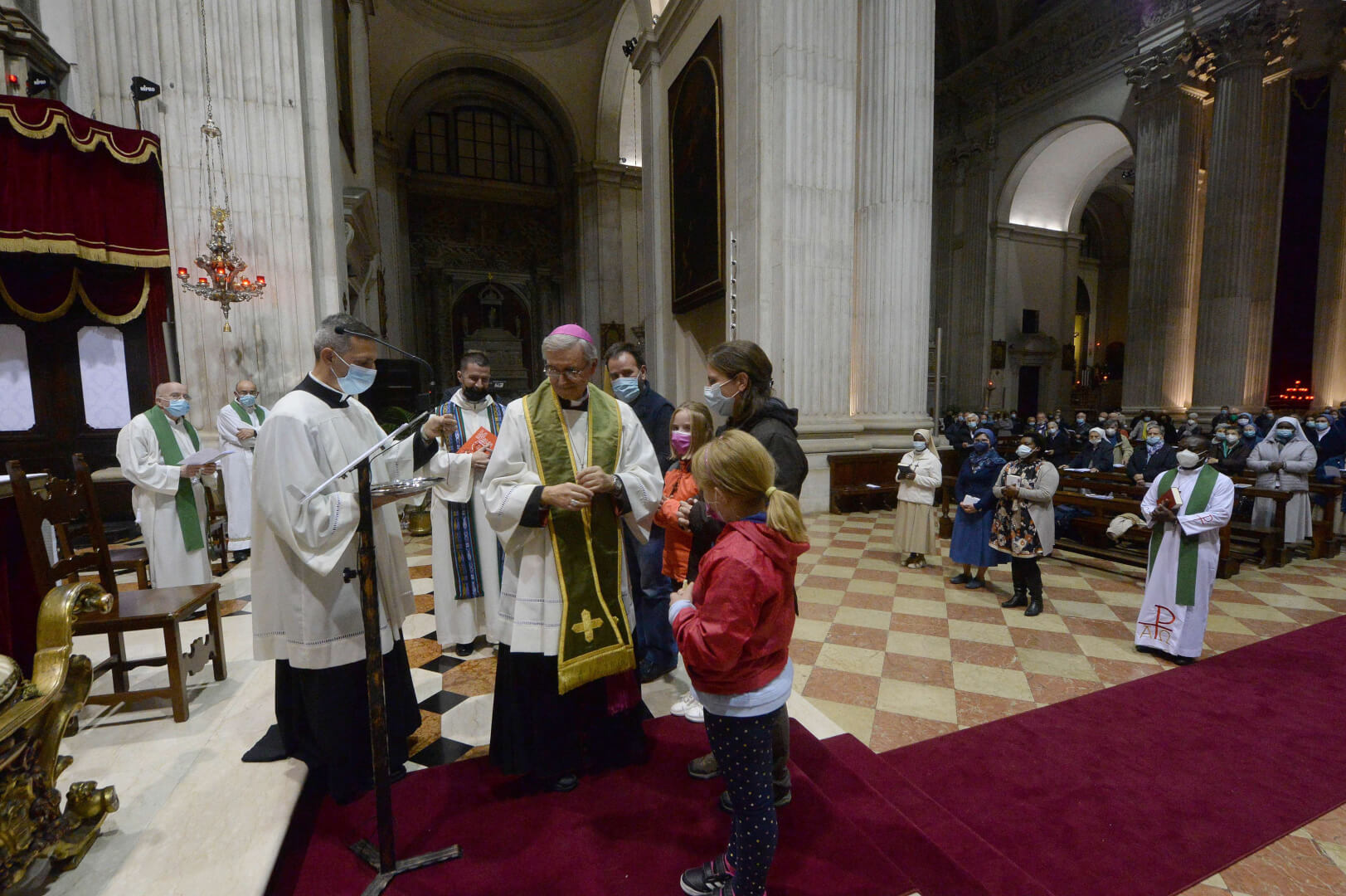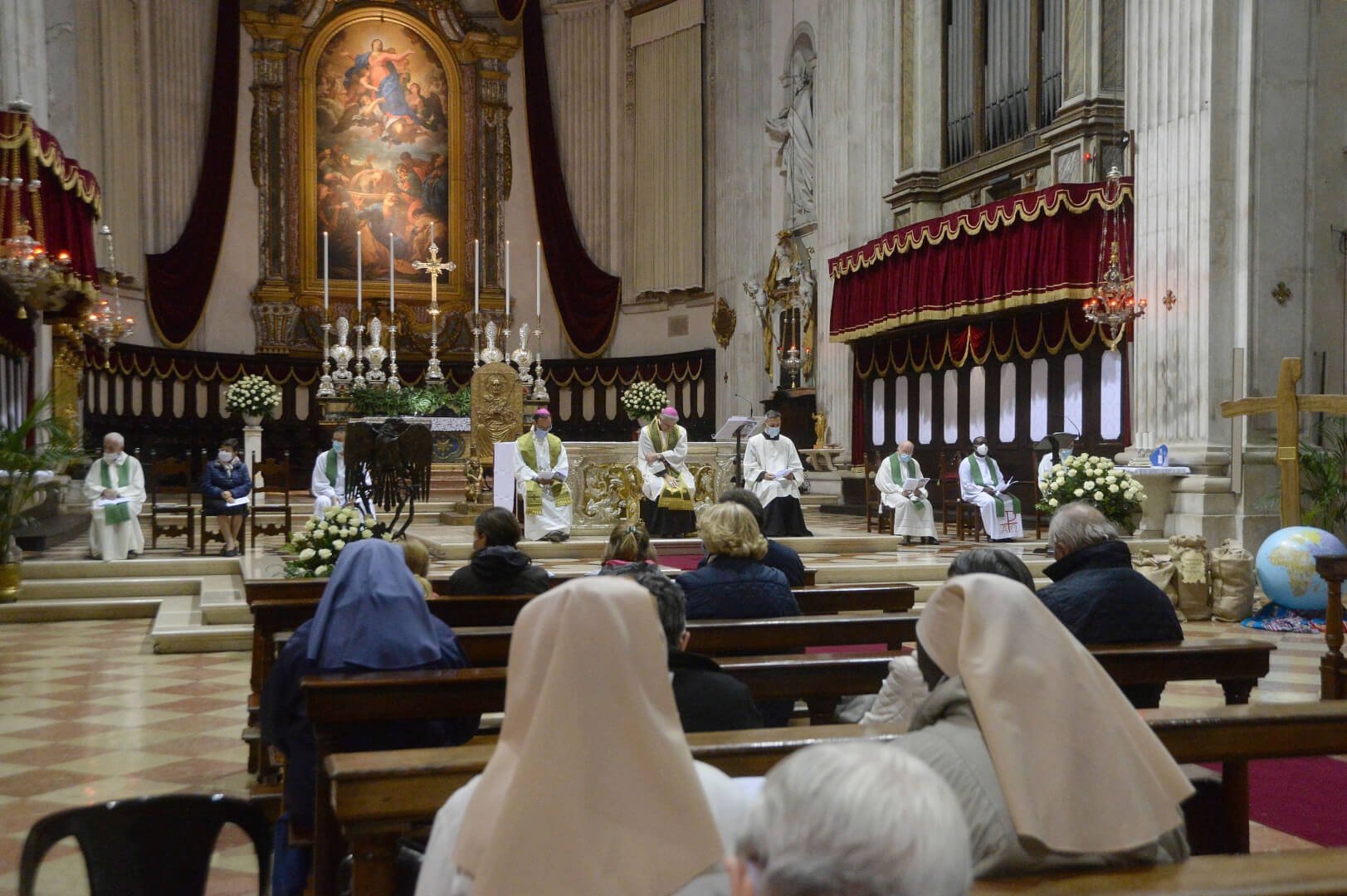 Nella veglia missionaria in Cattedrale guidata dal vescovo Tremolada è intervenuto anche mons. Christian Carlassare, vescovo di Rumbek in Sud Sudan. Durante la preghiera è stato consegnato il crocifisso ai missionari in partenza