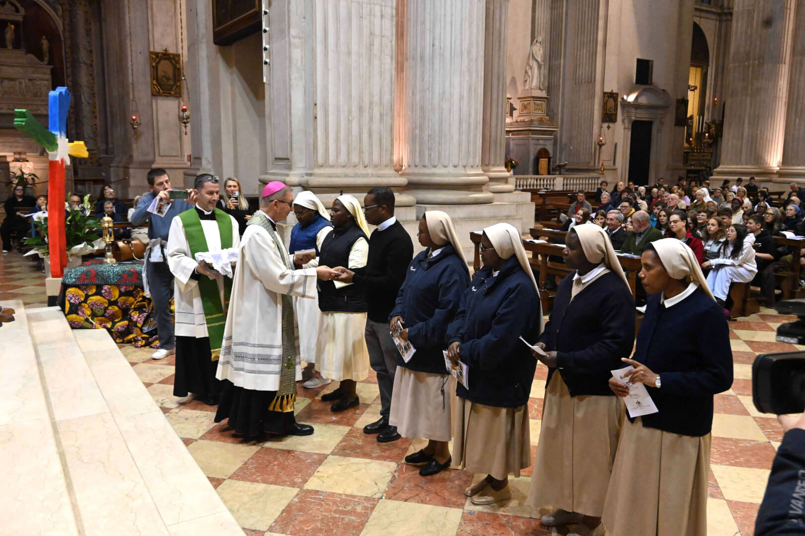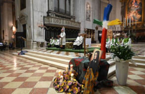 Venerdì 17 ottobre, in Cattedrale, il vescovo Pierantonio ha presieduto la veglia missionaria con la consegna del crocifisso a Flavia Gabanetti, originaria di Lumezzane e in partenza come laica fidei donum della Diocesi di Brescia in Perù, in servizio nella diocesi di Trujillo presso la comunità della Casa della Gioventù. Sono stati accolti anche i religiosi e le religiose di origine straniera e ora in servizio pastorale in Italia e nella nostra diocesi: è stato consegnato loro il Vangelo