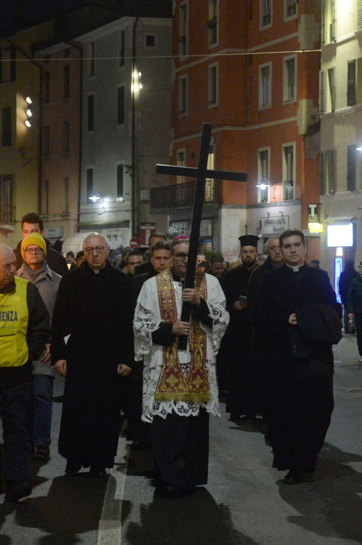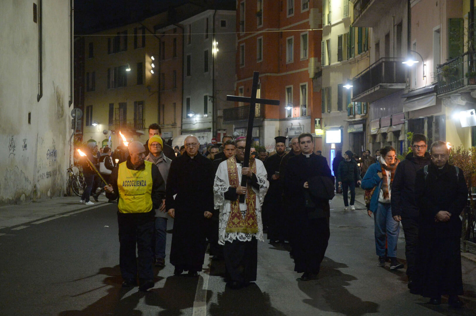 Nella serata di mercoledì 27 marzo si è svolta la Via Crucis cittadina dalla chiesa di San Faustino alla chiesa di San Pietro in Oliveto in Castello. Nell'Anno della Preghiera, le letture delle 14 stazioni hanno ripreso le meditazioni di Papa Francesco sull'importanza di pregare