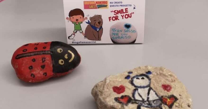 Grazie alla collaborazione di Abio, i bambini del grest di Manerbio hanno realizzato dei sassi colorati, che sono stati distribuiti nei luoghi più significativi del paese. “L’iniziativa ha permesso ai ragazzi di portare un sorriso ai commercianti, che nell’ultimo anno non hanno avuto una vita economica facile – spiega don Matteo Busi –. Abio ha anche regalato ai bambini diversi gadget per far conoscere meglio la propria realtà, in pieno spirito di scambio di doni”. I bambini coinvolti sono 110, tutti delle elementari, che, dipingendo sulla loro pietra un animale, un viso sorridente o un colore vivace, hanno portato lo spirito del grest agli abitanti. “I proprietari dei negozi e delle attività − racconta Luca Baiguera, uno degli animatori che ha seguito i ragazzi nella loro ‘opera di distribuzione di felicità’ − erano molto contenti dei regali preparati per loro e quasi tutti hanno subito esposto il sasso ricevuto nelle loro vetrine”.