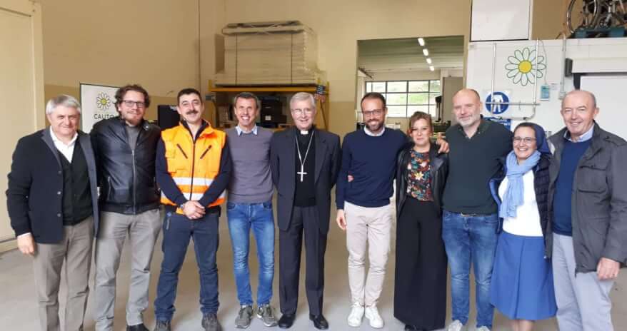 Il Vescovo ha attraversato i numerosi luoghi di lavoro salutando gli oltre 500 lavoratori, di cui il 42% assunti in percorso di inserimento lavorativo. Il Presidente Alessandro Zani e il Direttore generale Michele Pasinetti, hanno potuto raccontare le tante attività con cui la Rete CAUTO quotidianamente interpreta la propria ragion d’essere