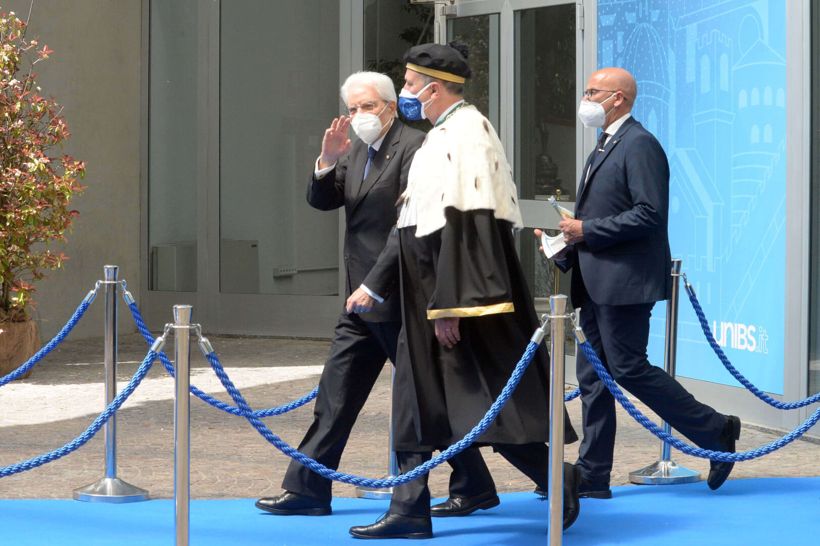 La visita del Presidente della Repubblica a Brescia: prima l'incontro alla Facoltà di medicina, poi la visita al Capitolium e alla Vittoria Alata, e poi il passaggio all'hub vaccinale di via Caprera
