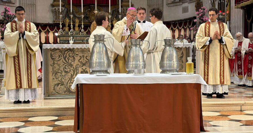 E' bello riunirci insieme in Cattedrale per questa solenne celebrazione eucaristica, nella quale consacreremo i santi oli da offrire alle nostre comunità cristiane per la celebrazione dei Sacramenti. È questa un’occasione attesa, nella quale rinnovare il proposito espresso da ognuno di noi al momento della nostra ordinazione sacramentale, proposito che ci ha resi per grazia ministri di Cristo.
