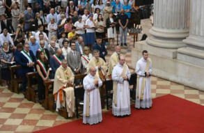 Vi affidiamo alla protezione della Beata Vergine Maria e a lei chiediamo di custodirvi in questa pace, insieme con persone che vi sono care e con le comunità cui sarete inviati. Per intercessione di colei che è Madre della Chiesa, possiate essere veri ministri dell’alleanza nuova ed eterna inaugurata dal Signore Gesù, su cui poggia salda per tutti la speranza che non delude.