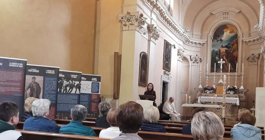 La mostra è stata esposta nella chiesa di San Bartolomeo dove 8 pannelli in un climax di immagini hanno narrato i momenti salienti della vita di Frassati avvalendosi anche di documenti rari del Beato, come quel biglietto scarabocchiato sul letto di morte: “Le iniezioni sono di Converso. La polizza è di Sappa, rinnovala tu a mio nome.” Un gesto piccolo, immenso, che racconta di un giovane già santo nello spirito, che anche morente pensava a “quei poveri” affidati a lui dalla Società di San Vincenzo De Paoli. L’evento è stato arricchito con altri 8 pannelli della mostra “Apostolo di Internet” dedicata alla vita di Carlo Acutis e da lui stesso ideata, progettata e realizzata sulle apparizioni della Madonna. Il racconto di due giovani, vissuti in epoche diverse, ma accomunati dal grande amore per Gesù è diventata così un mezzo per mostrare il volto bello e giovane della Chiesa.