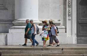 Alcune immagini della città, alle prese con la calura estiva, che accoglie i turisti