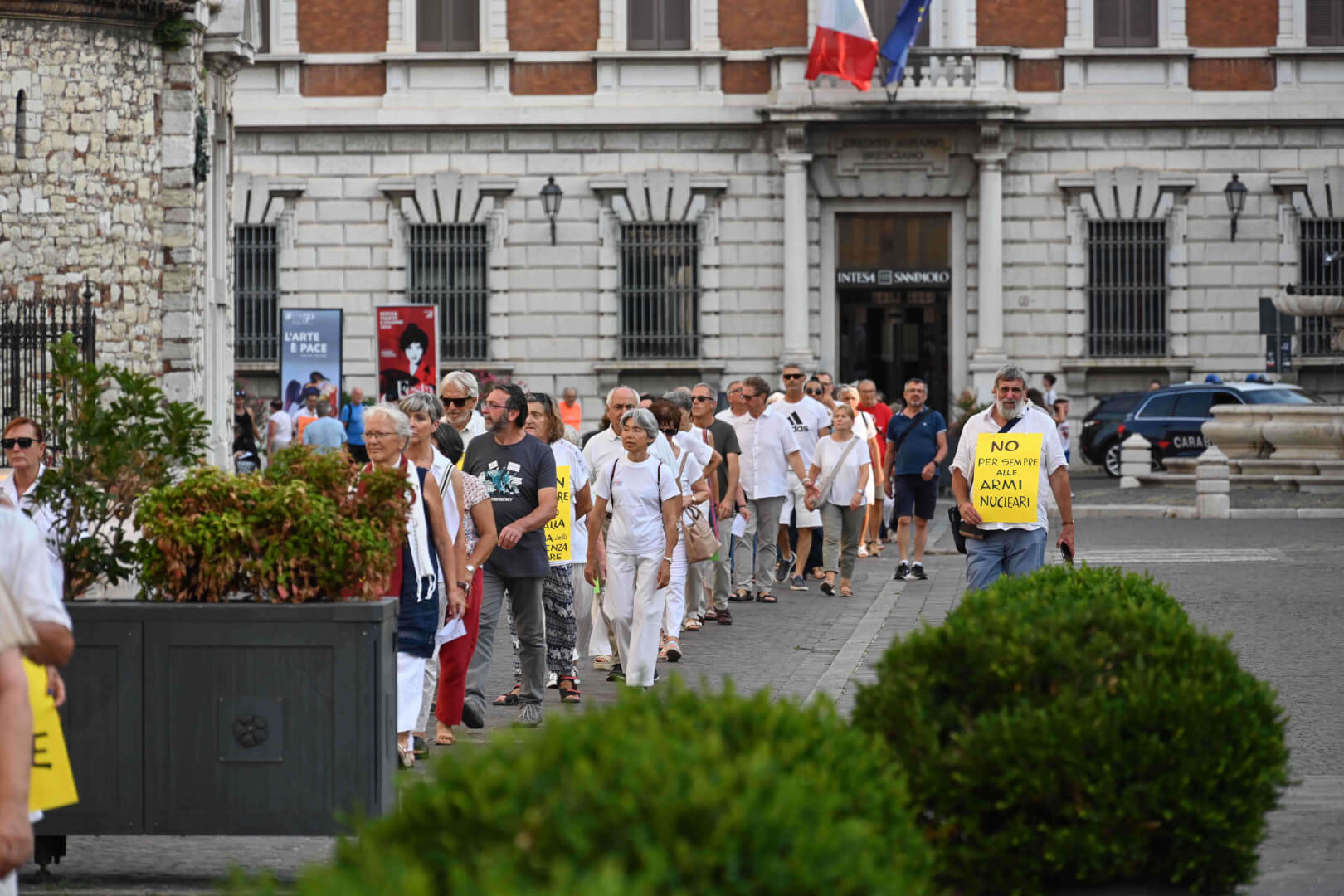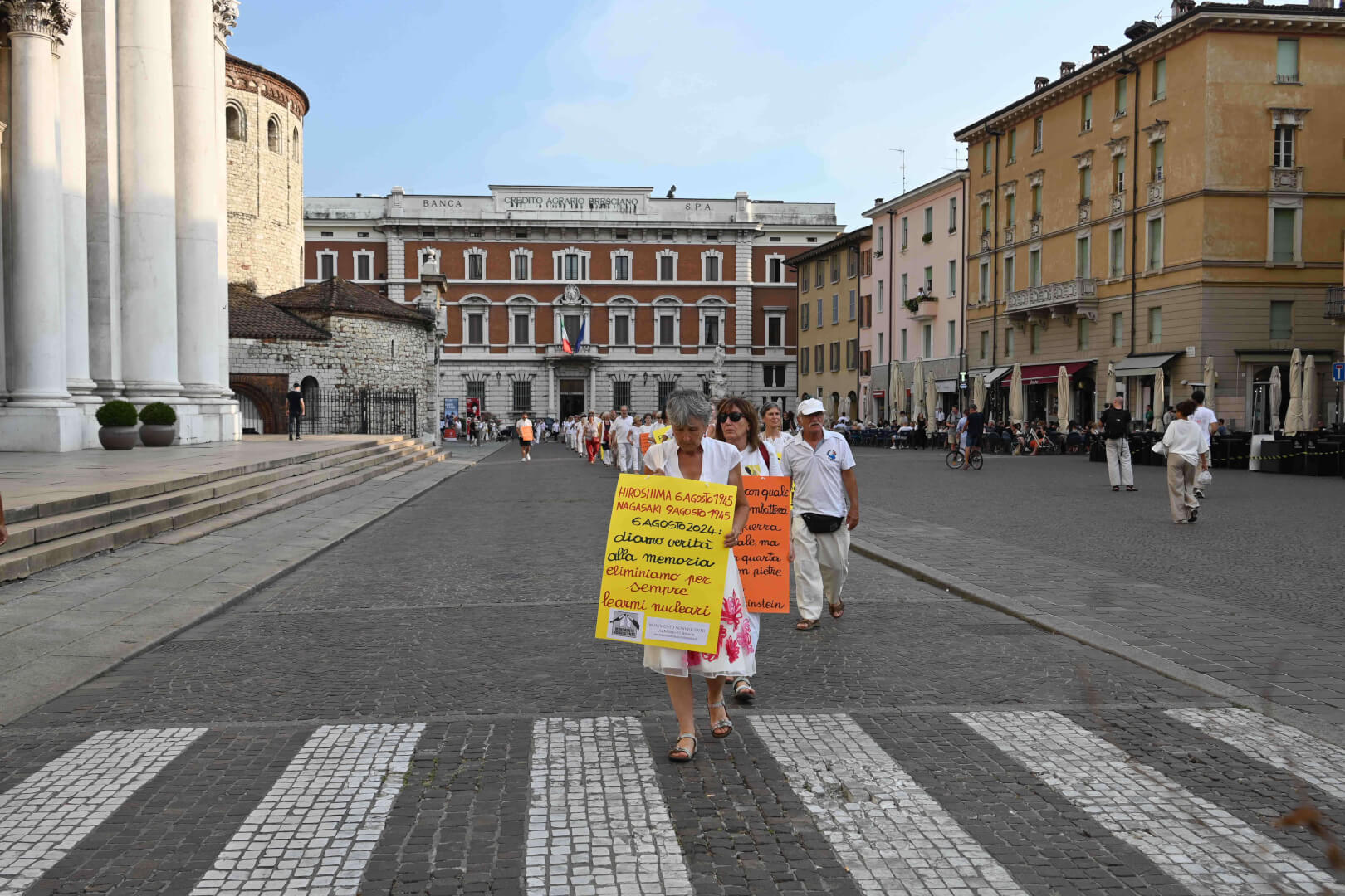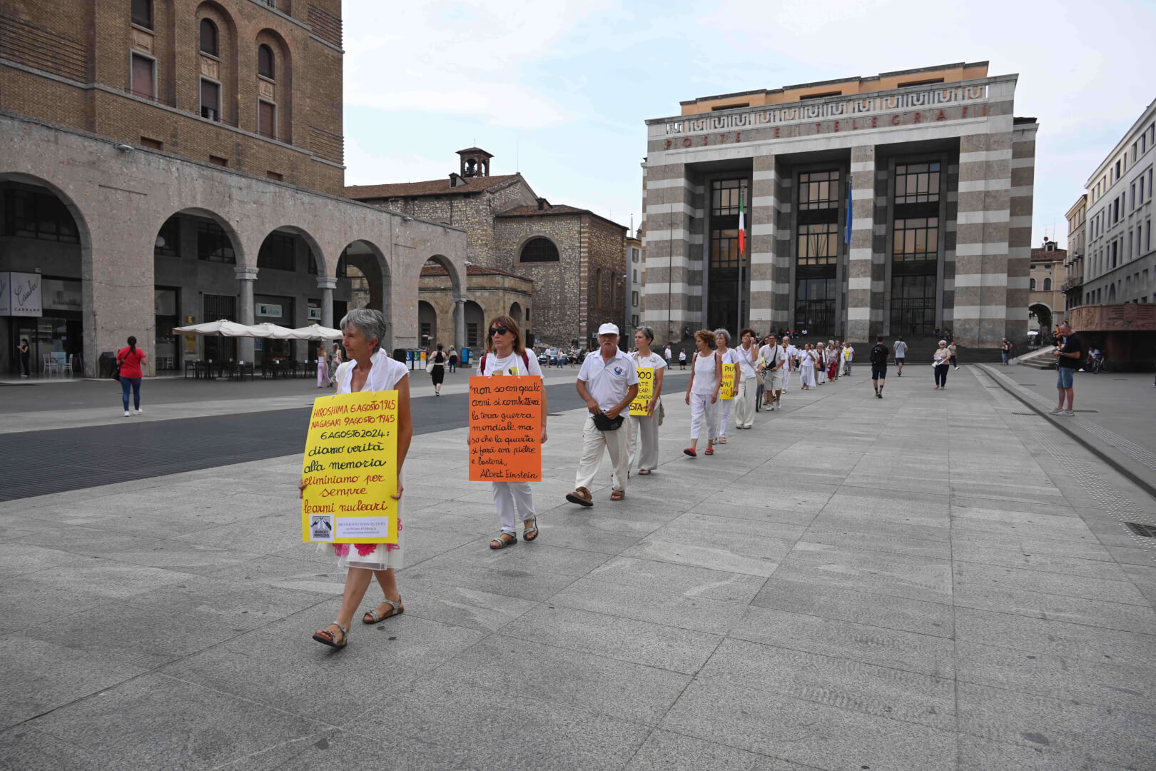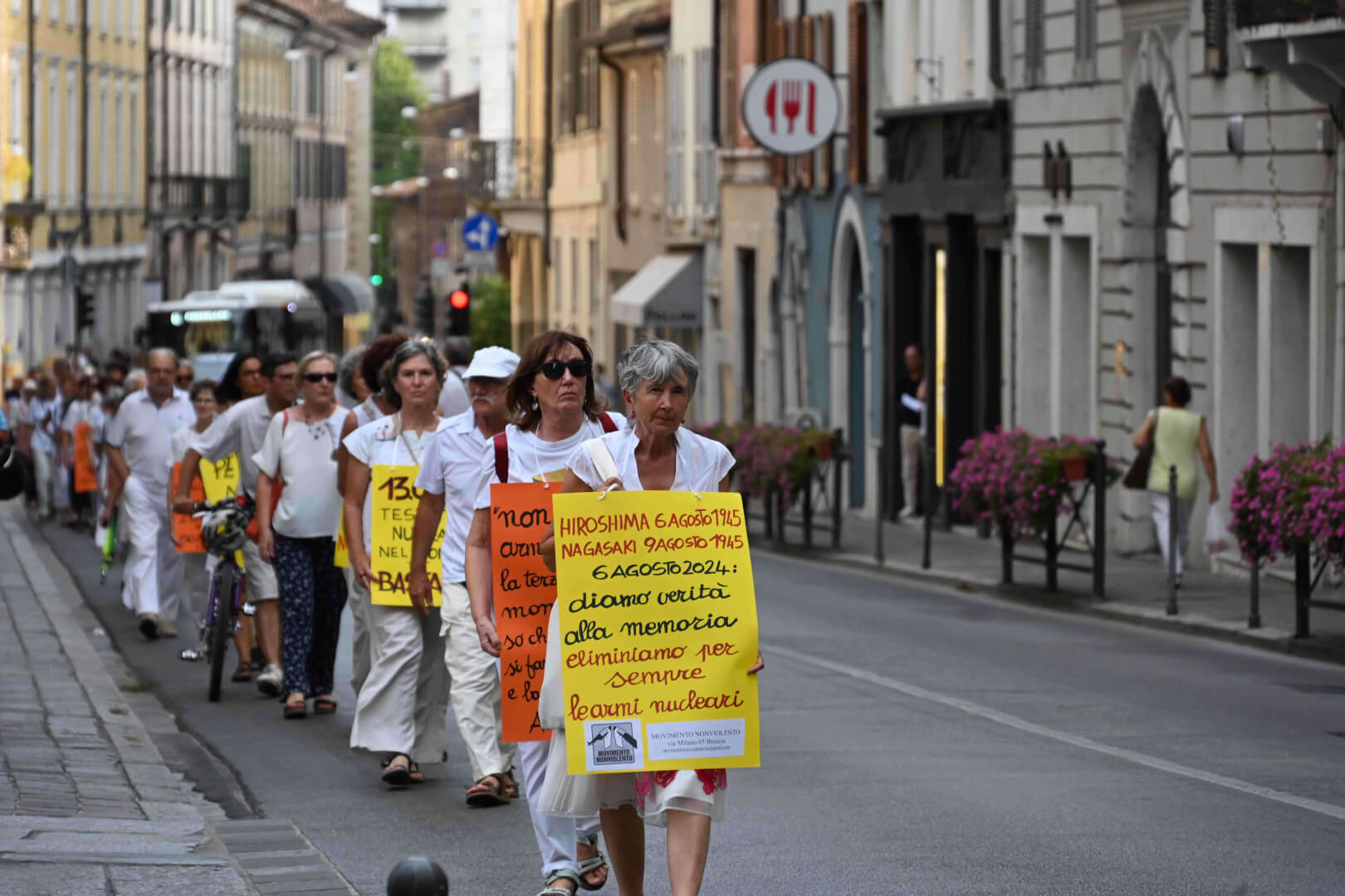 Martedì 6 agosto un corteo silenzioso in fila indiana ha attraversato il centro storico di Brescia per non dimenticare Hiroshima, per dire basta alla strategia della deterrenza nucleare e per chiedere al Parlamento italiano la ratifica del trattato Onu per la messa al bando delle armi nucleari