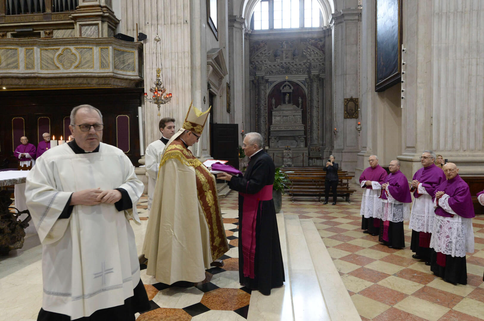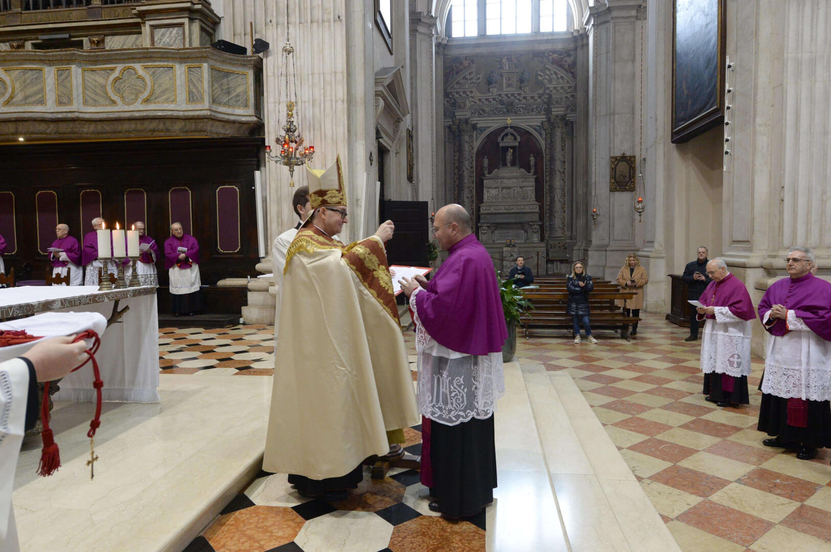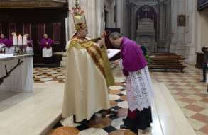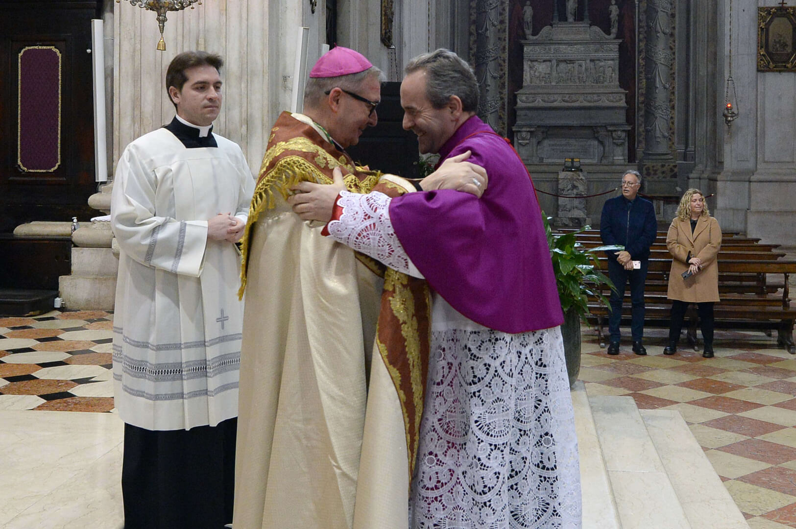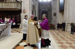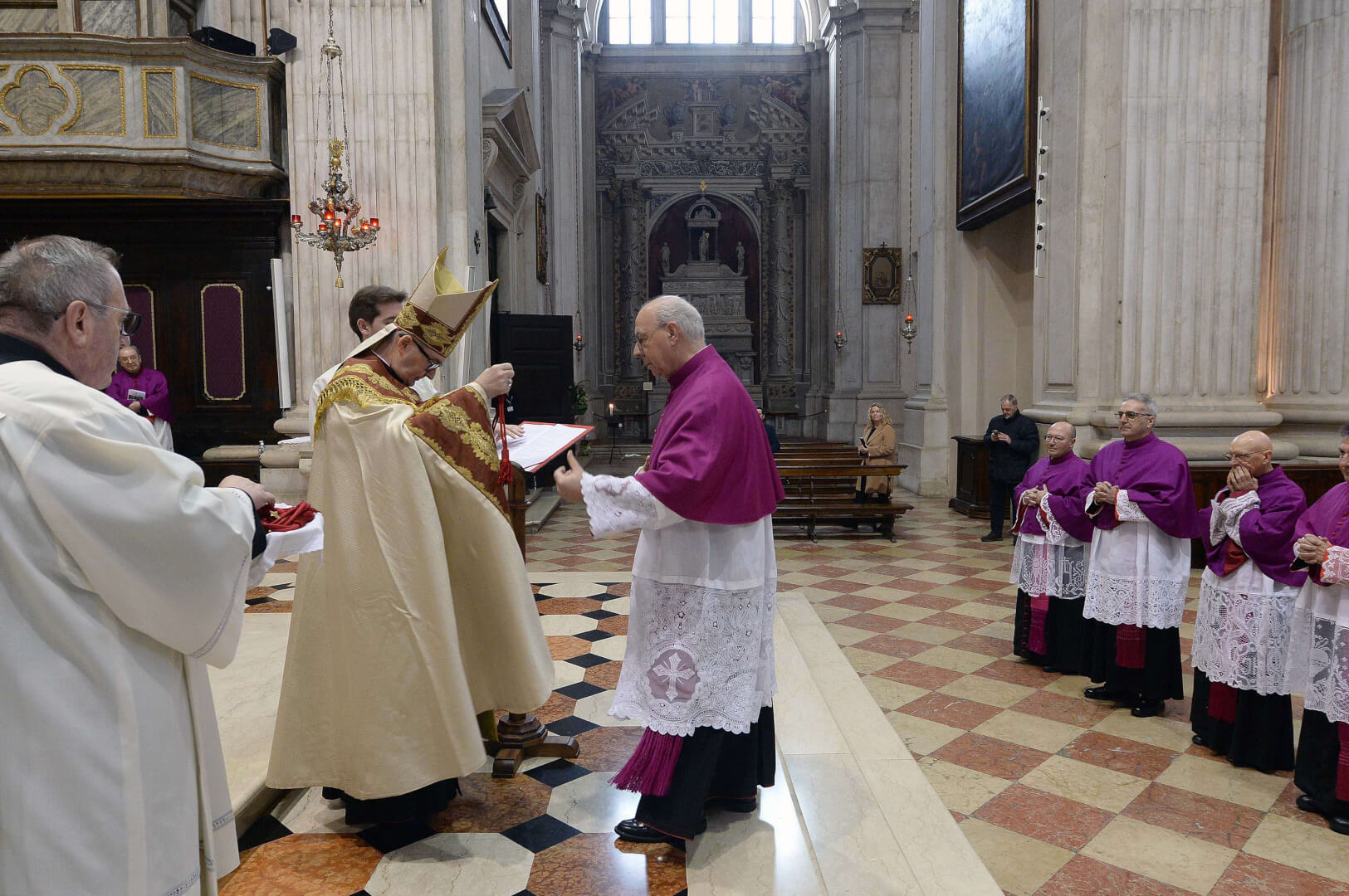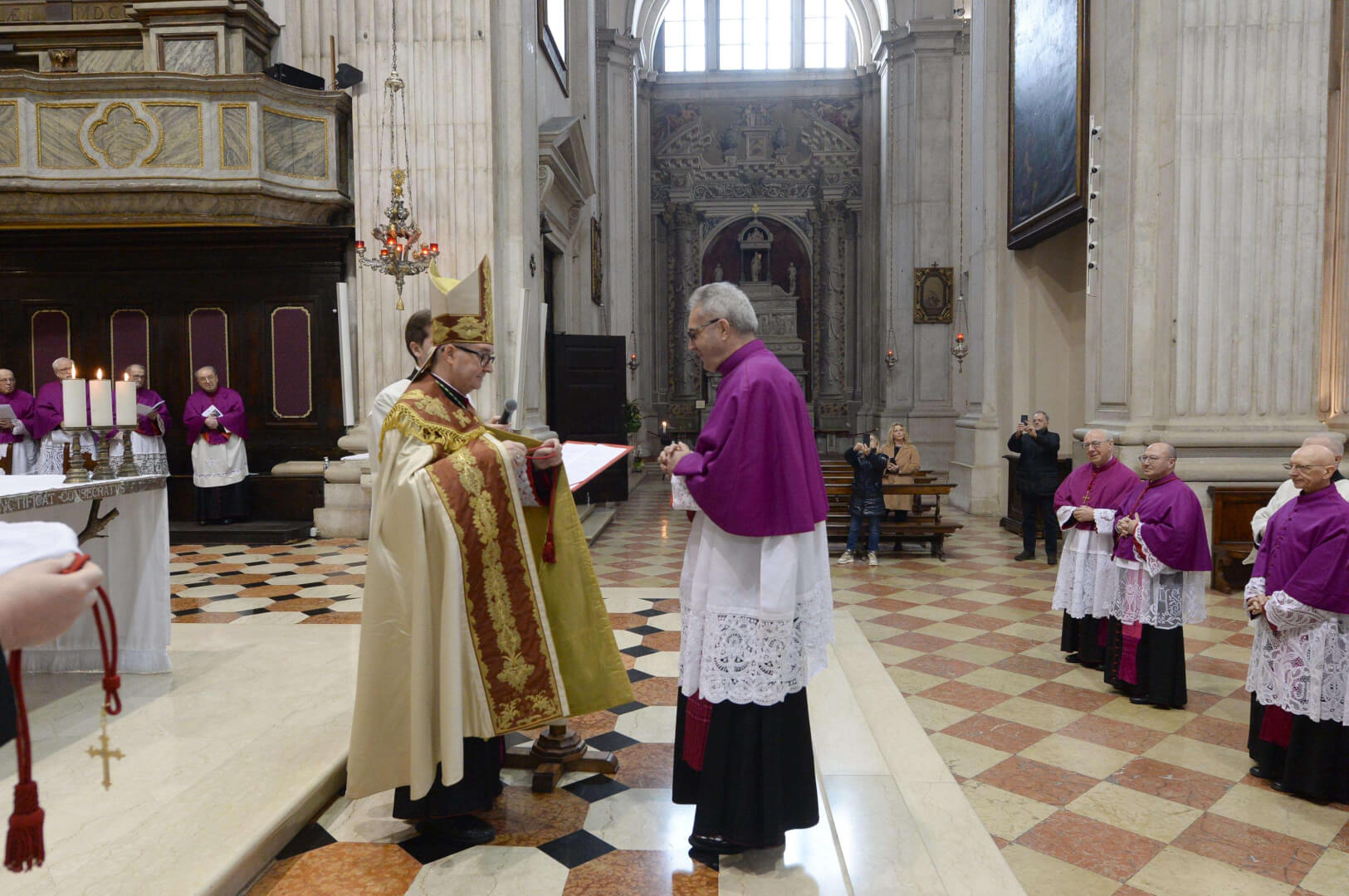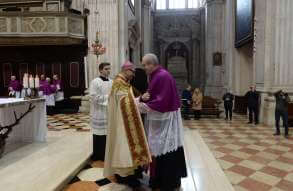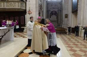 Il vicario generale, mons. Gaetano Fontana, e i Vicari Episcopali sono stati inseriti tra i Canonici Onorari della Cattedrale durante una celebrazione presieduta, nella mattinata del 19 marzo, dal Vescovo. "Non si tratta - aveva sottolineato mons. Tremolada in una lettera a gennaio - di un premio e neppure di una onorificenza. Mi preme che risulti più visibile a tutta la Chiesa diocesana il loro legame con il Vescovo, particolarmente nell’amministrazione del Sacramento della Cresima e in occasione di eventi ufficiali significativi"