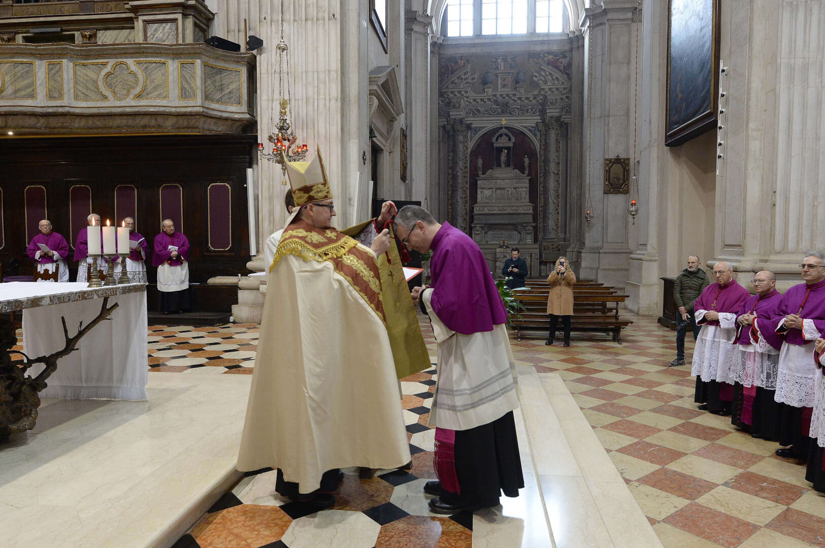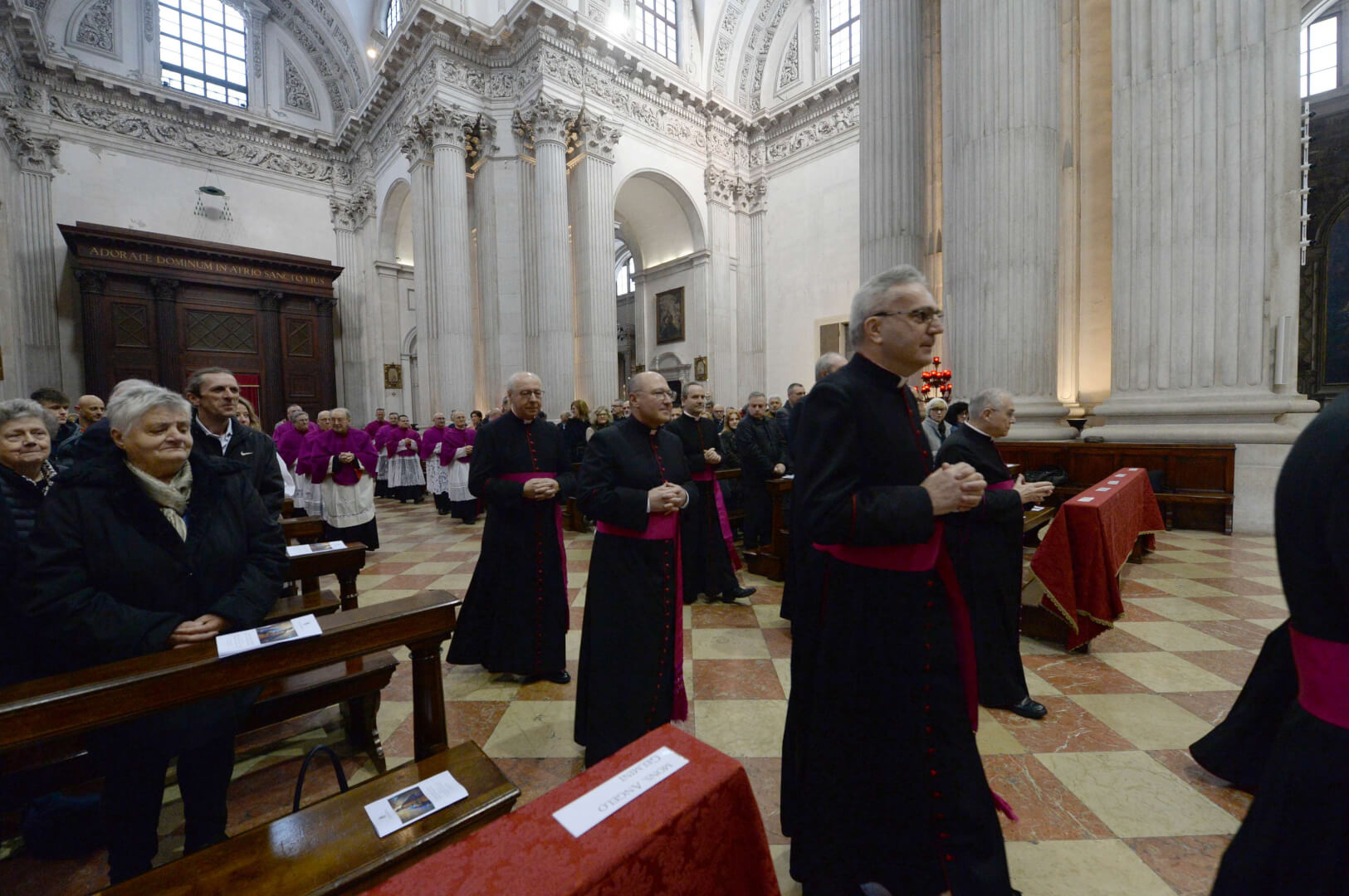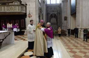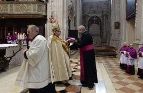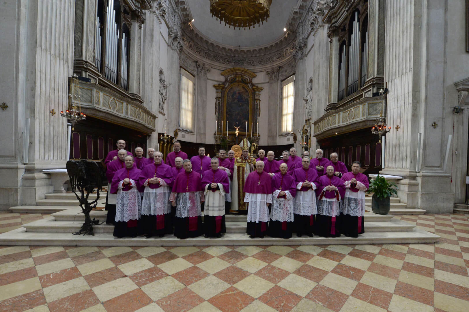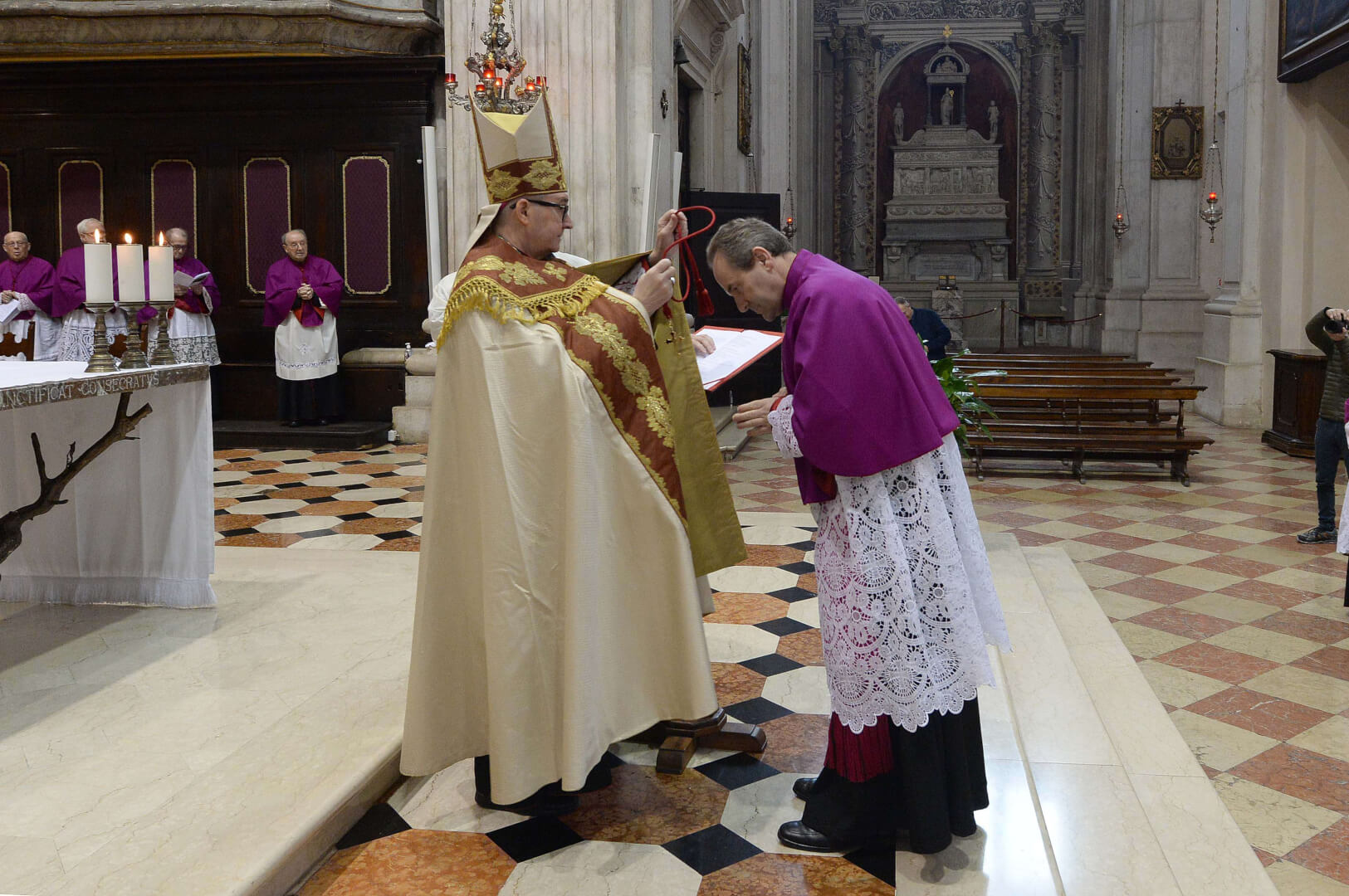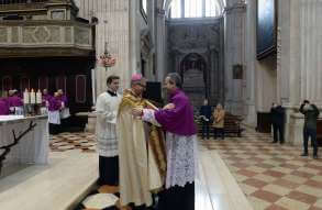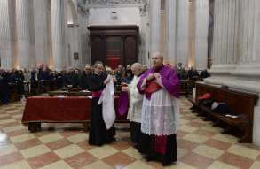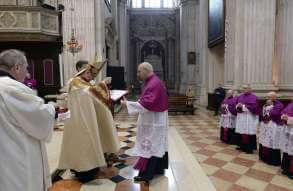 Il vicario generale, mons. Gaetano Fontana, e i Vicari Episcopali sono stati inseriti tra i Canonici Onorari della Cattedrale durante una celebrazione presieduta, nella mattinata del 19 marzo, dal Vescovo. "Non si tratta - aveva sottolineato mons. Tremolada in una lettera a gennaio - di un premio e neppure di una onorificenza. Mi preme che risulti più visibile a tutta la Chiesa diocesana il loro legame con il Vescovo, particolarmente nell’amministrazione del Sacramento della Cresima e in occasione di eventi ufficiali significativi"