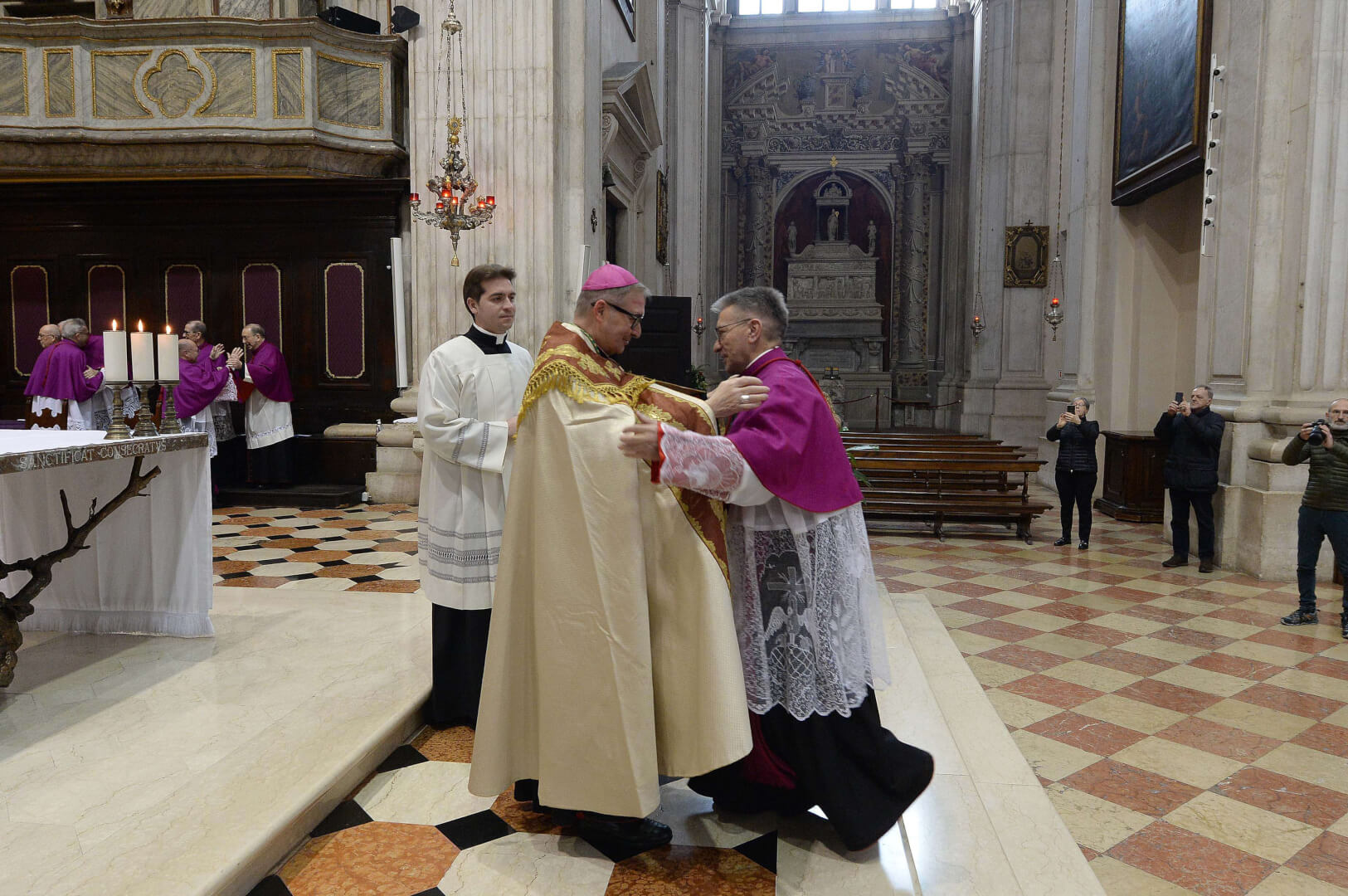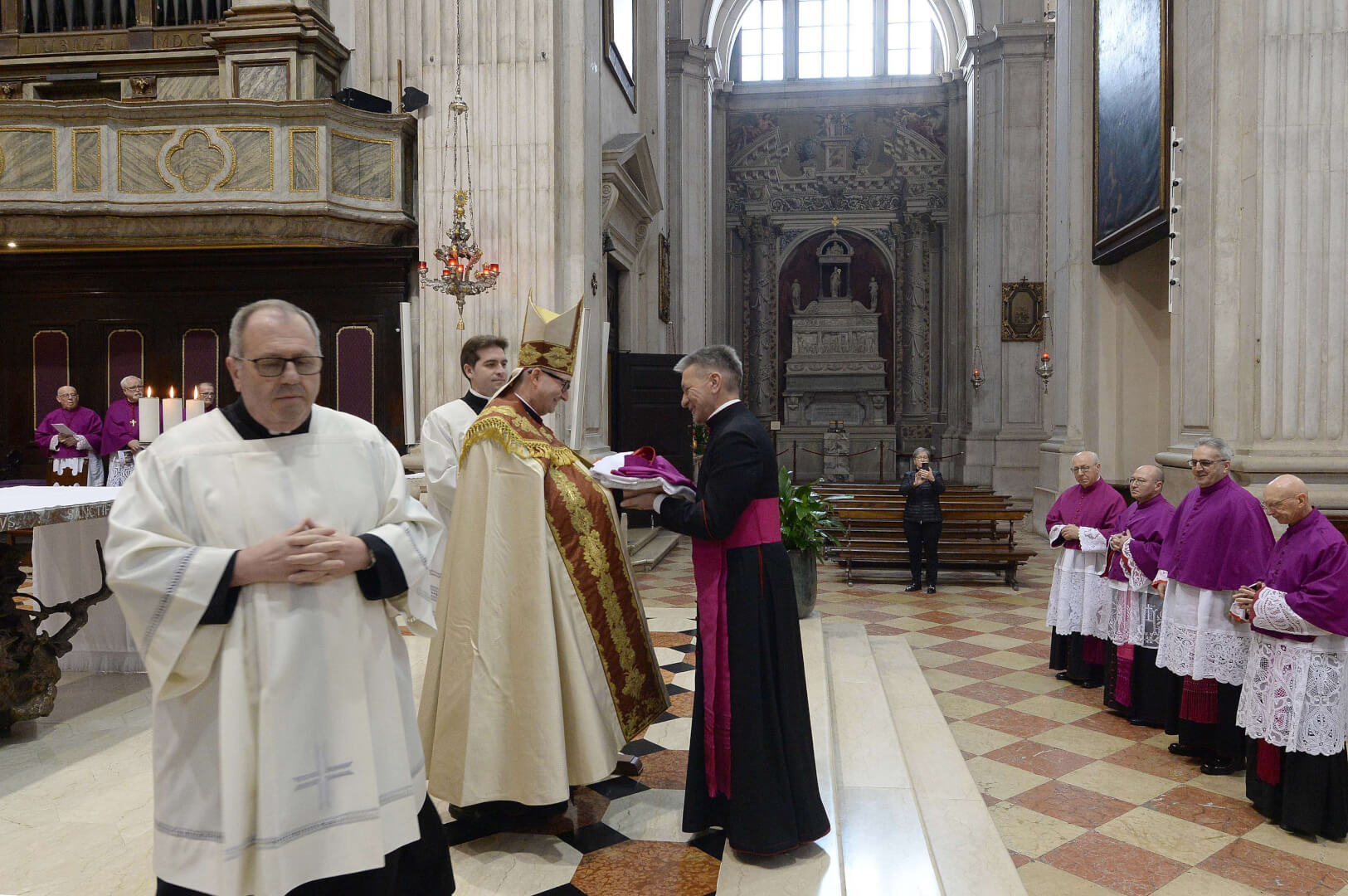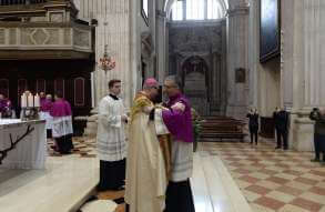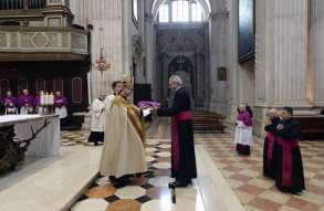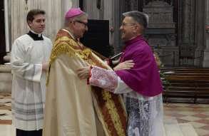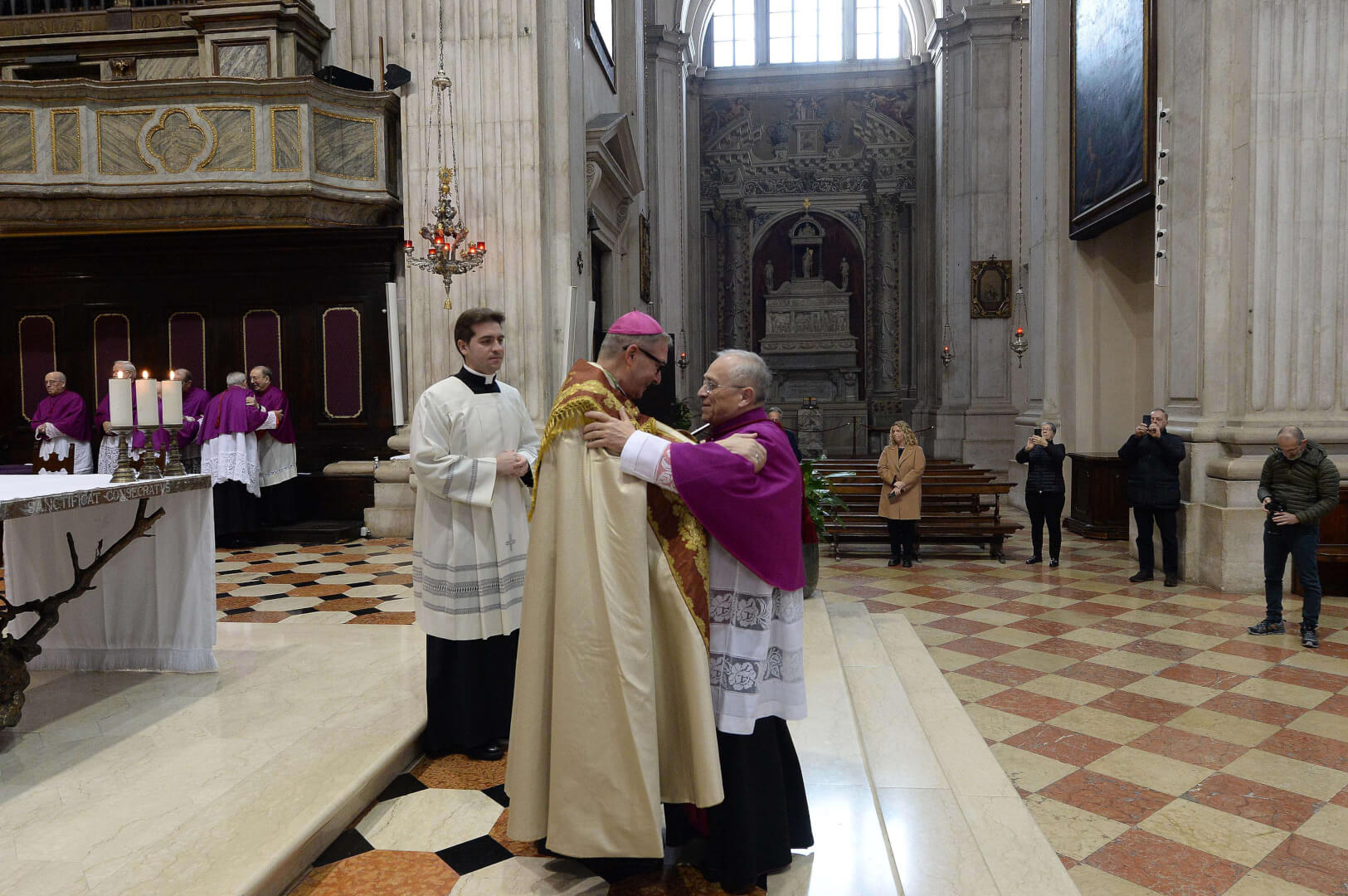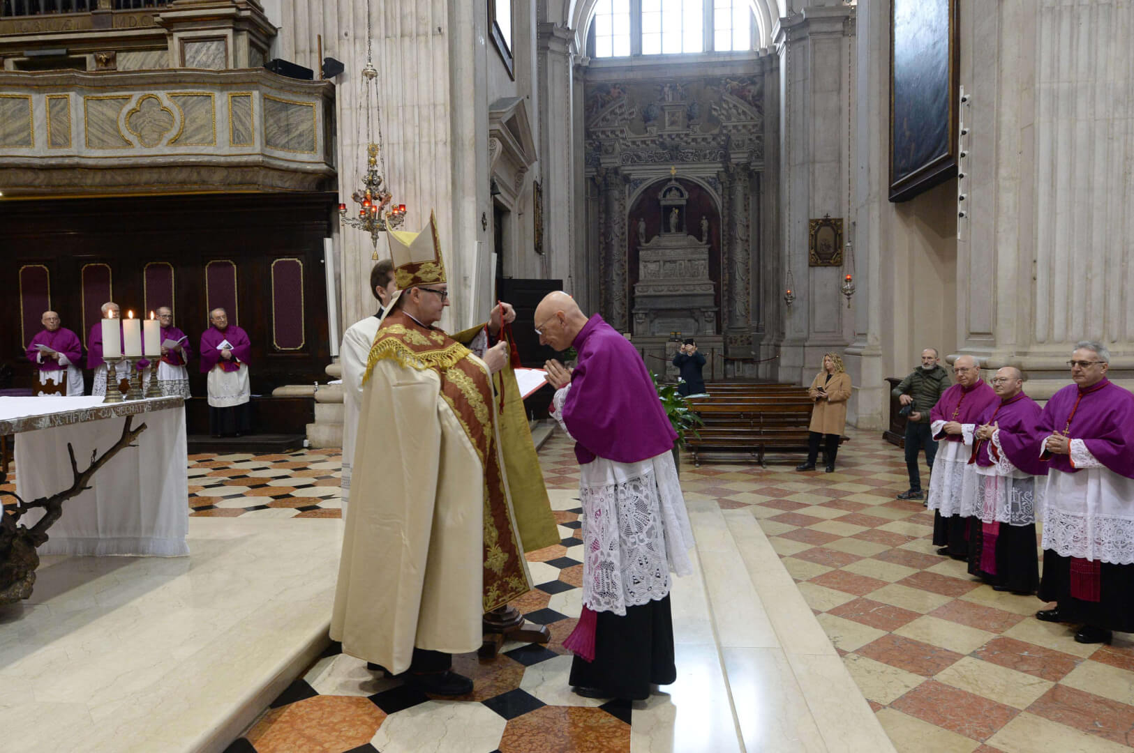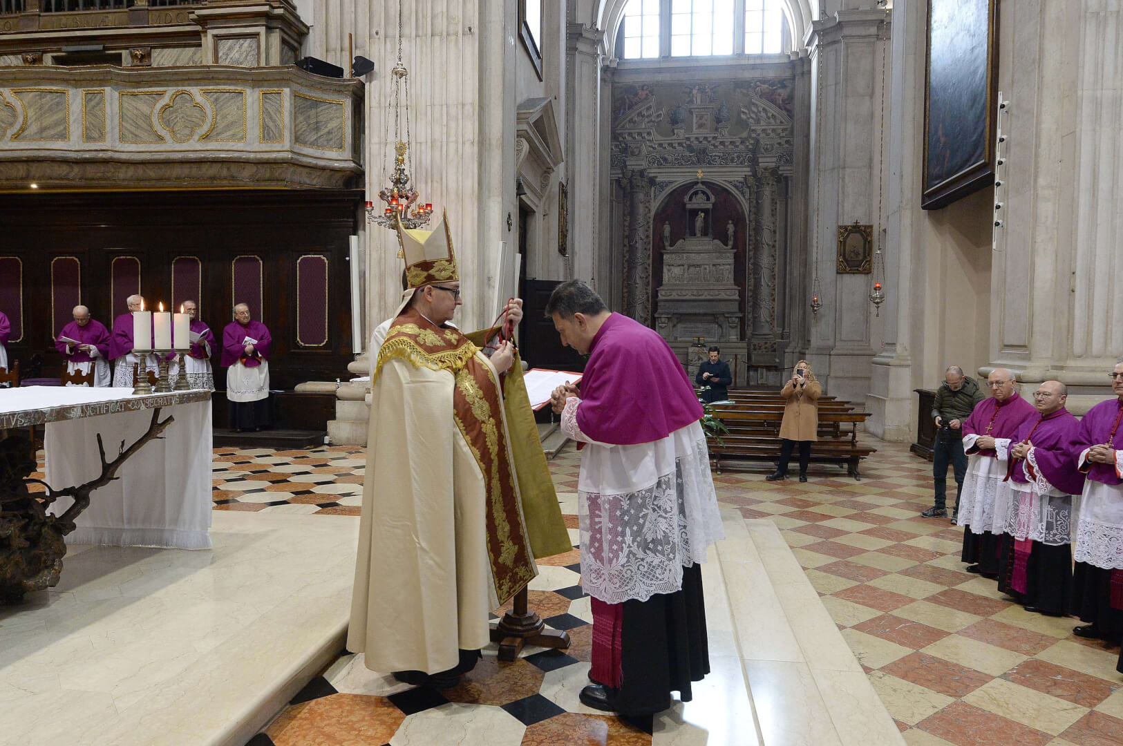 Il vicario generale, mons. Gaetano Fontana, e i Vicari Episcopali sono stati inseriti tra i Canonici Onorari della Cattedrale durante una celebrazione presieduta, nella mattinata del 19 marzo, dal Vescovo. "Non si tratta - aveva sottolineato mons. Tremolada in una lettera a gennaio - di un premio e neppure di una onorificenza. Mi preme che risulti più visibile a tutta la Chiesa diocesana il loro legame con il Vescovo, particolarmente nell’amministrazione del Sacramento della Cresima e in occasione di eventi ufficiali significativi"
